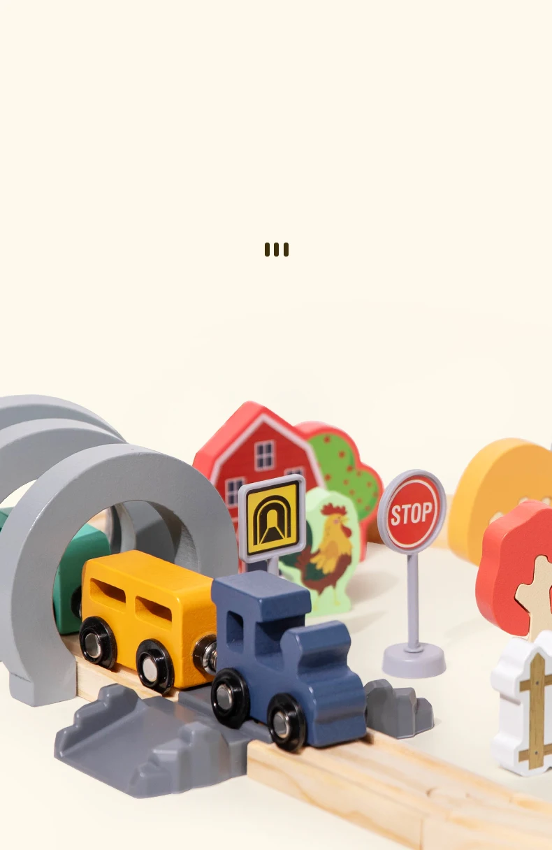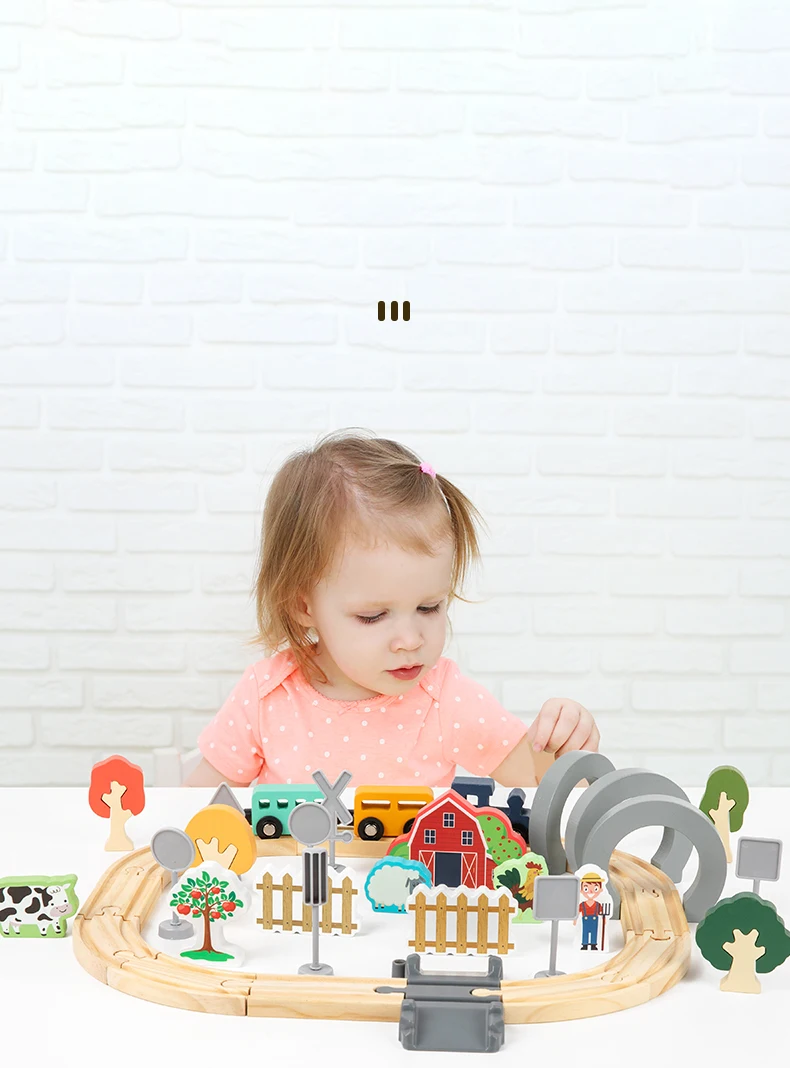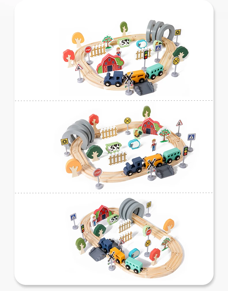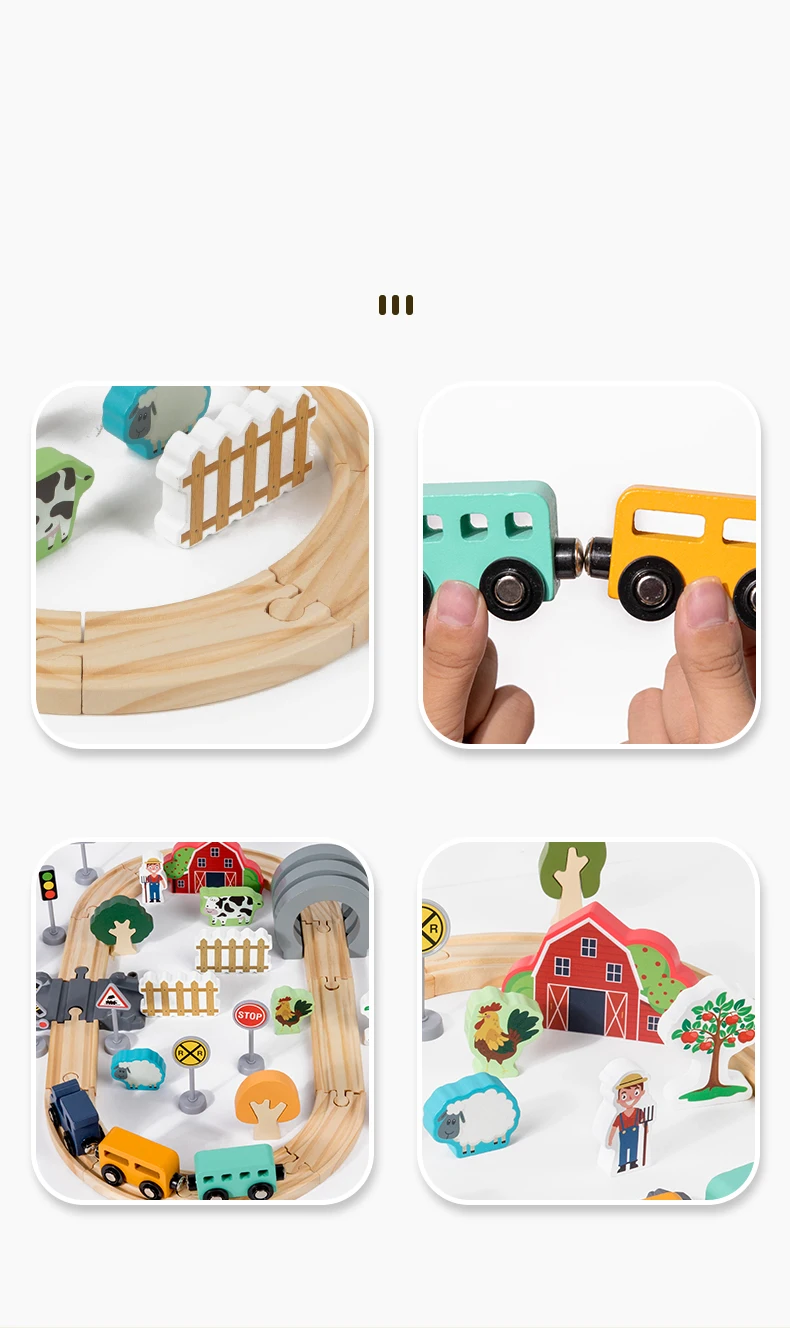Hot Sale Children’s Wooden Track Toy Train for Farm-themed Assembly with Track for Puzzle Building and Traffic Scene Toy