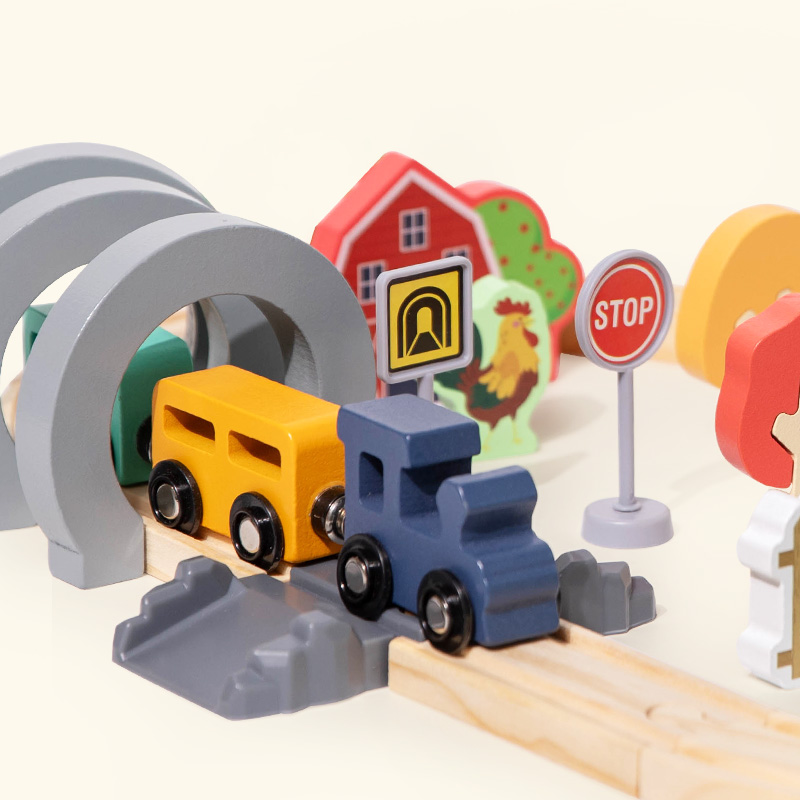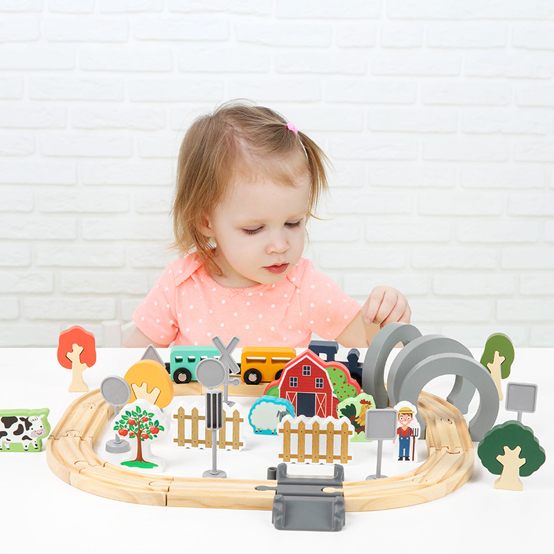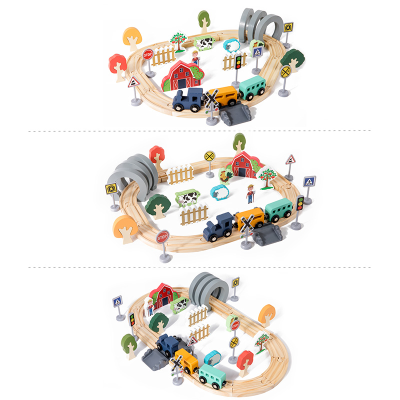 Hot Sale Children’s Wooden Track Toy Train for Farm-themed Assembly with Track for Puzzle Building and Traffic Scene Toy