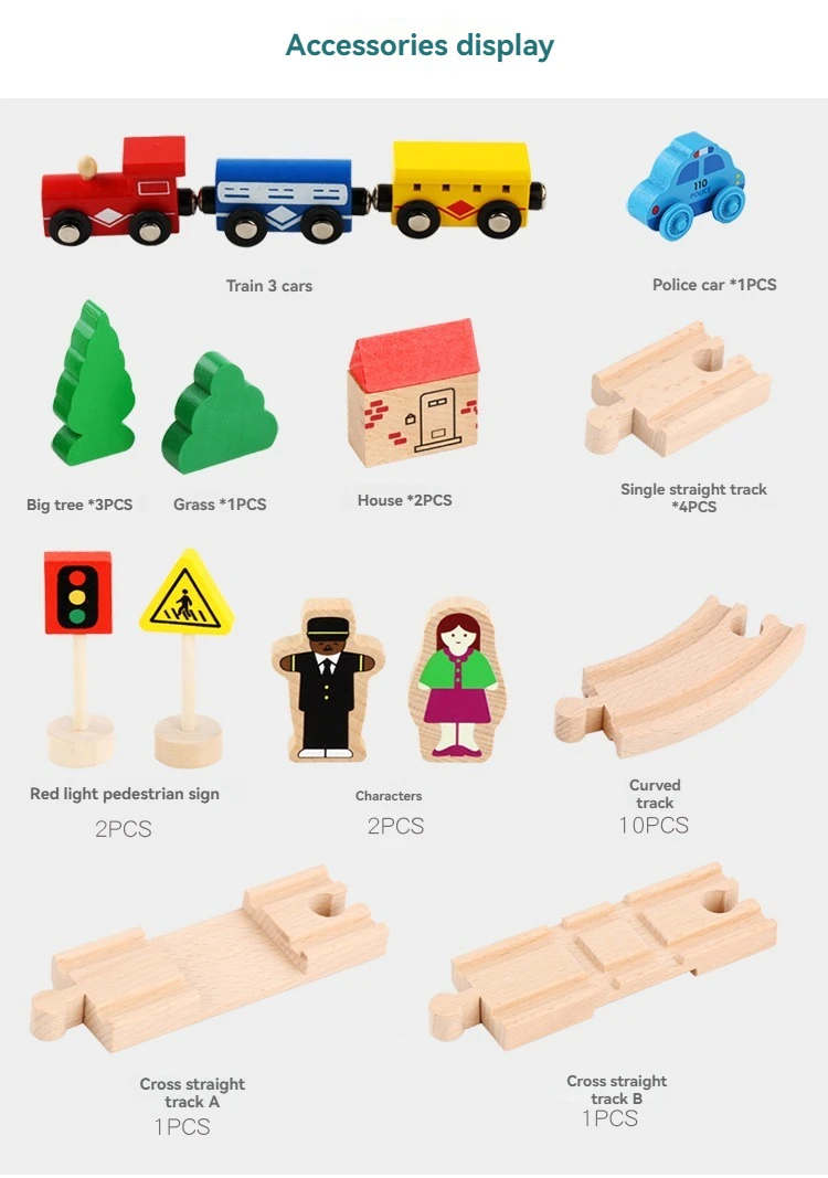 Hot Selling 32PCS Beech Wooden Montessori Educational Toys Building Block Sets Creative Track Train for 2-4 & 5-7 Years