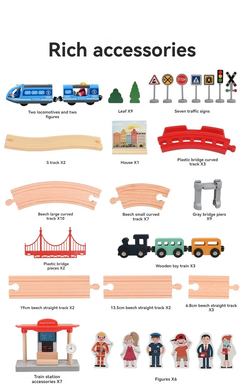 Hot Selling Unisex Beech Wooden Bridge Track Ring Game Set Montessori Educational Electric Tracks for Kids