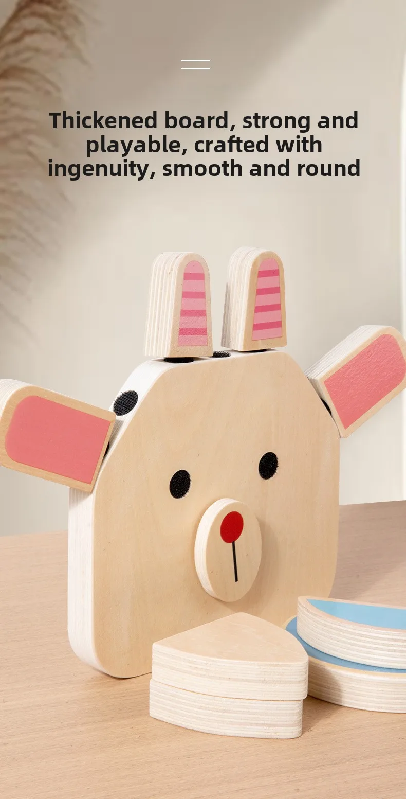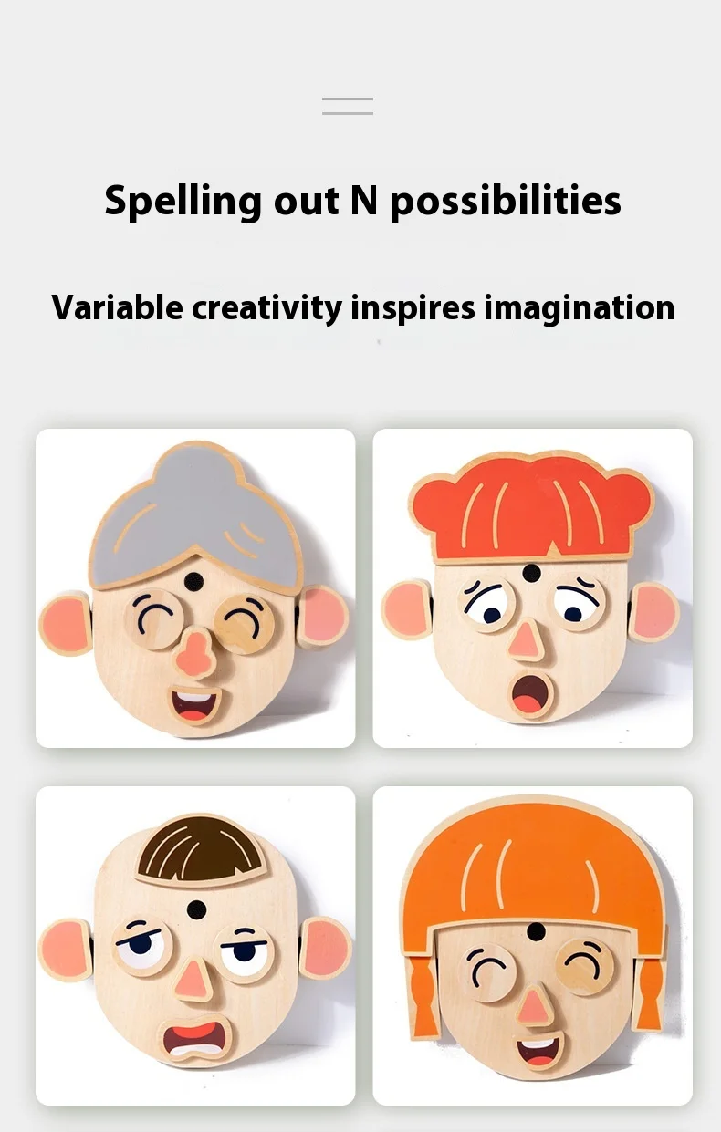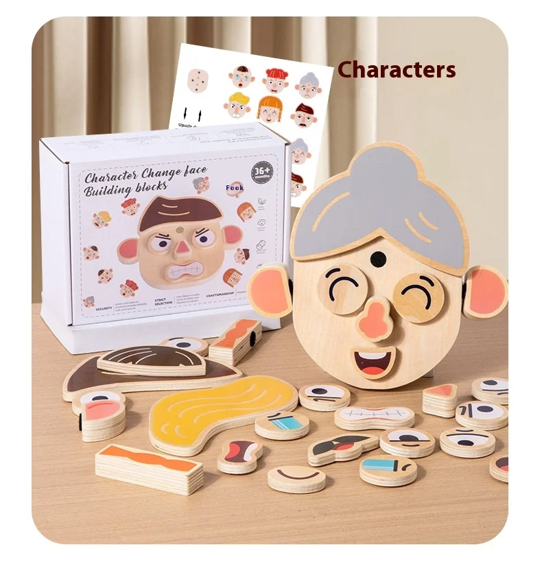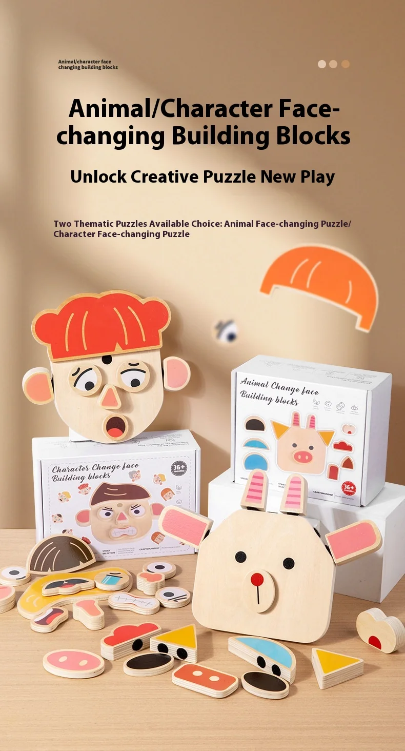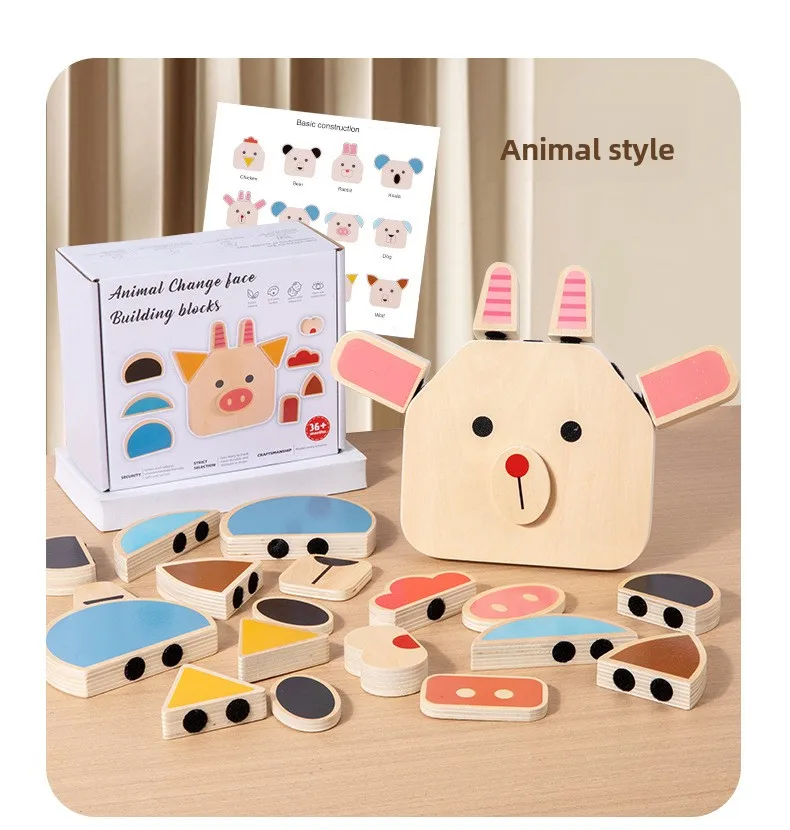 Interactive DIY Wooden Toys for Kids Early Educational Character and Animal Face Changing Building Blocks