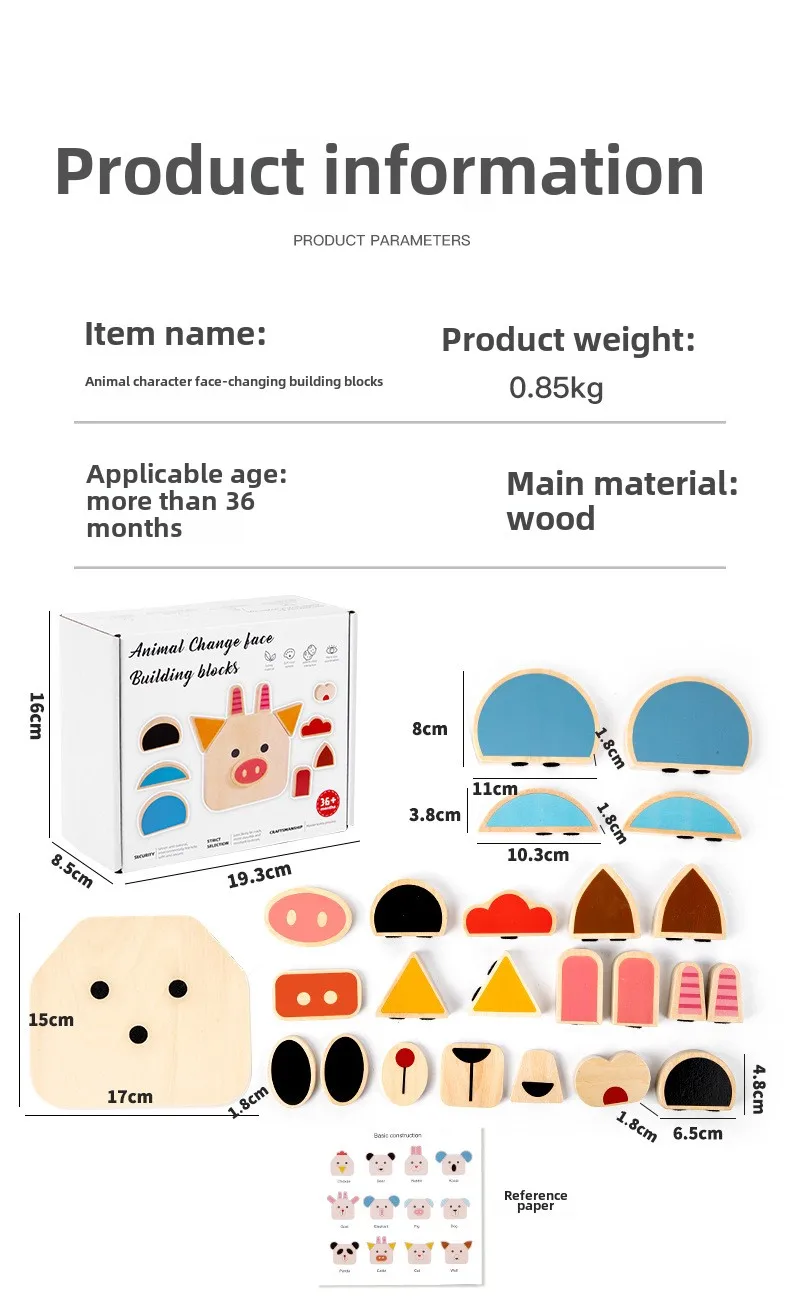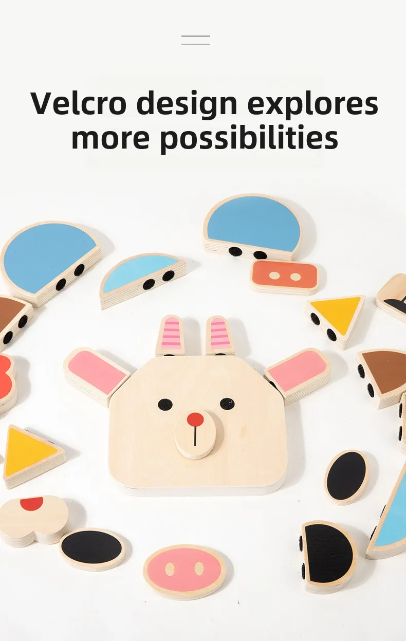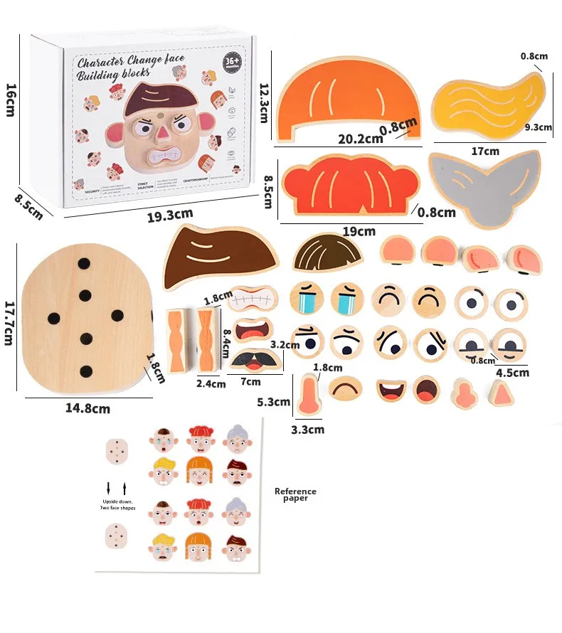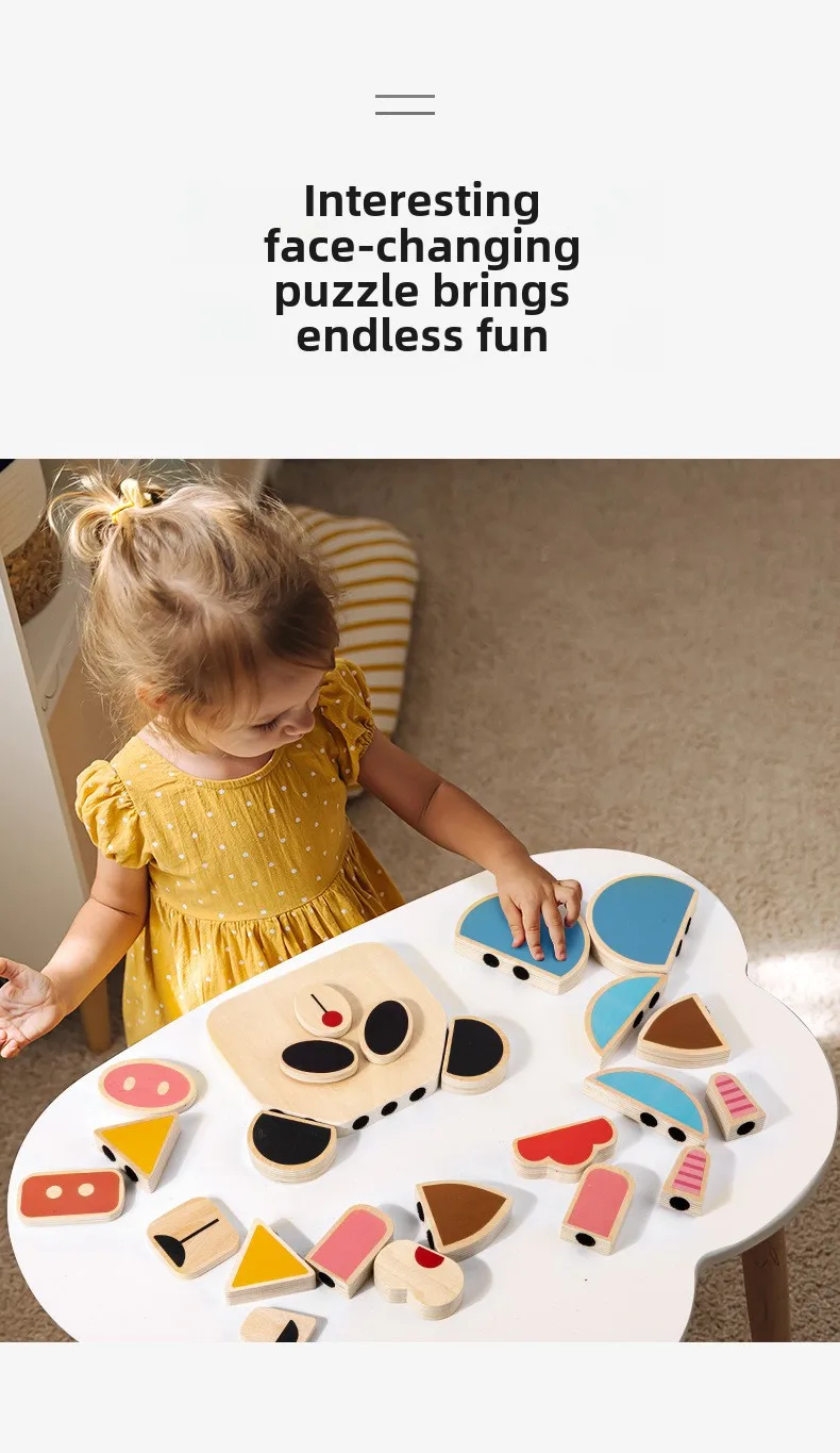 Interactive DIY Wooden Toys for Kids Early Educational Character and Animal Face Changing Building Blocks