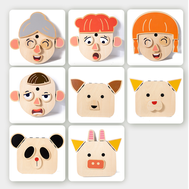 Interactive DIY Wooden Toys for Kids Early Educational Character and Animal Face Changing Building Blocks