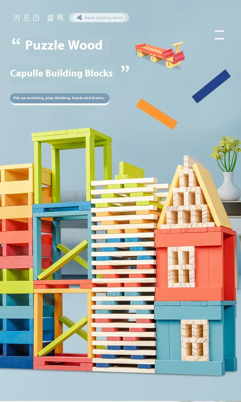 Kaple Kindergarten Children’s Log Construction Bar Building Blocks Colorful Strip Puzzle Stacking Toys Variety Puzzle