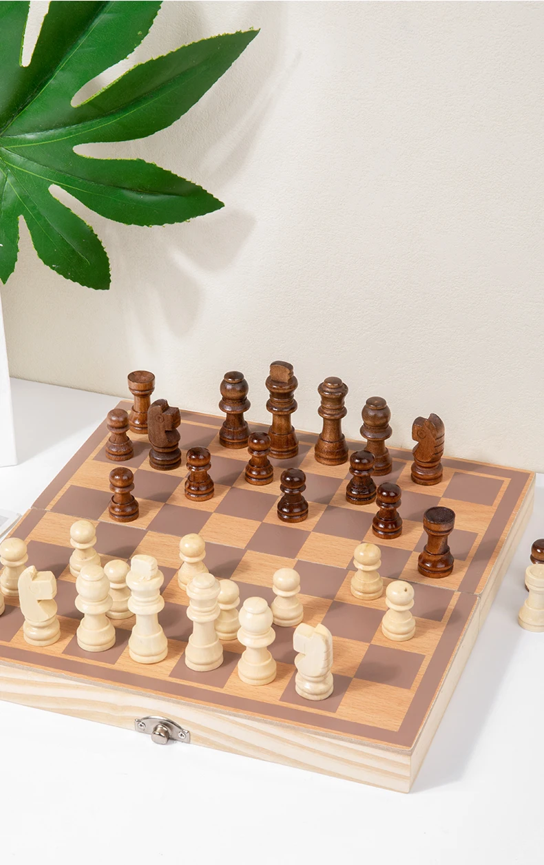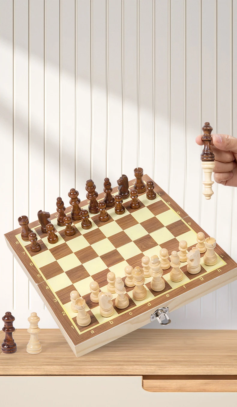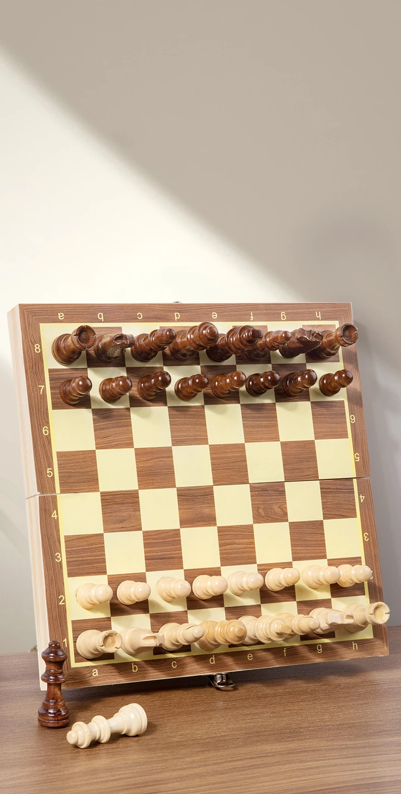 Kids Toys Educational Chess Puzzle Education Foldable Portable Wooden Chess Teaching Board for Competition