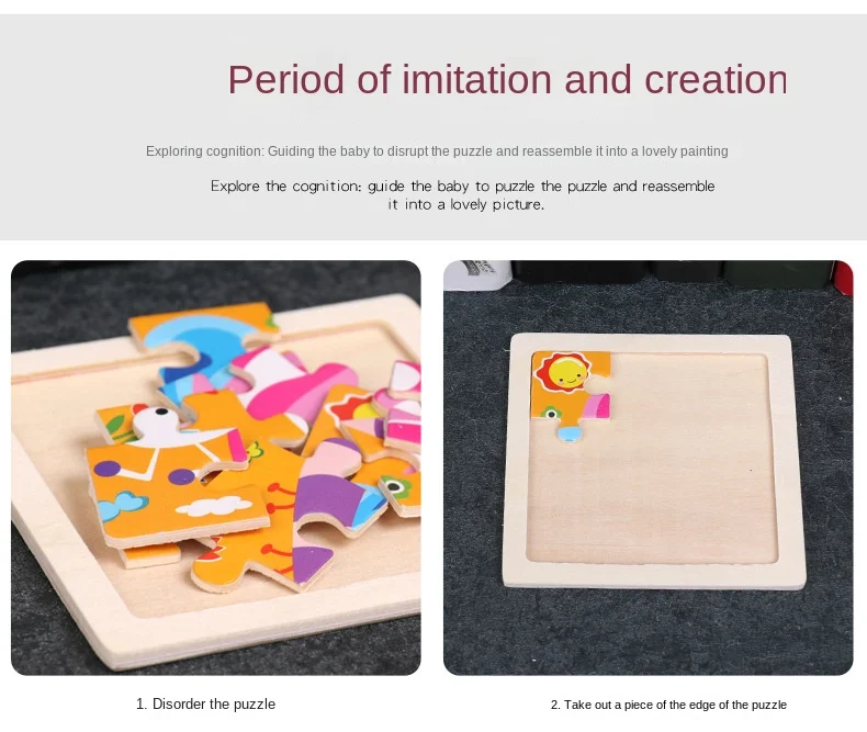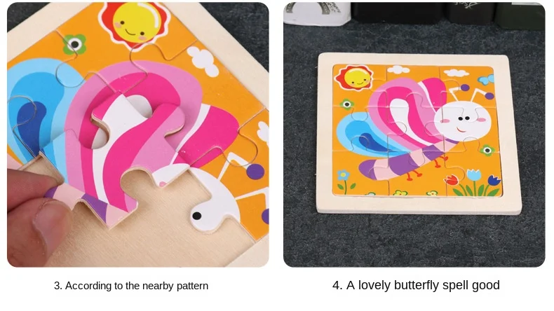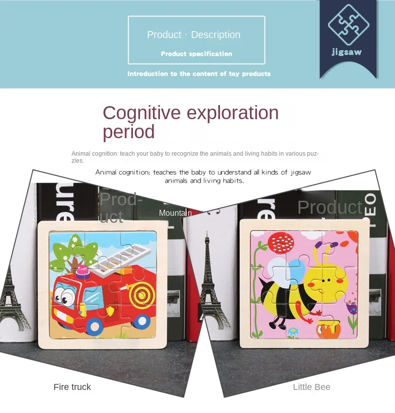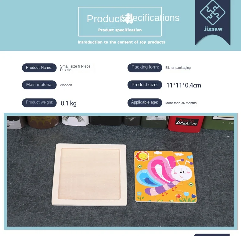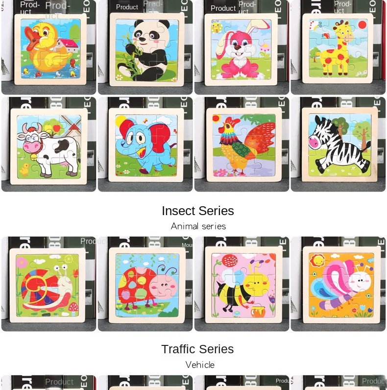Kids Wooden Montessori Mini 9 Pieces Puzzle Cartoon Animal Traffic Tangram Wood Puzzle Toys Educational Jigsaw Toys