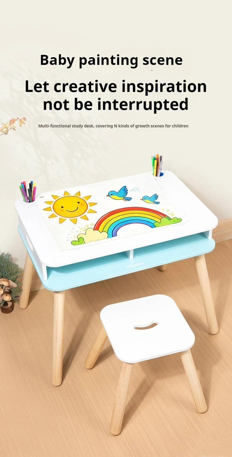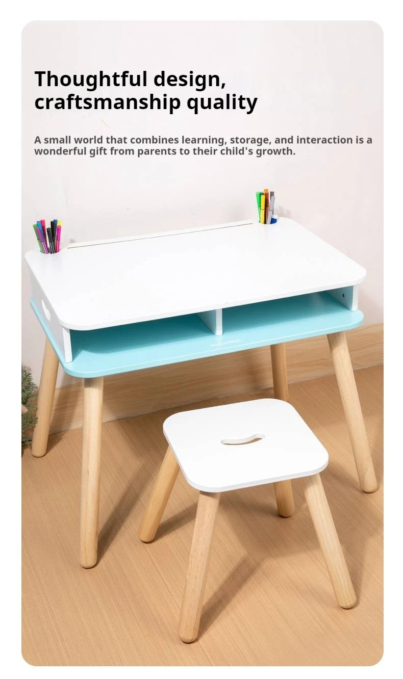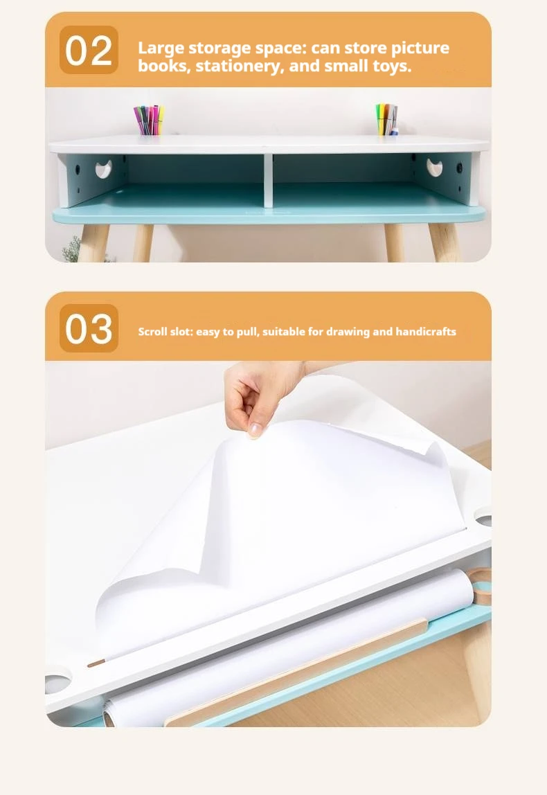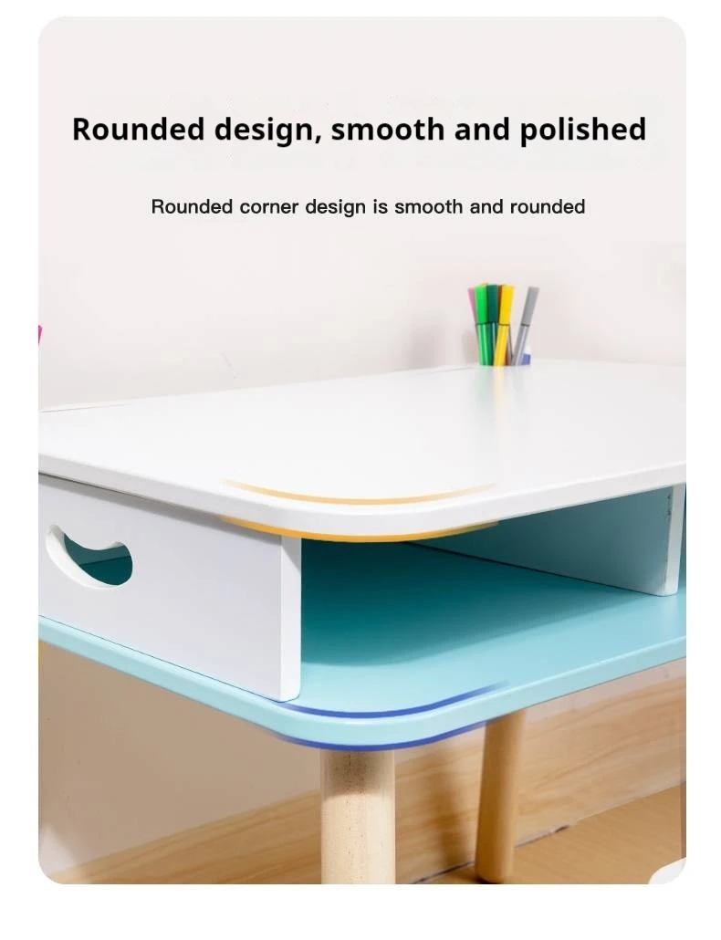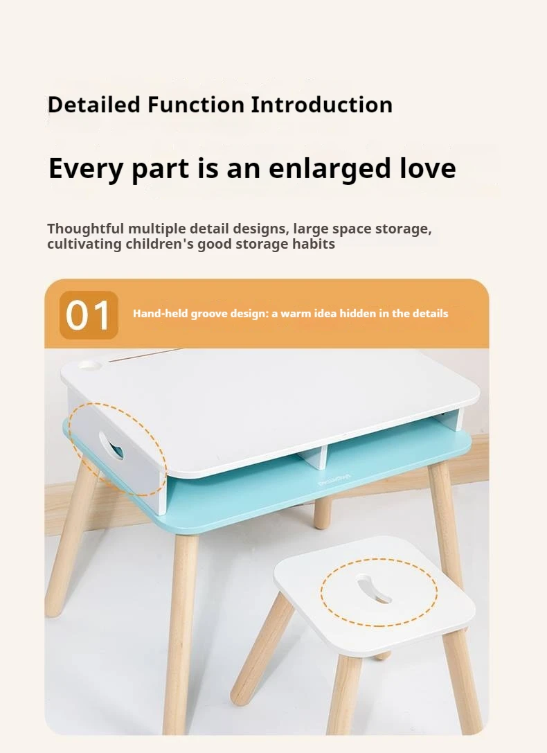 Kids Wooden Play Table Chair Set Double-sided with Storage Safety Is Guaranteed Space Kids Furniture