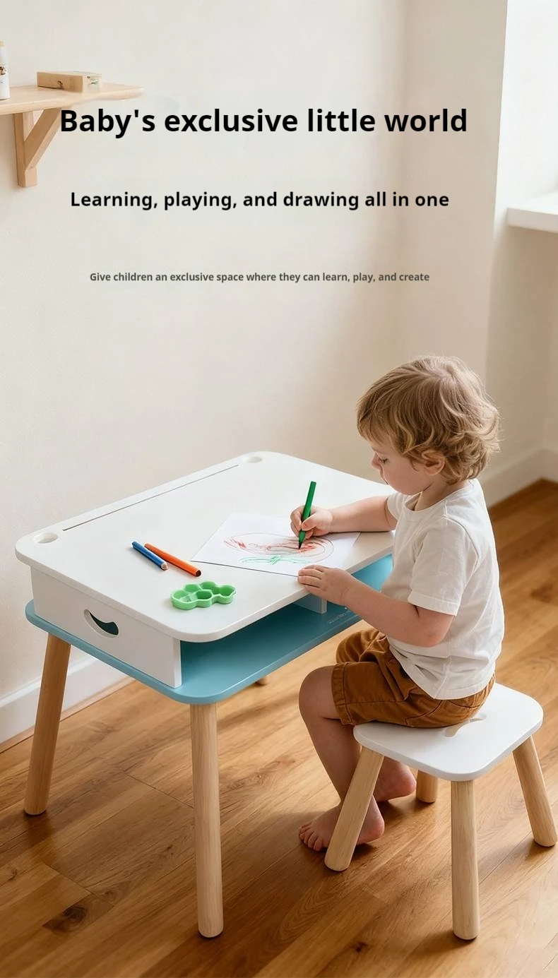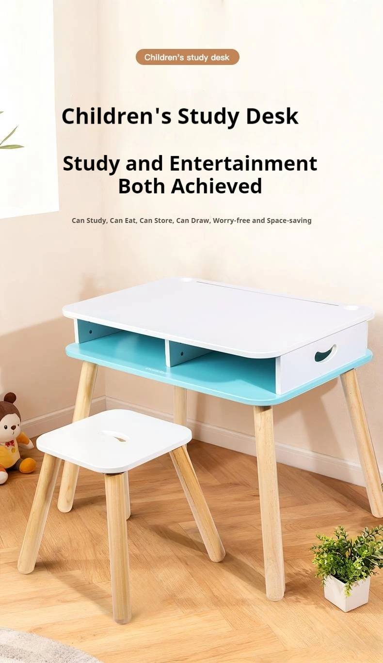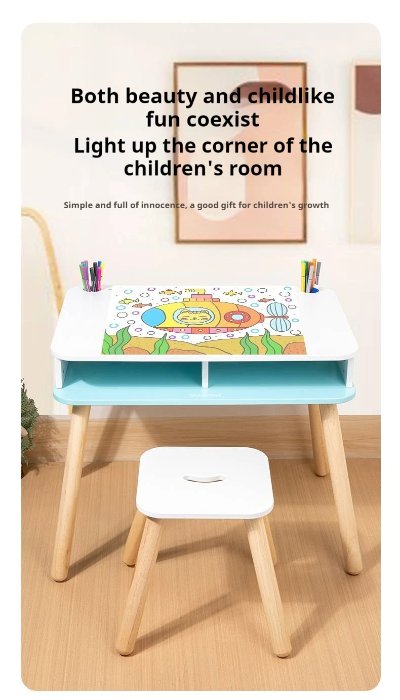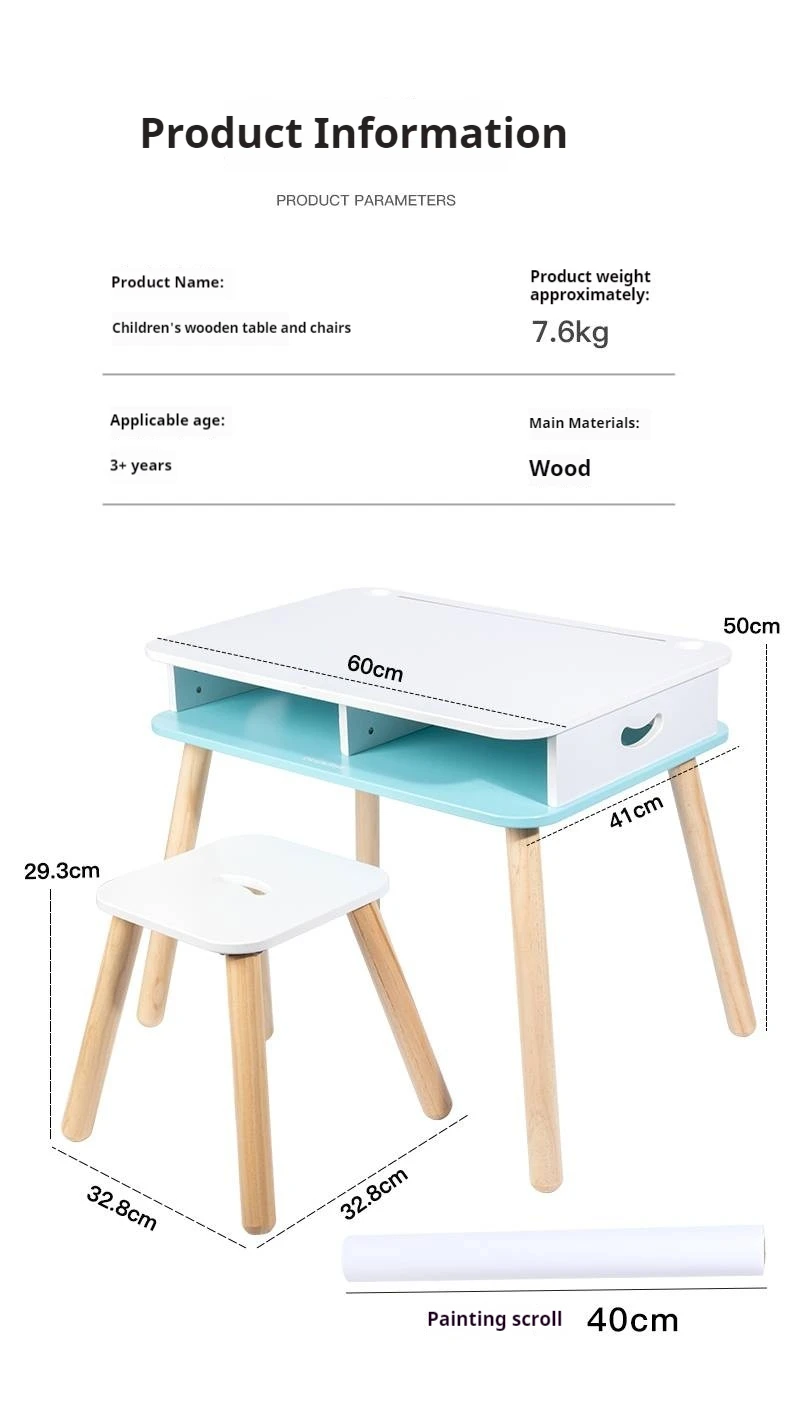 Kids Wooden Play Table Chair Set Double-sided with Storage Safety Is Guaranteed Space Kids Furniture