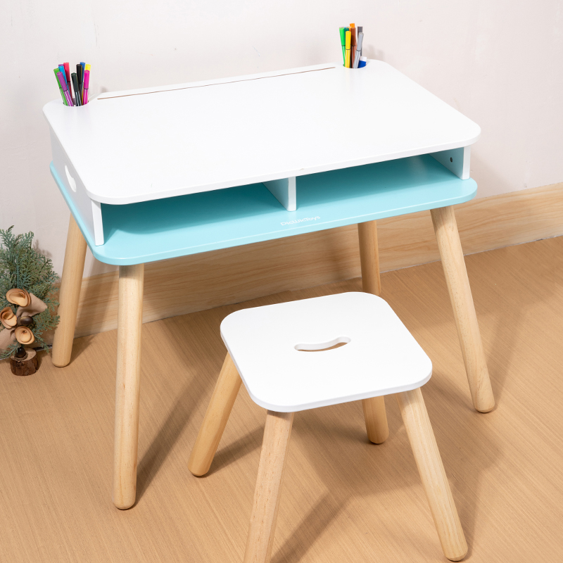 Kids Wooden Play Table Chair Set Double-sided with Storage Safety Is Guaranteed Space Kids Furniture