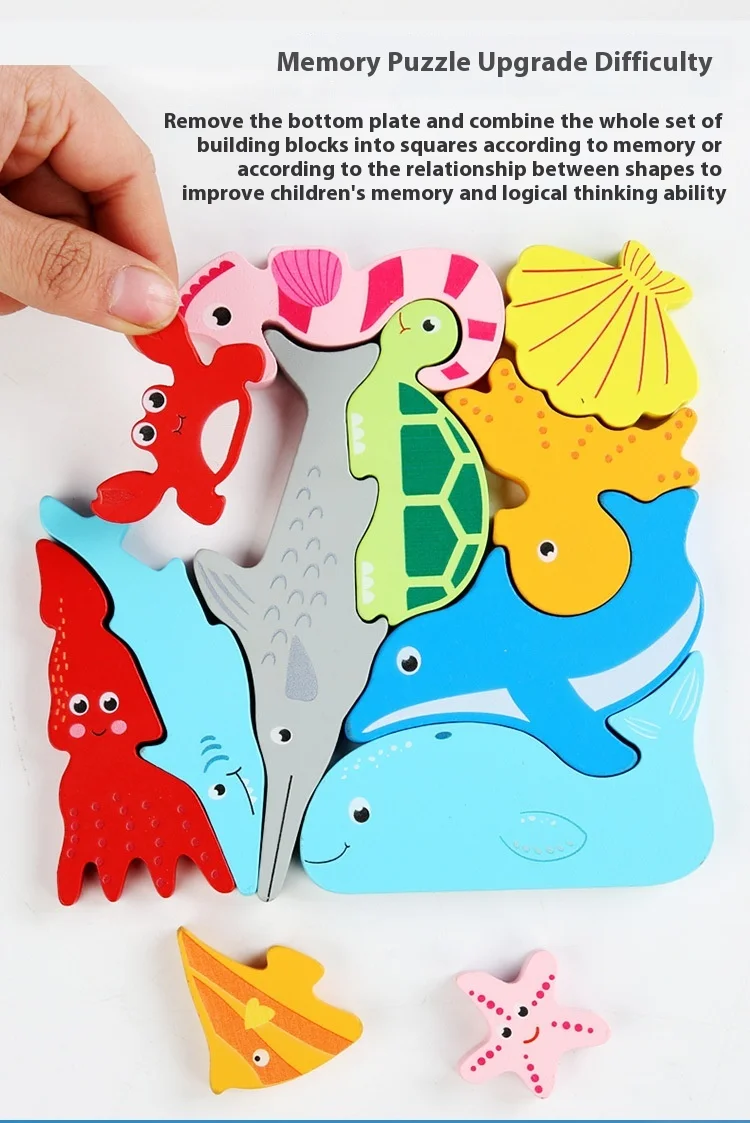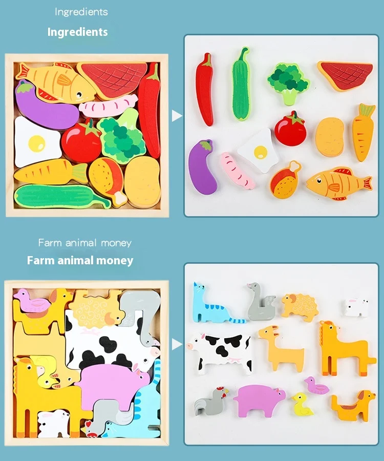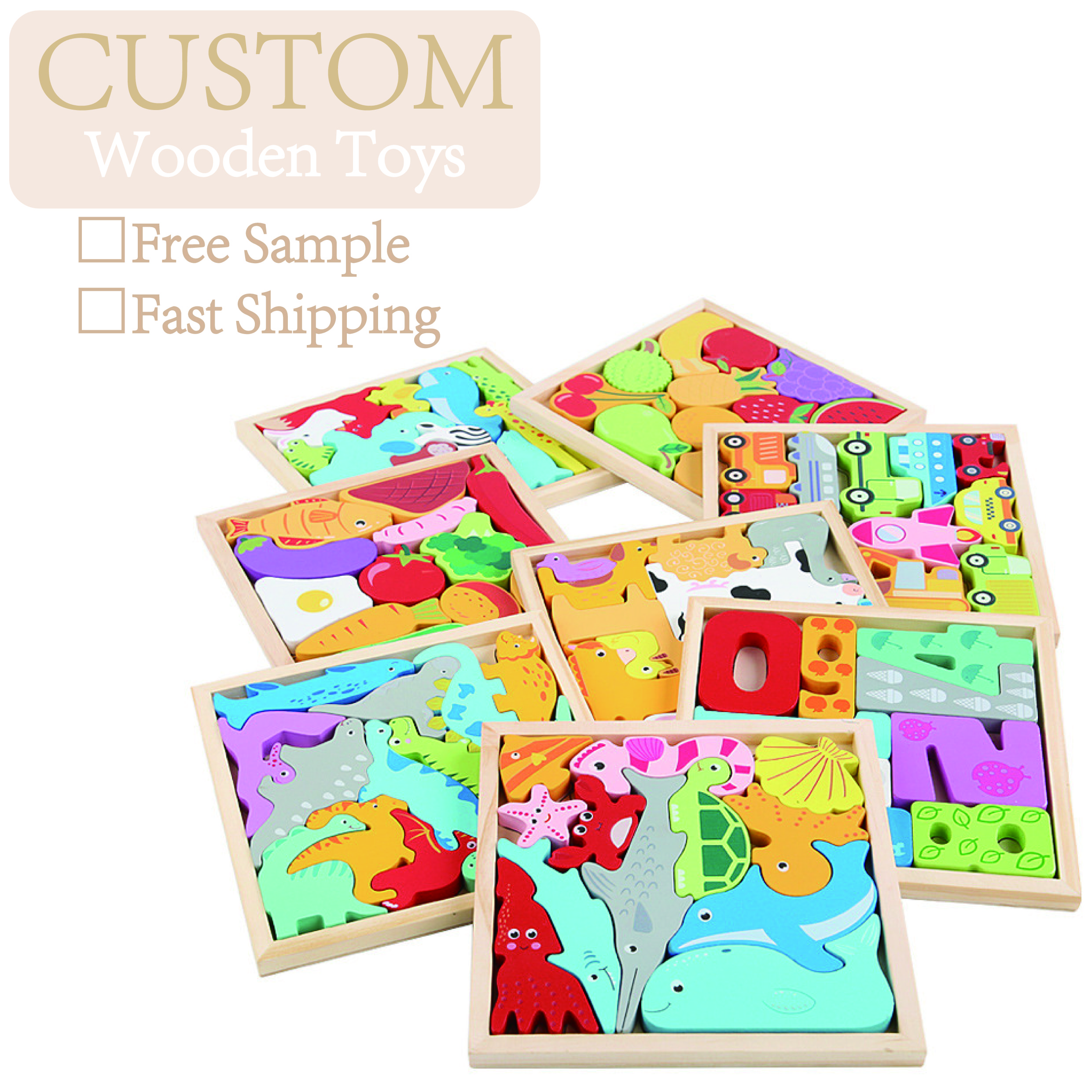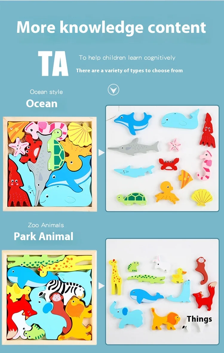 Large DIY Wooden Puzzle and Building Blocks Early Educational Toys for 2-3 Year Old Infants and Toddlers