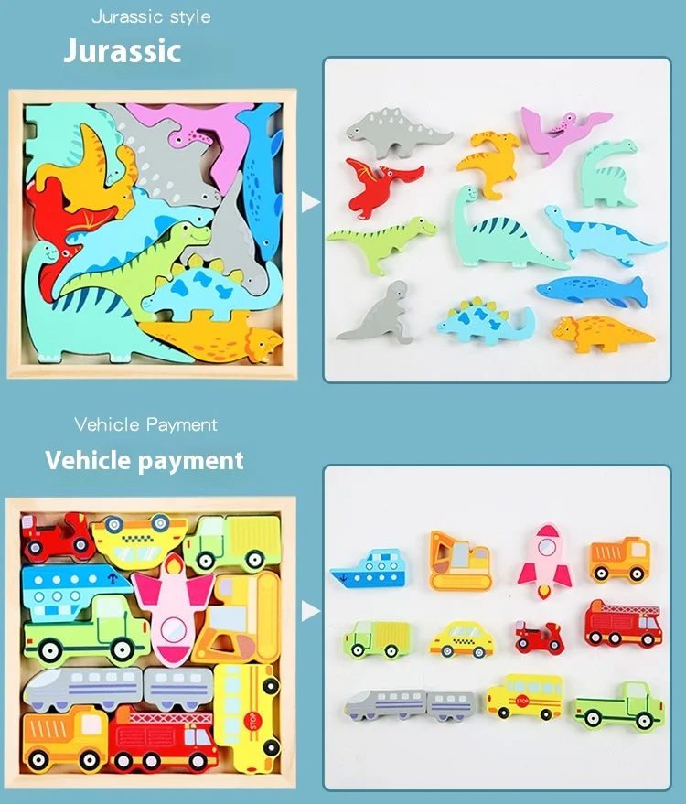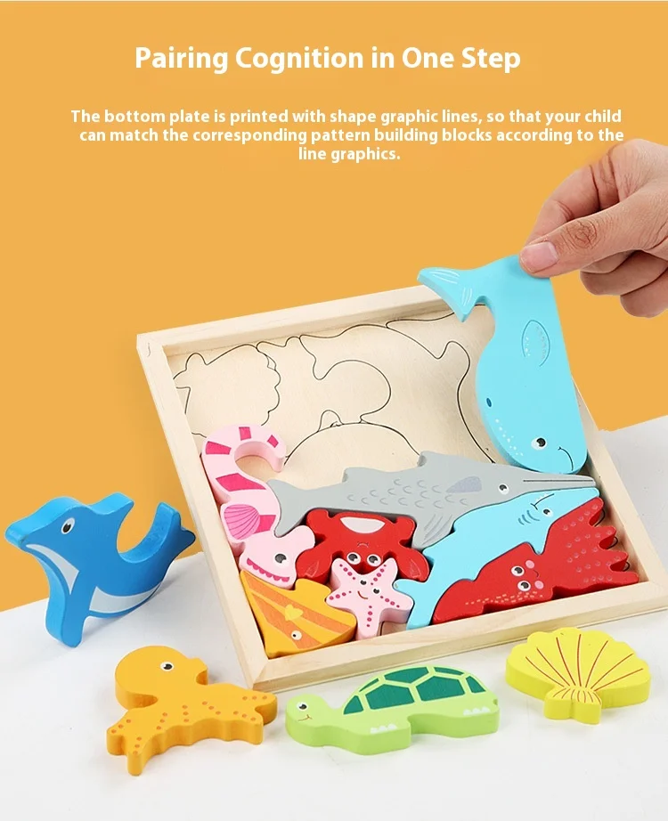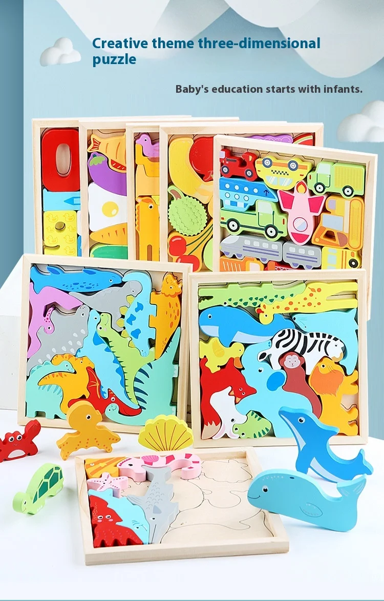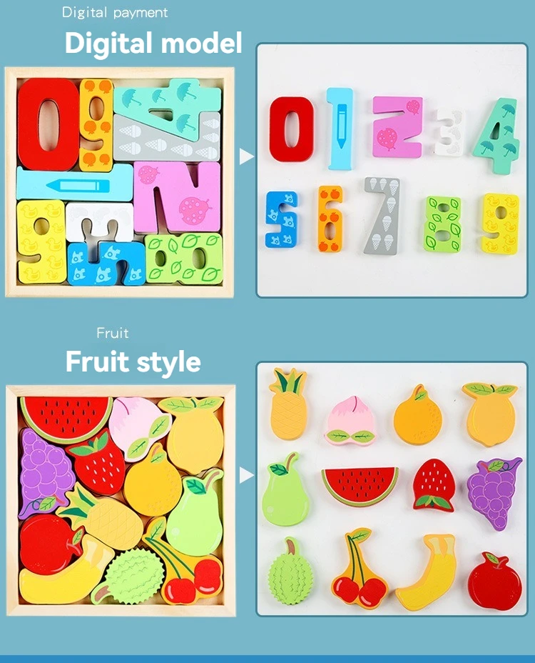 Large DIY Wooden Puzzle and Building Blocks Early Educational Toys for 2-3 Year Old Infants and Toddlers