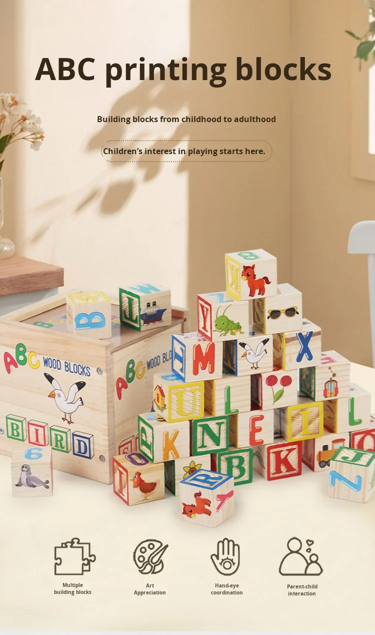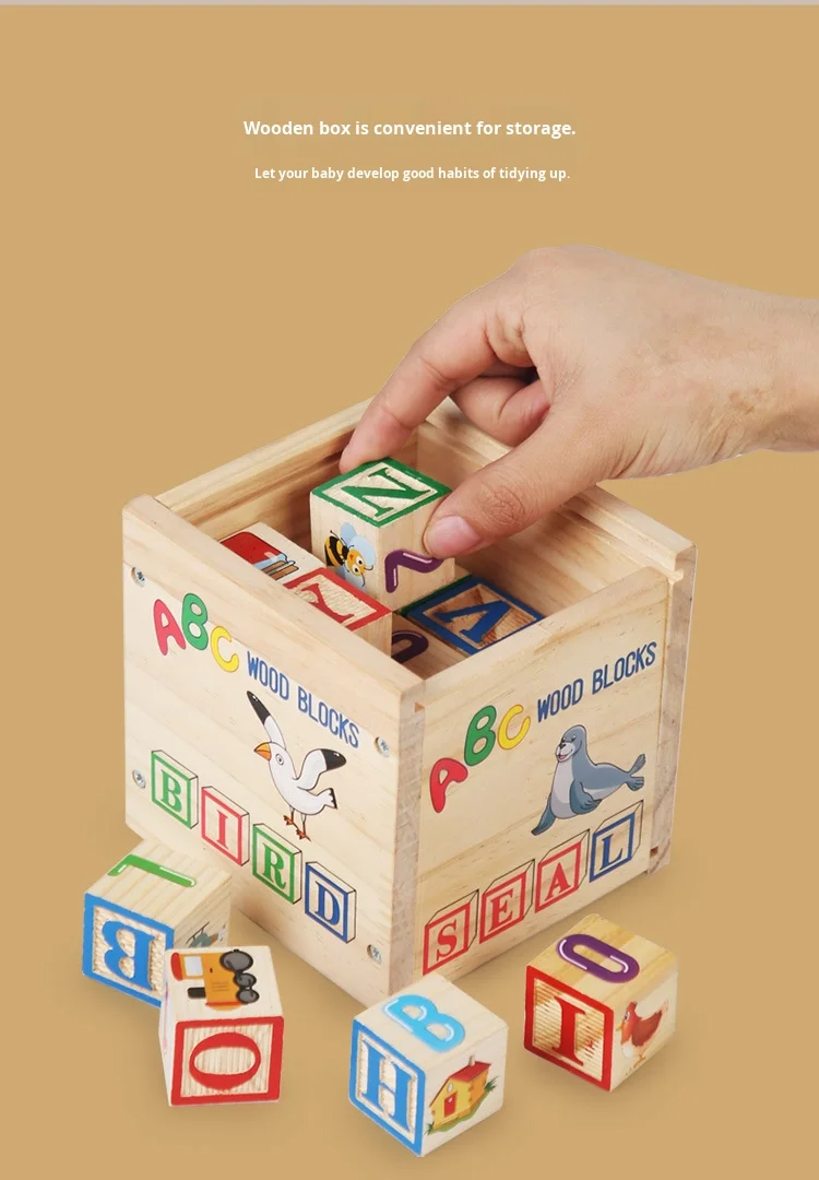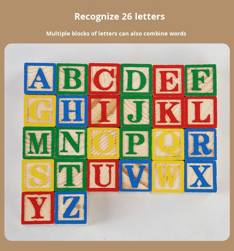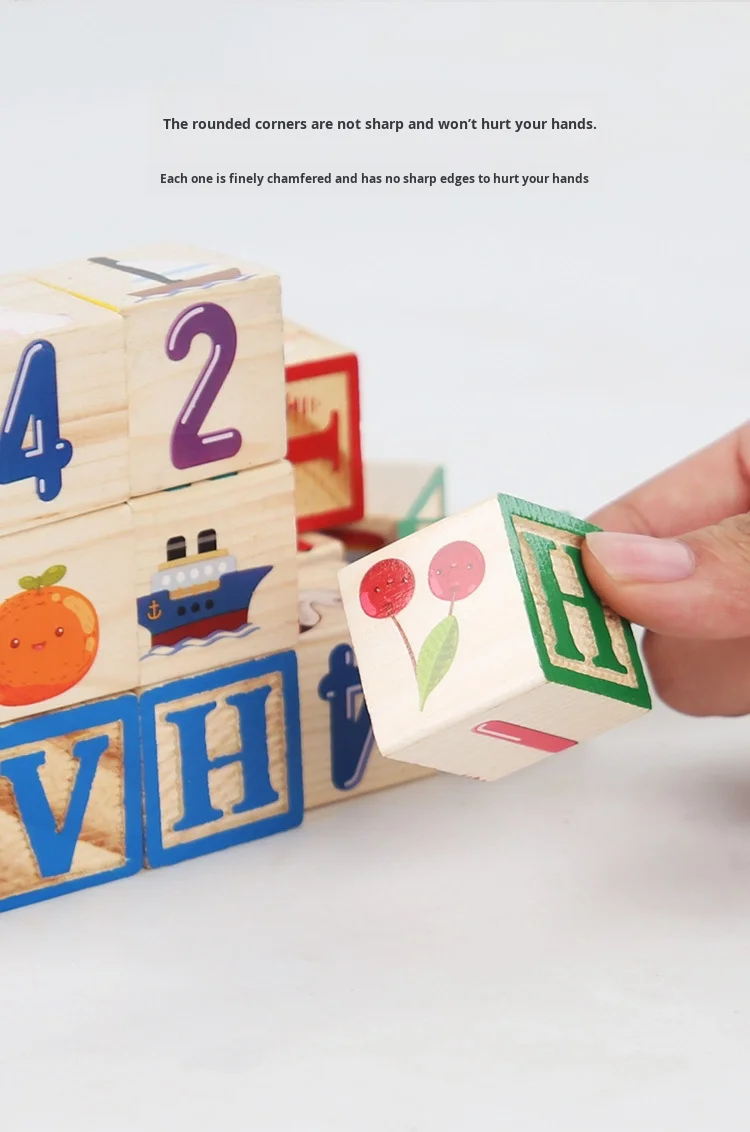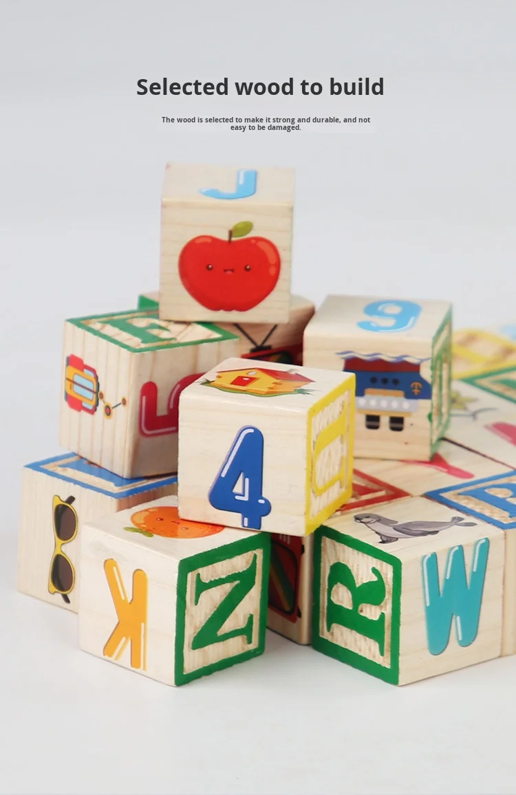 Large Wood Particles Building Blocks for Baby Children’s Early Education Cognitive Number Alphabet Assembly Educational Toys