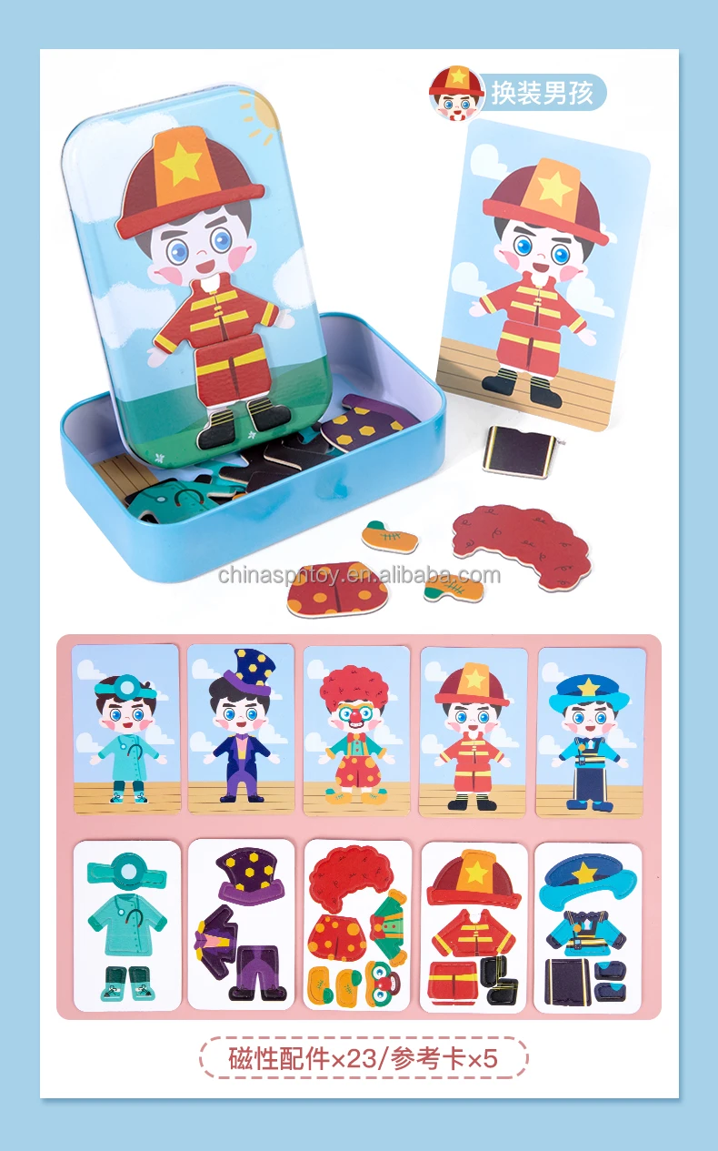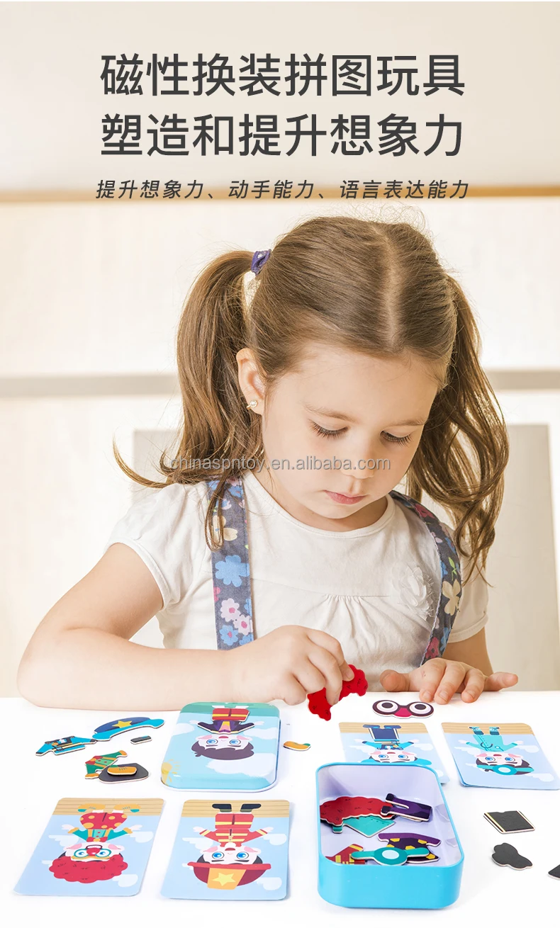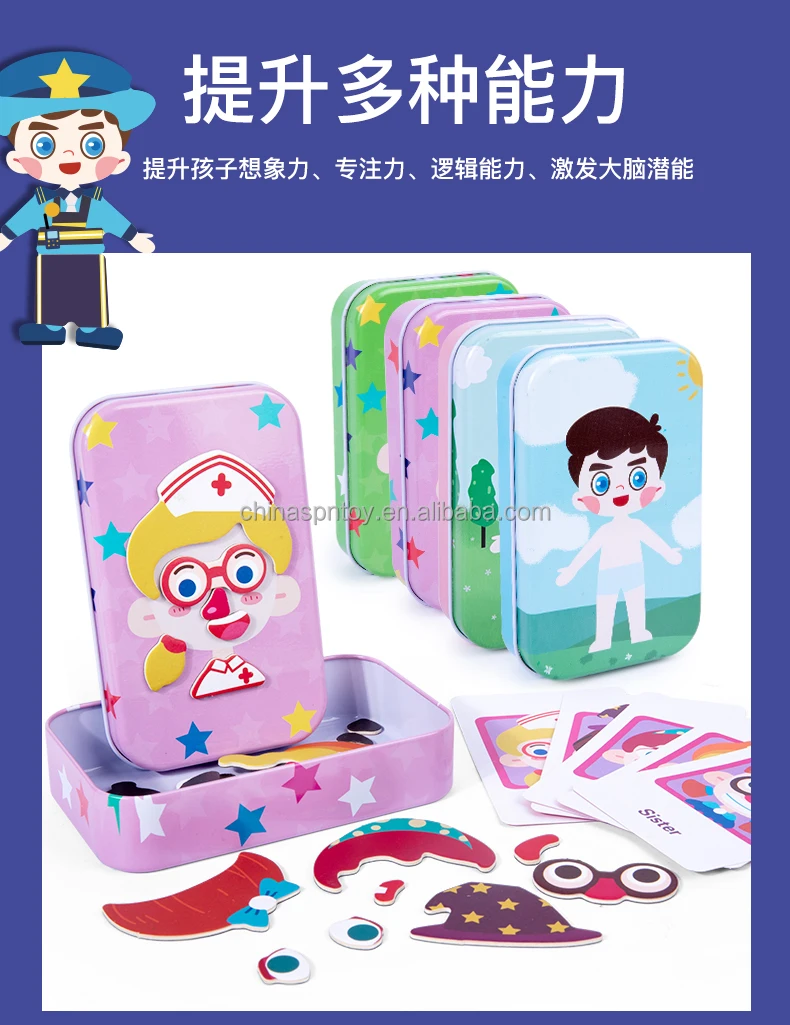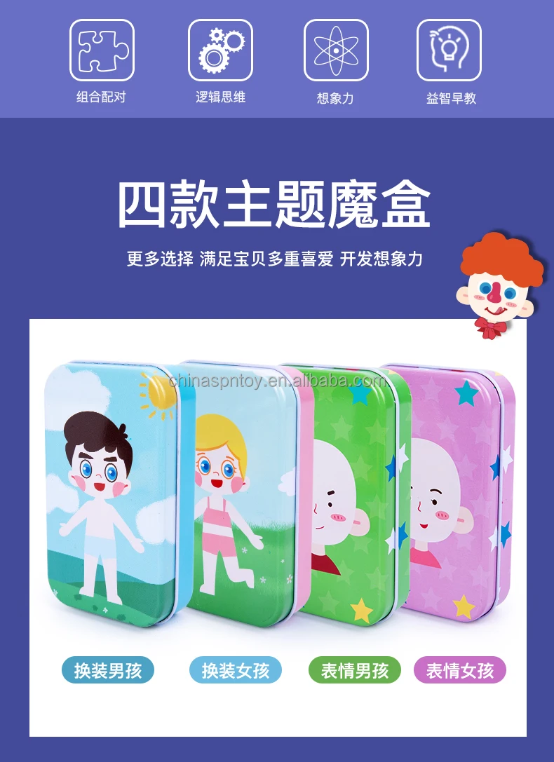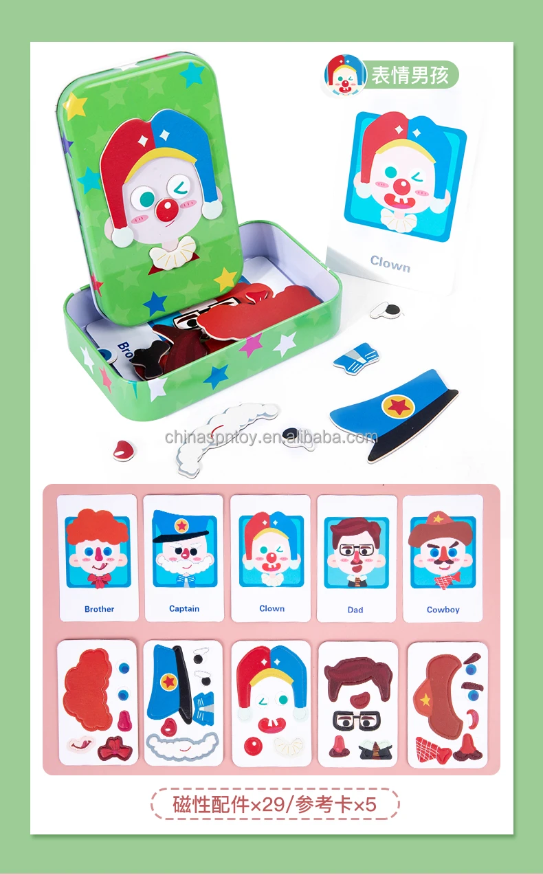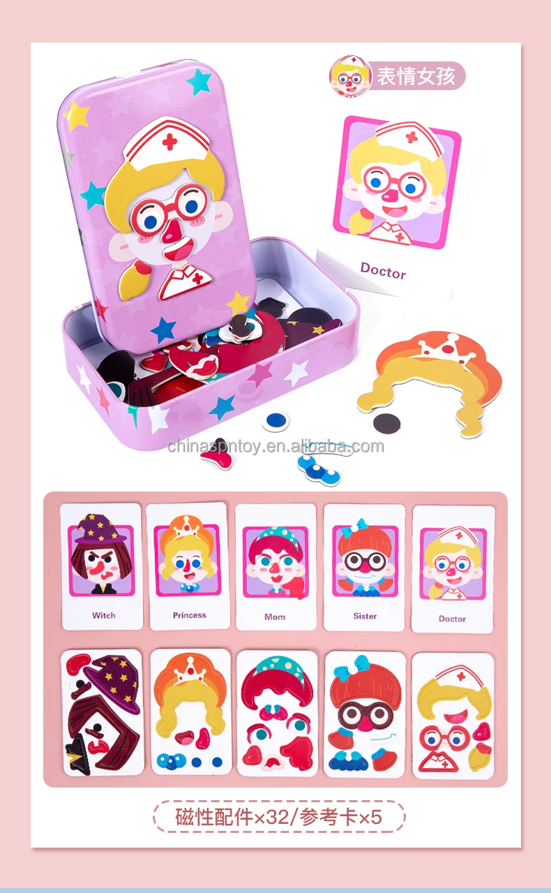 Magnetic Wooden Educational Jigsaw Puzzle Expression Box Set 4 Styles Learning Game for Kids