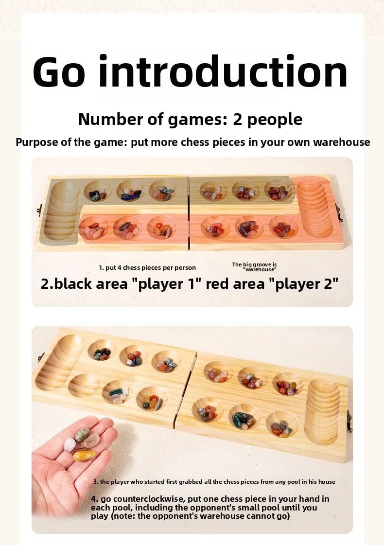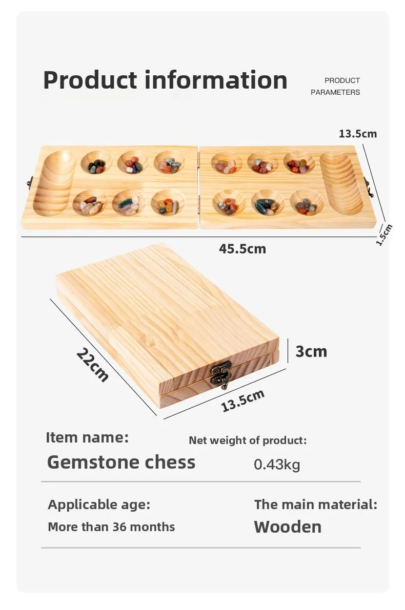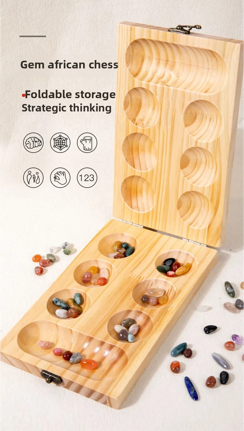Mancala Wooden Gem Chess African Desktop Game for Educational Space Thinking Warehouse Return Toy