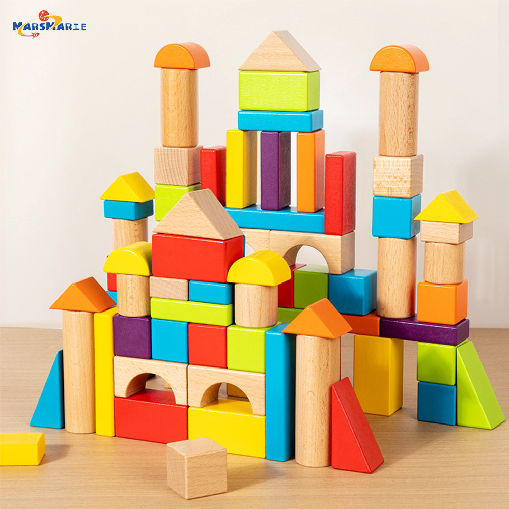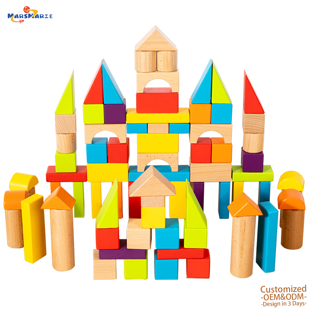 MarsMarie Solid Wood Educational DIY Toy Building Block Set 58/78-Piece Mini Castle Ages 0-14+ Made Zhejiang Factory Direct