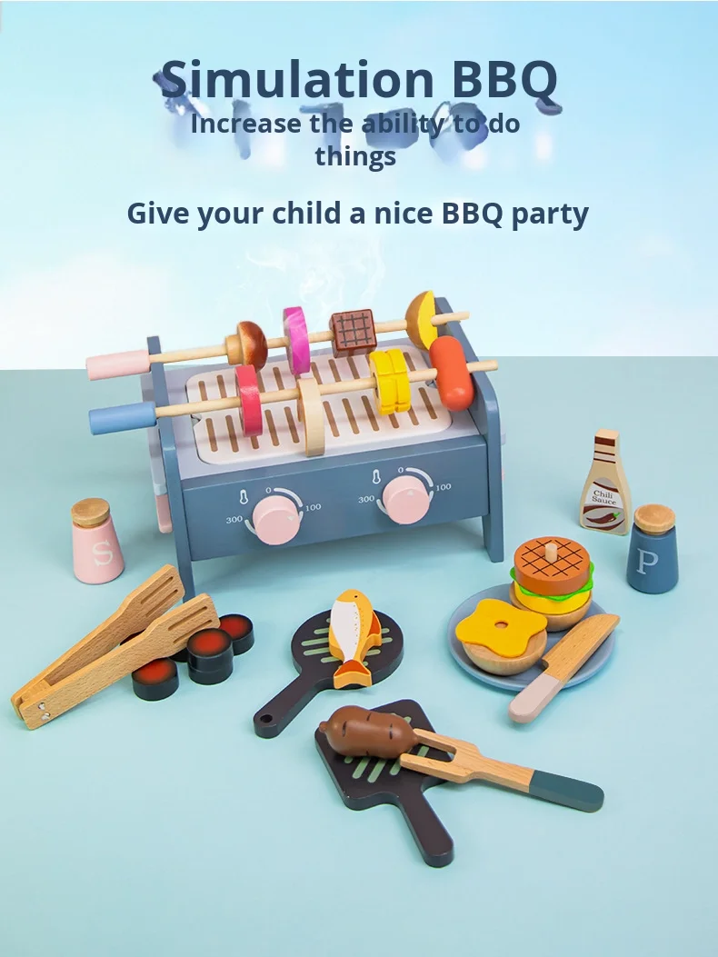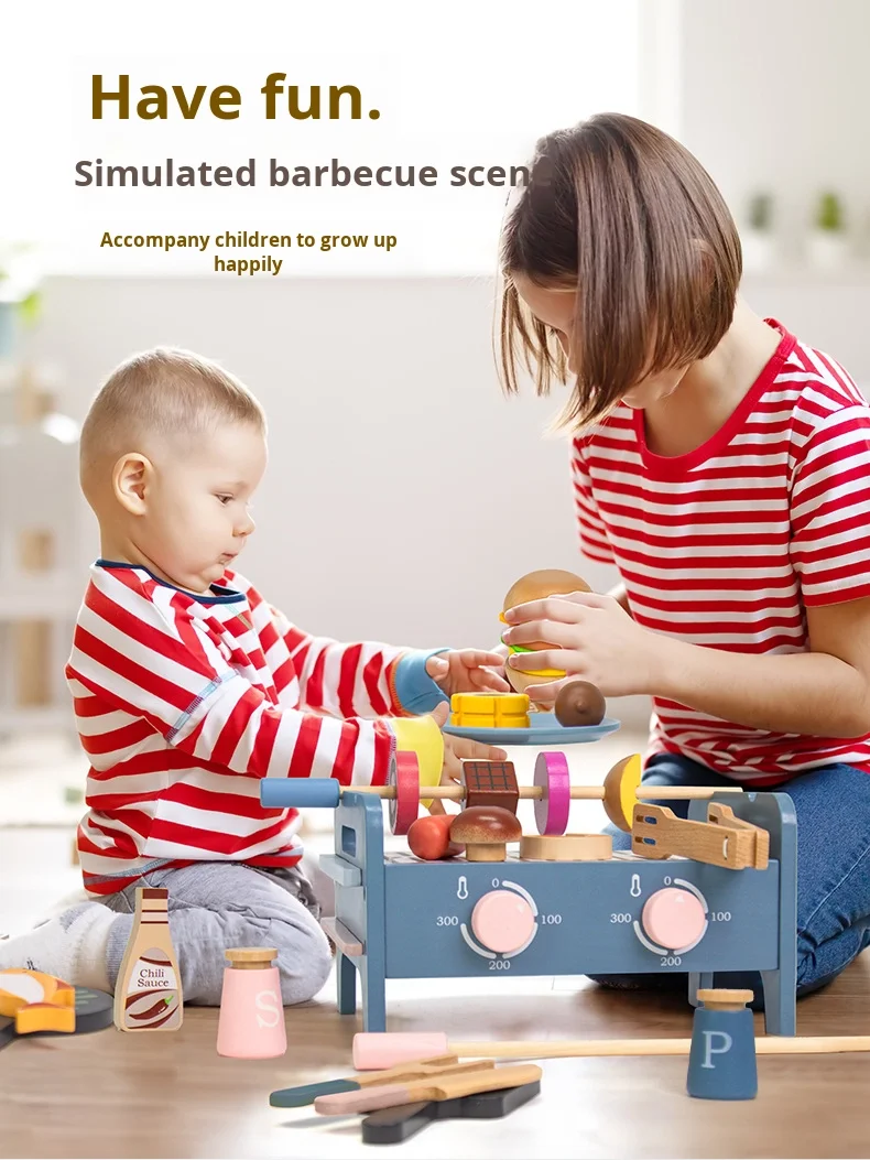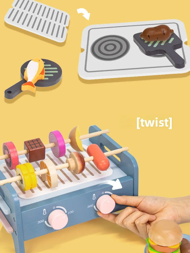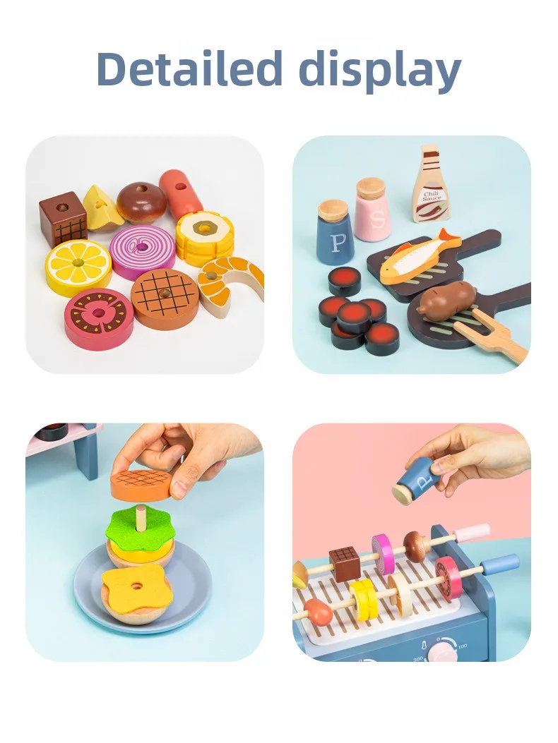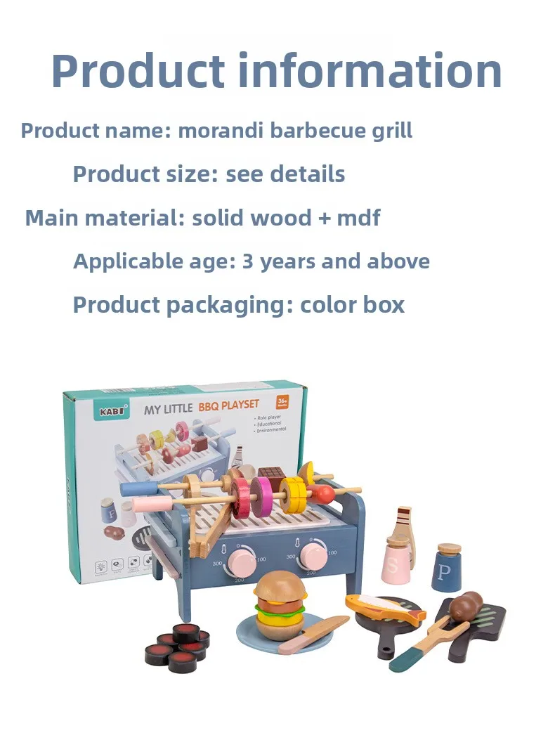 Mini Interactive Wooden Toy for Children’s Play House Kitchen Stove Morandi Barbecue Grill Simulation Food Toys Box