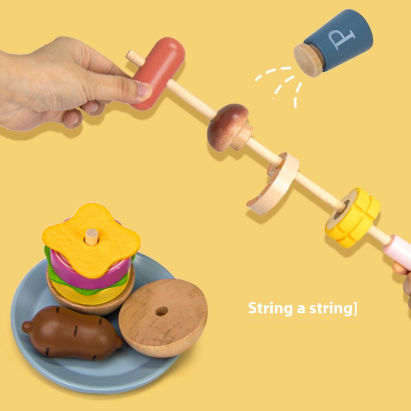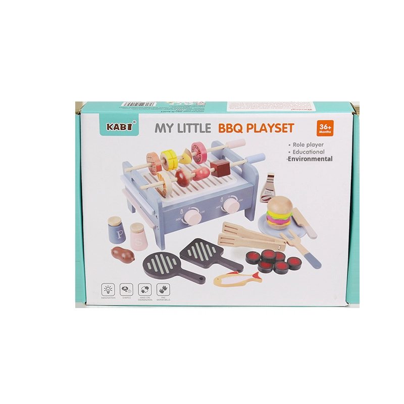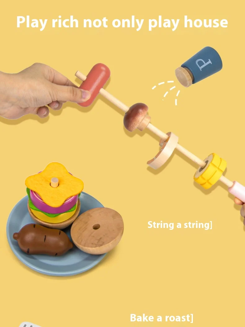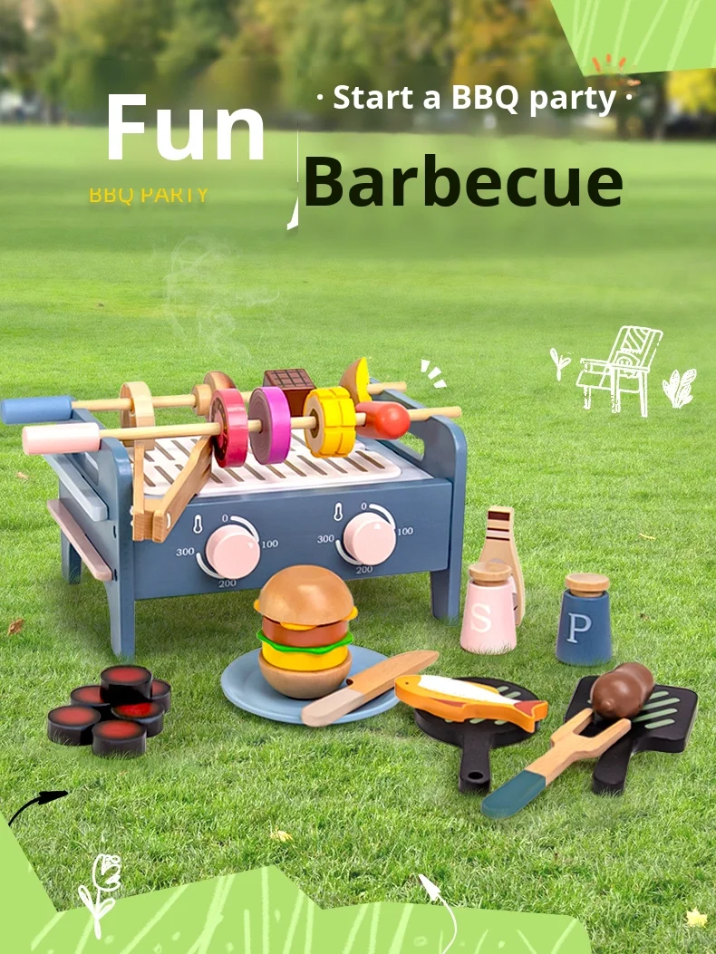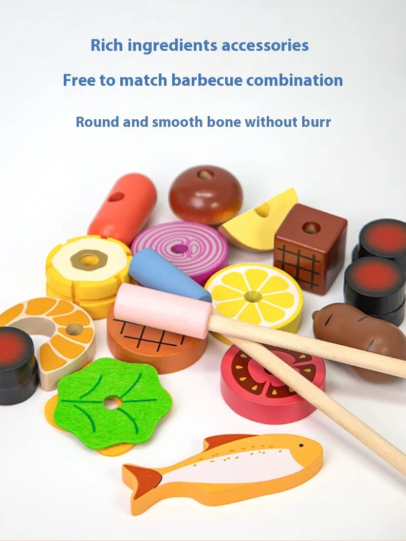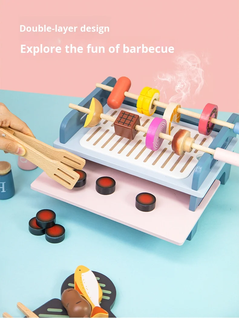 Mini Interactive Wooden Toy for Children’s Play House Kitchen Stove Morandi Barbecue Grill Simulation Food Toys Box