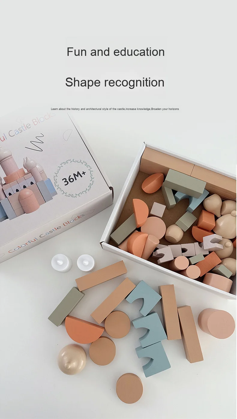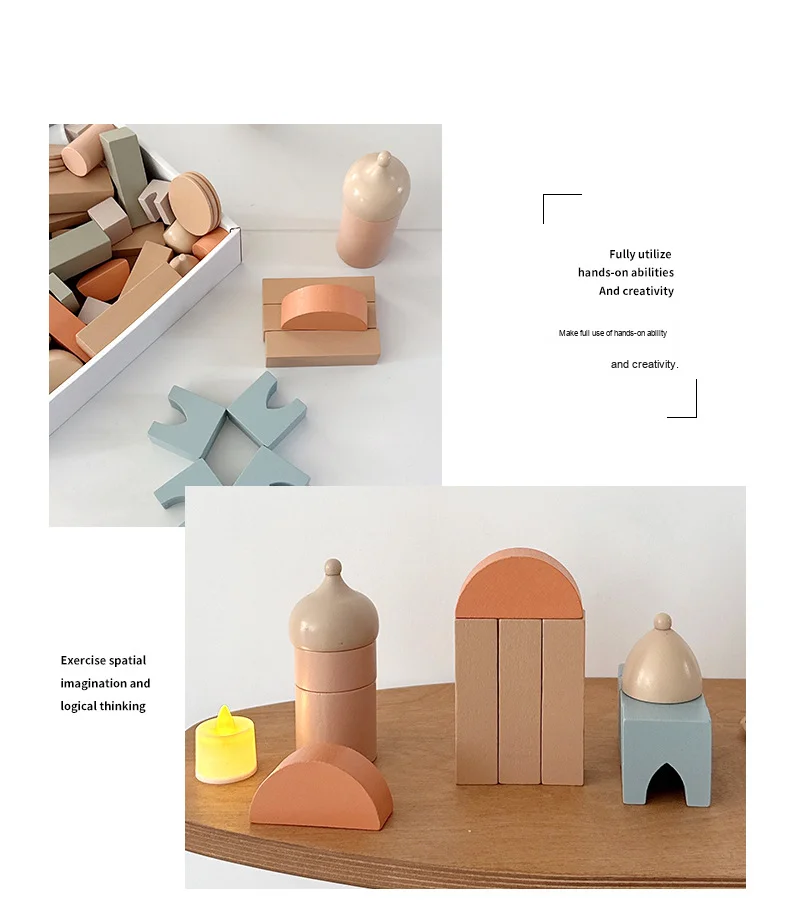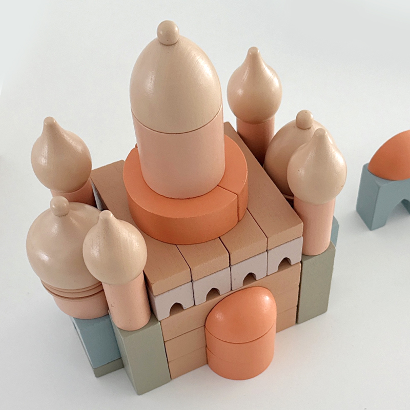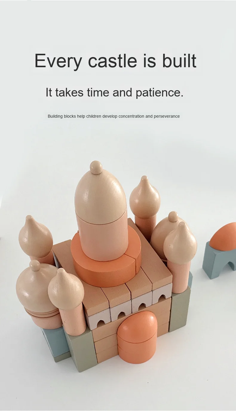Modern Nordic Wooden Castle Building Blocks Colorful Early Learning DIY Assembly Toy for Children