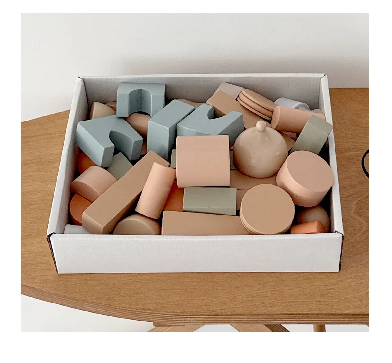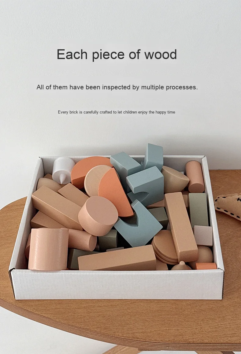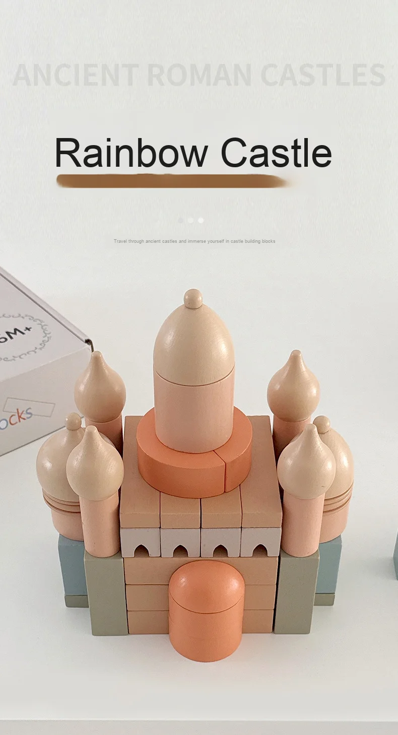 Modern Nordic Wooden Castle Building Blocks Colorful Early Learning DIY Assembly Toy for Children