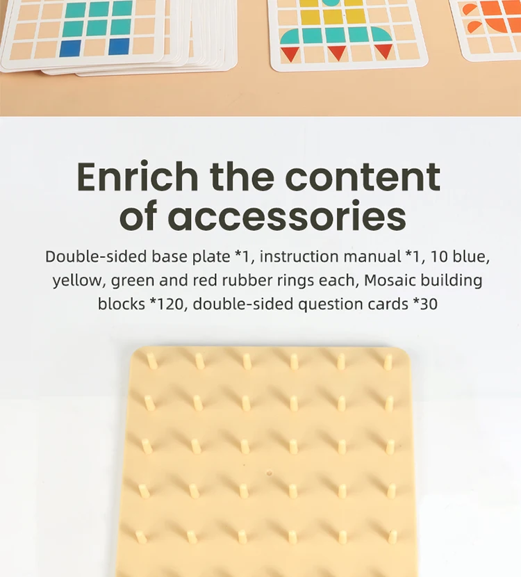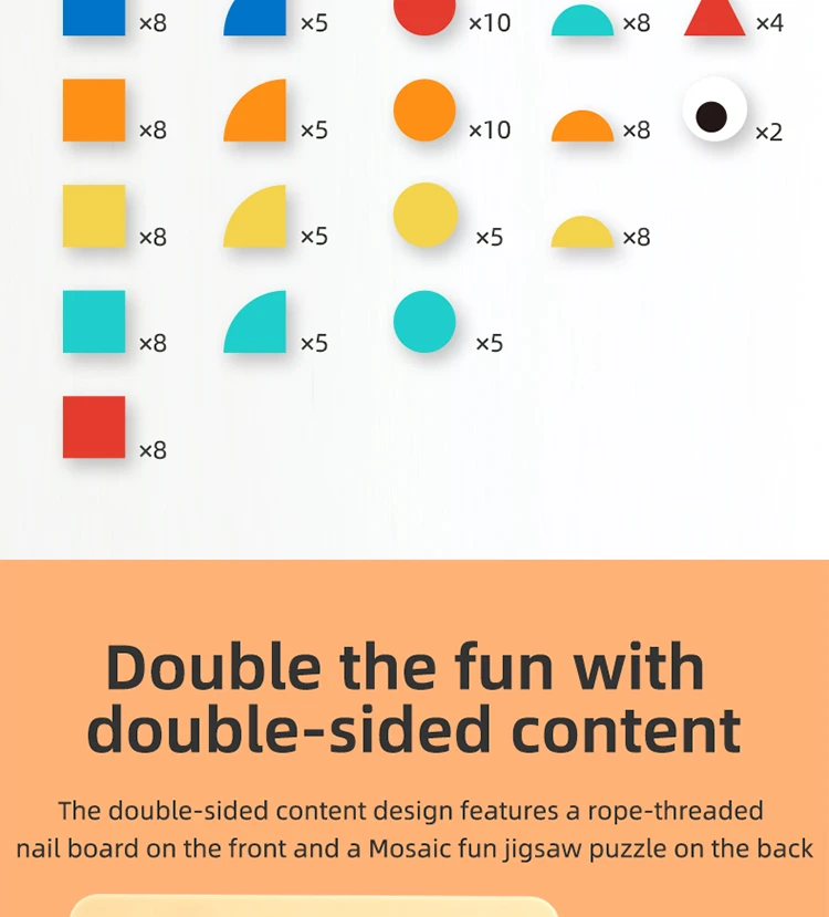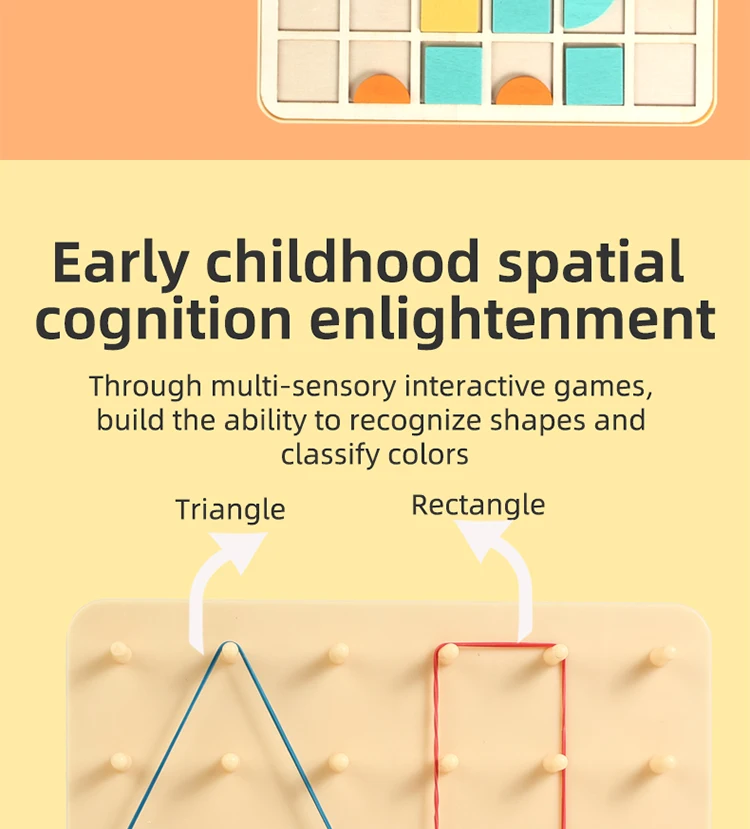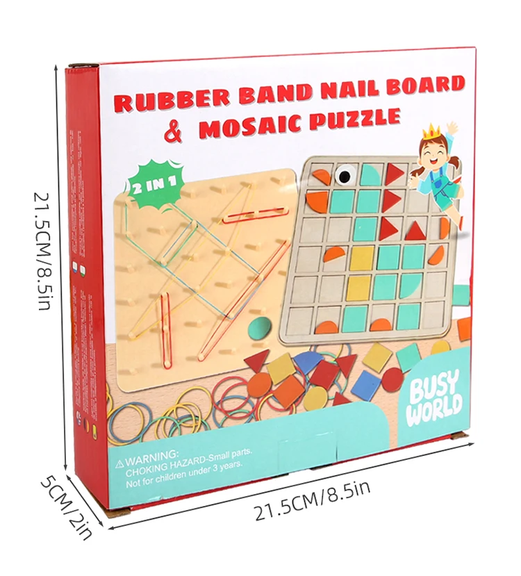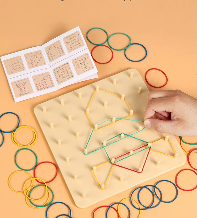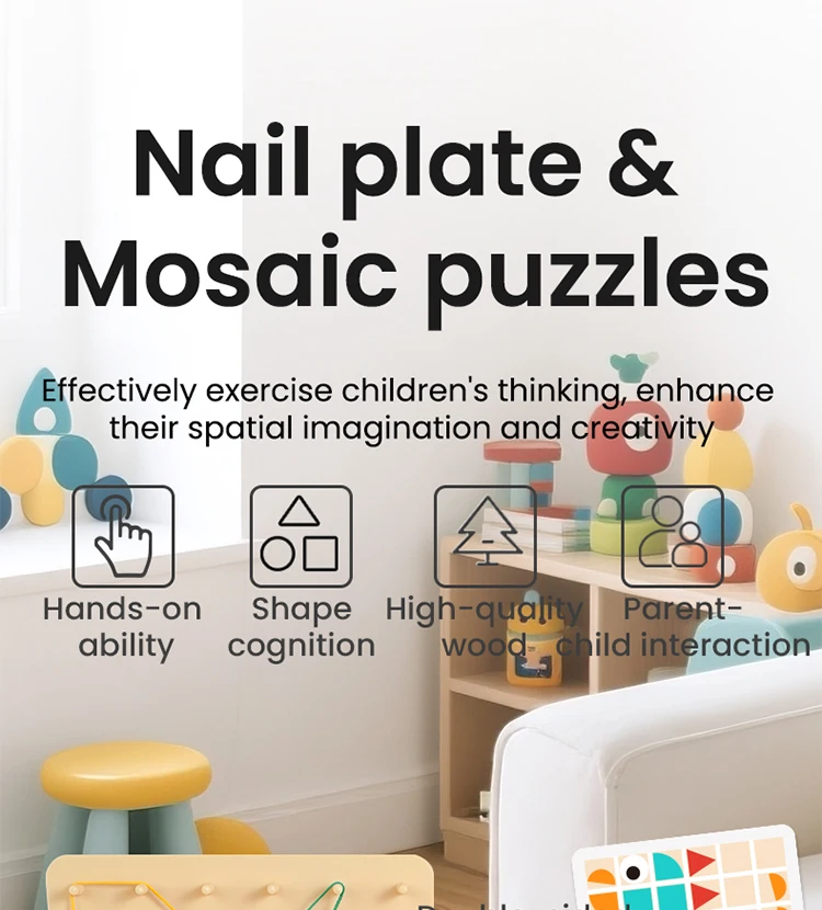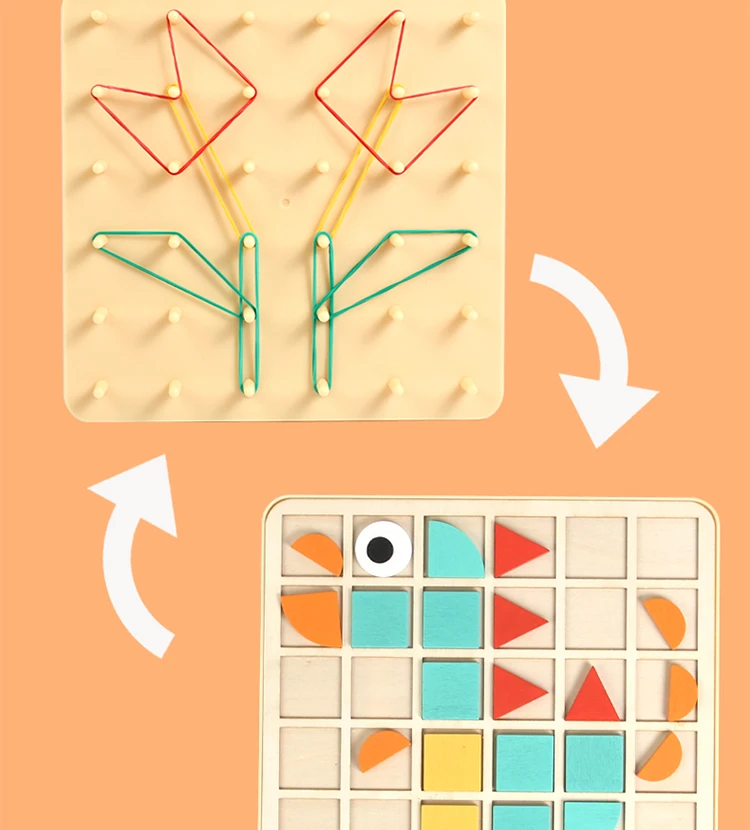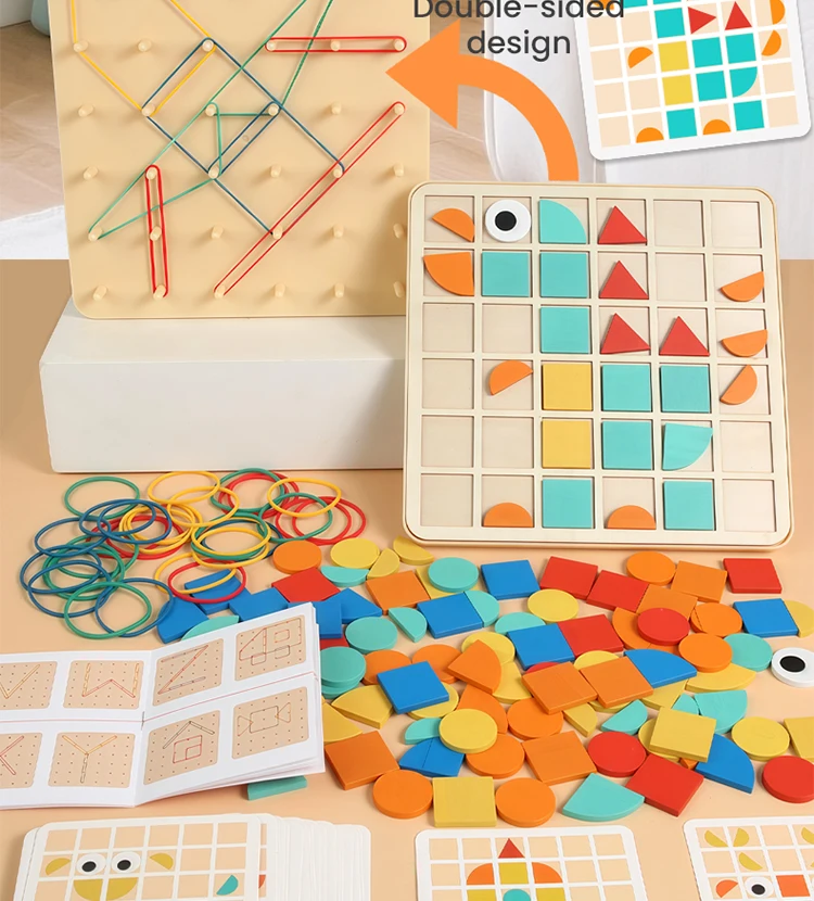 Montessori 2-in-1 Wooden Toy for Kids Education Building Blocks Mosaic Puzzles Nail Board Geoboard Graphical Toy