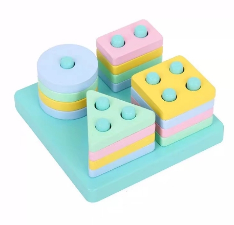 Montessori Baby Building Blocks Square 4 Set Geometric Shape Matching Assemble Board Early Education Wood Intellectual Toys