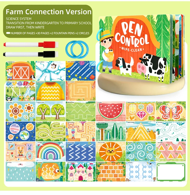 Montessori Early Education Farm Alphabet Ocean Numbers Erasable Pen Control Training Cards Early Education Book