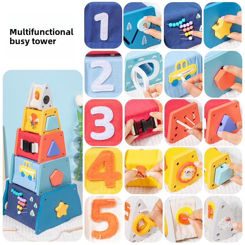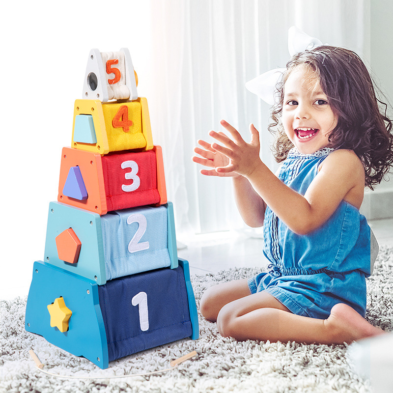 Montessori Early Learning Multifunctional Stacking Toy Educational Blocks Shape Training Hand-eye Coordination for Unisex