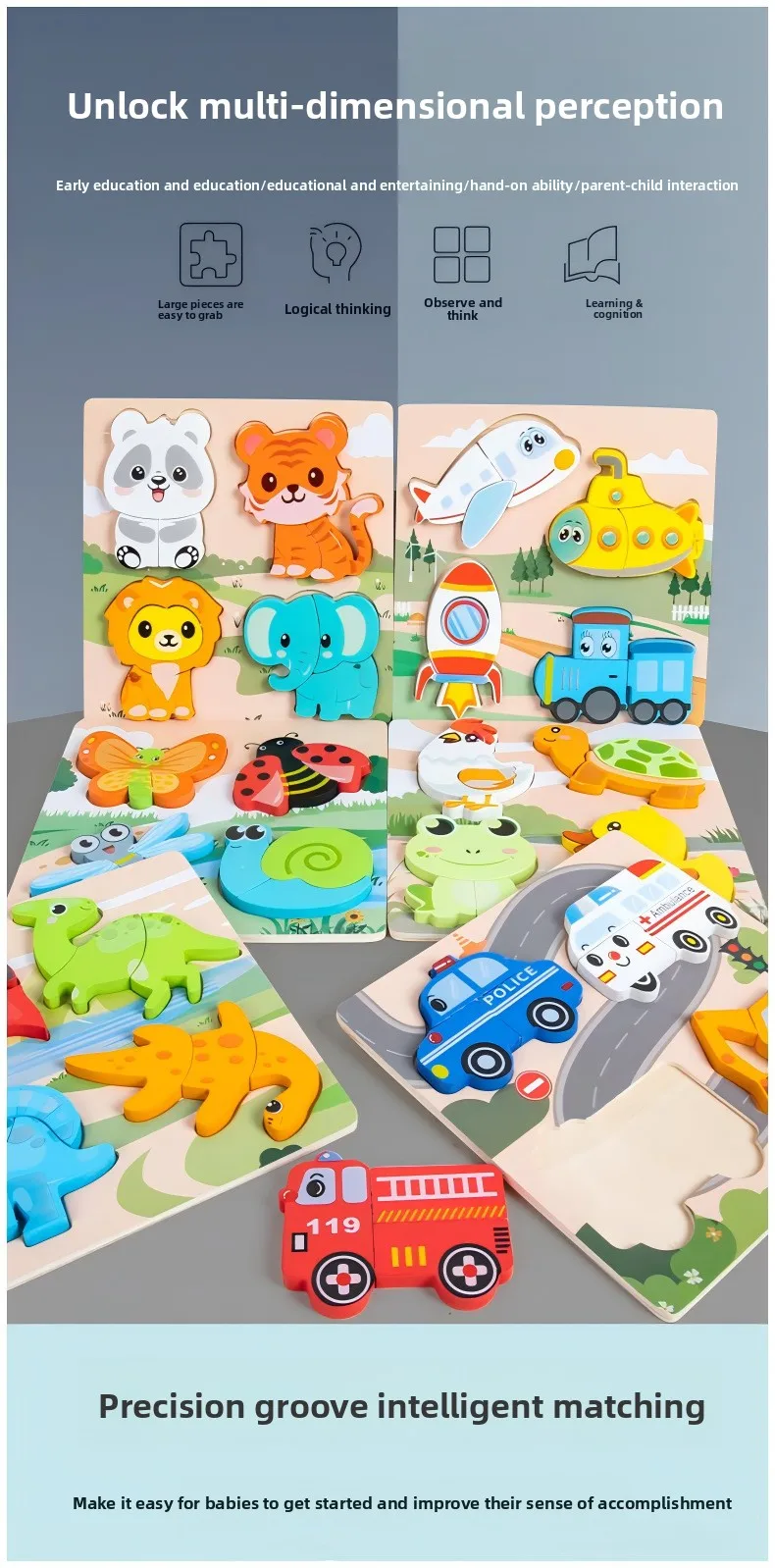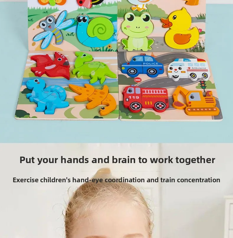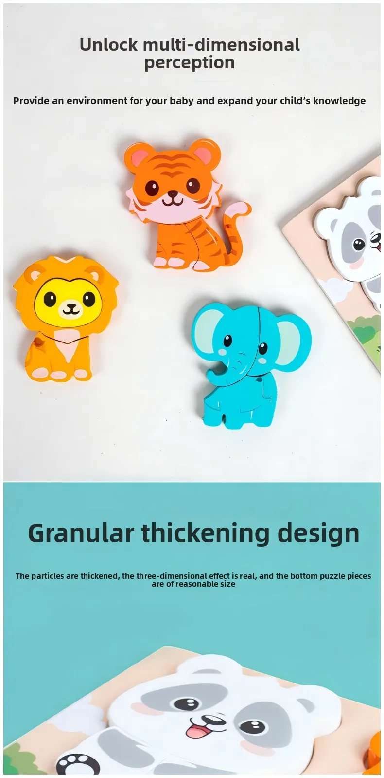 Montessori Educational 3D Wooden Animal Puzzle for Children DIY Toy for Early Learning Focus Training for Ages 2 to 4 Years