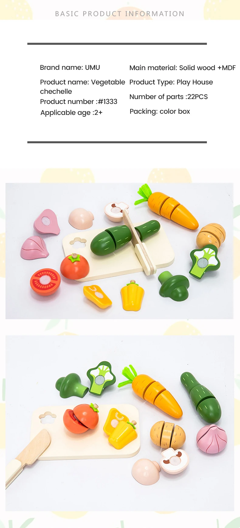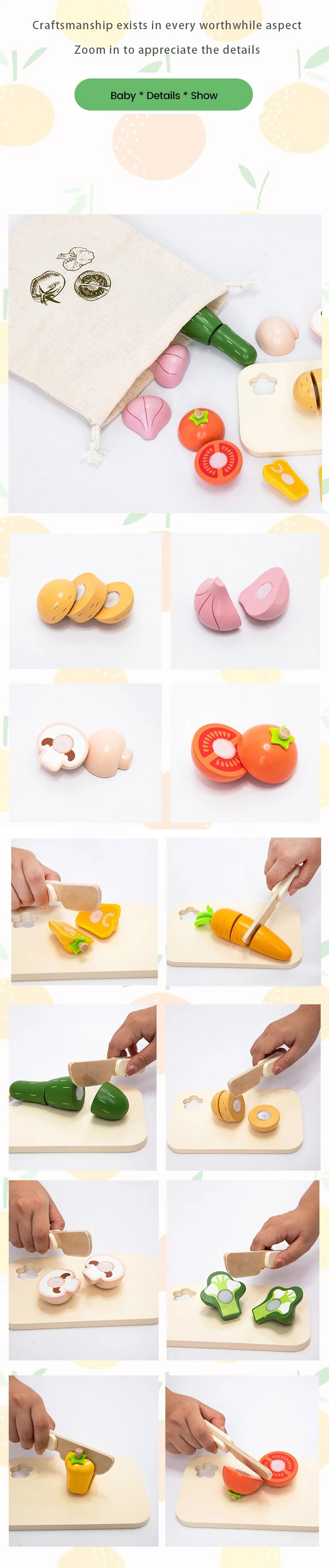 Montessori Educational Kitchen Wooden Vegetables Set Toy Cutting Toys for Fruits and Vegetables Kids