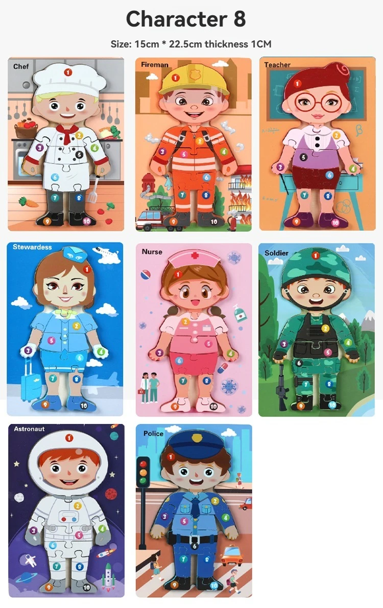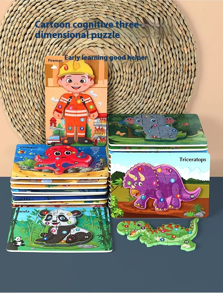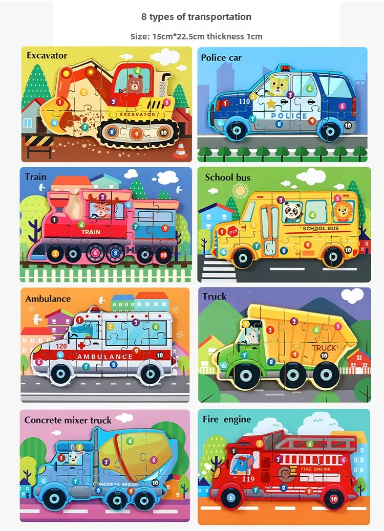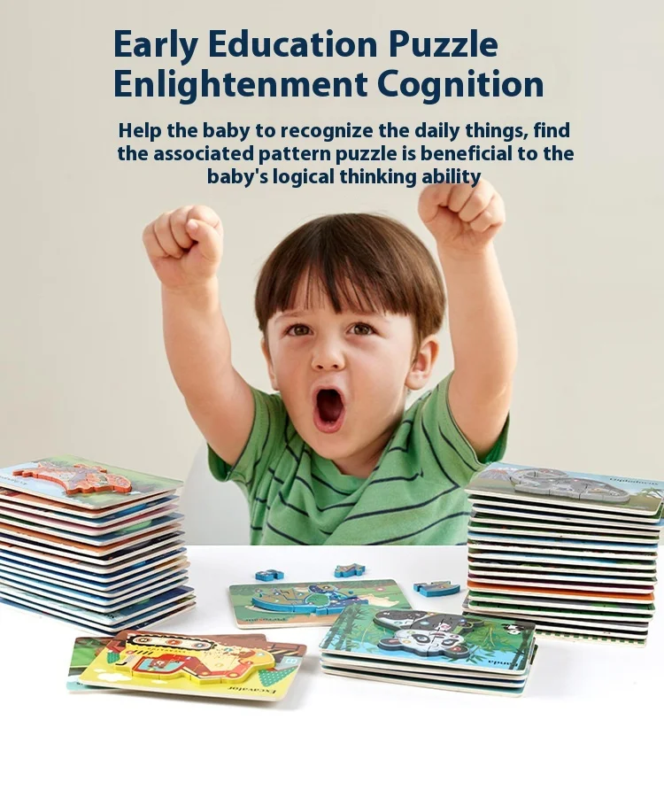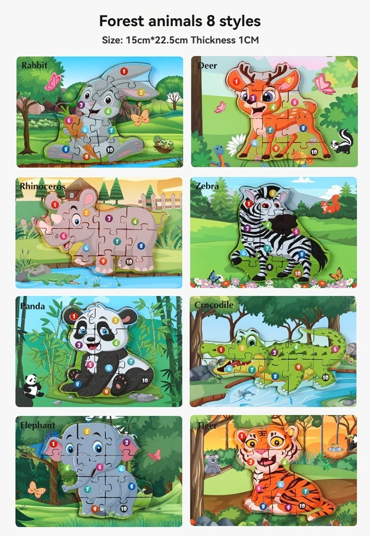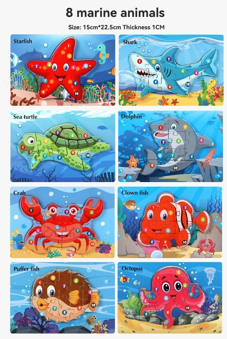 Montessori Educational Learning 40 Types Wooden Animals Ocean Traffic Cognitive 3D Wooden Jigsaw Puzzles
