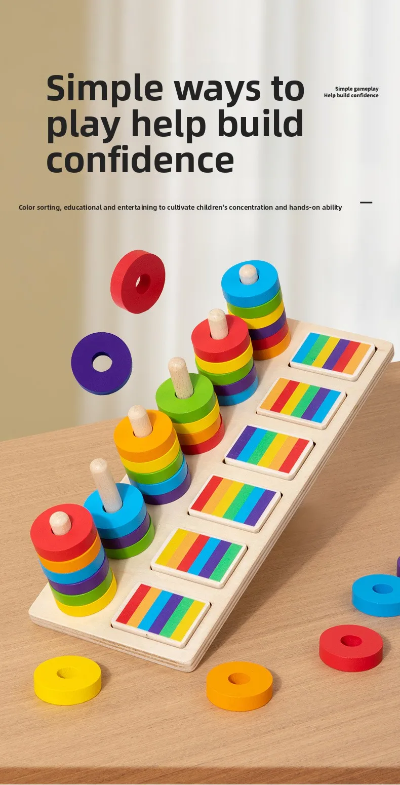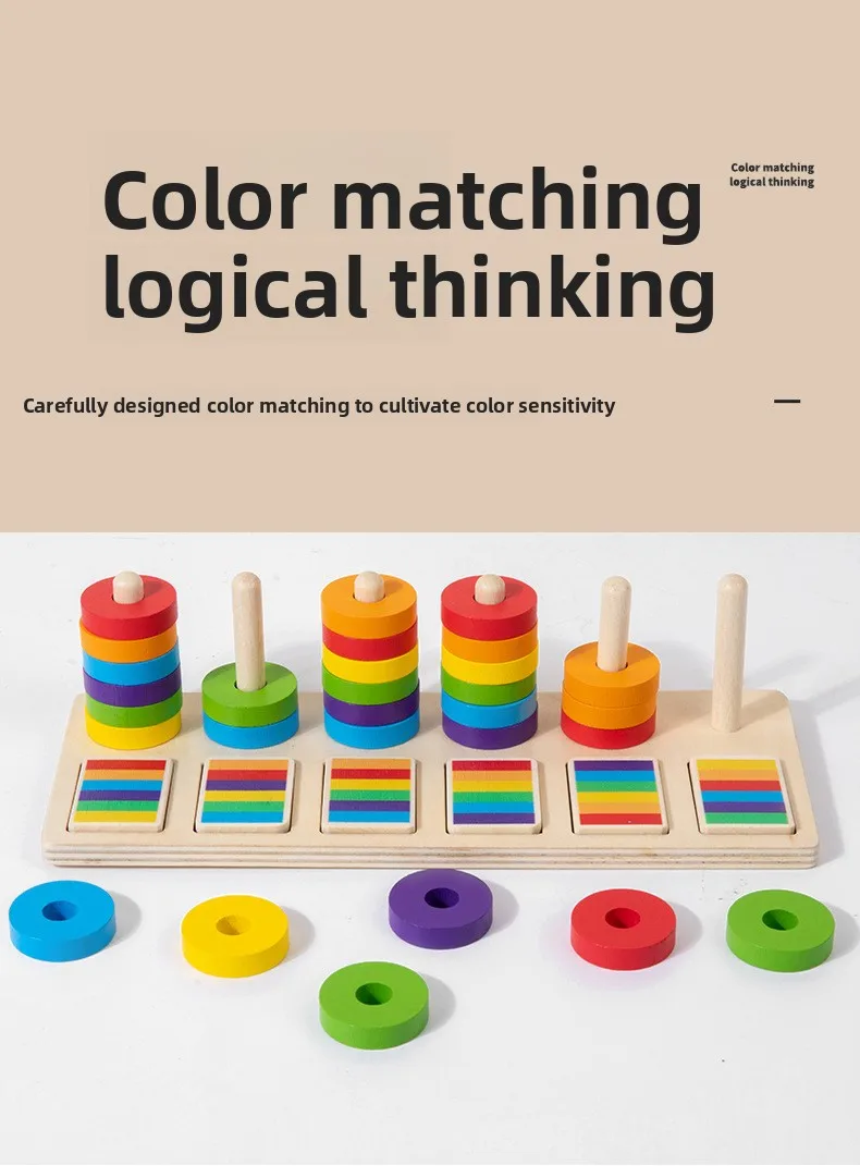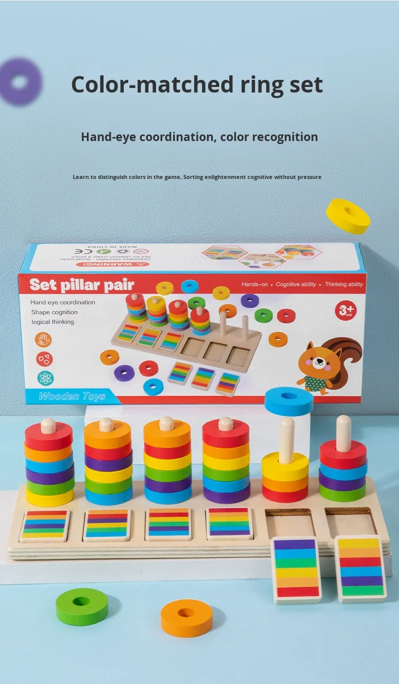Montessori Educational Toys for Kindergarten Color Matching Rings Shape Boards Column Sets Early Childhood Building Blocks