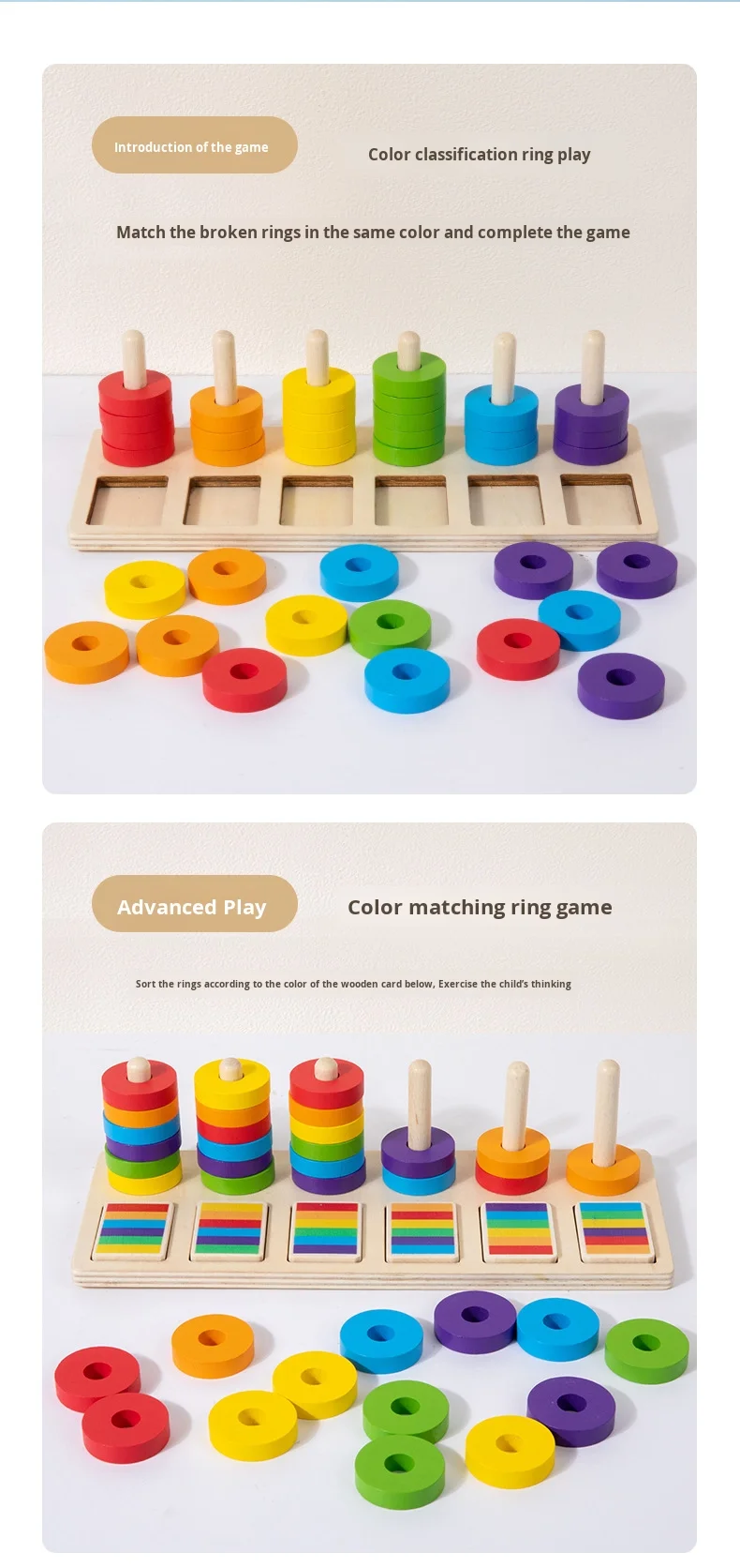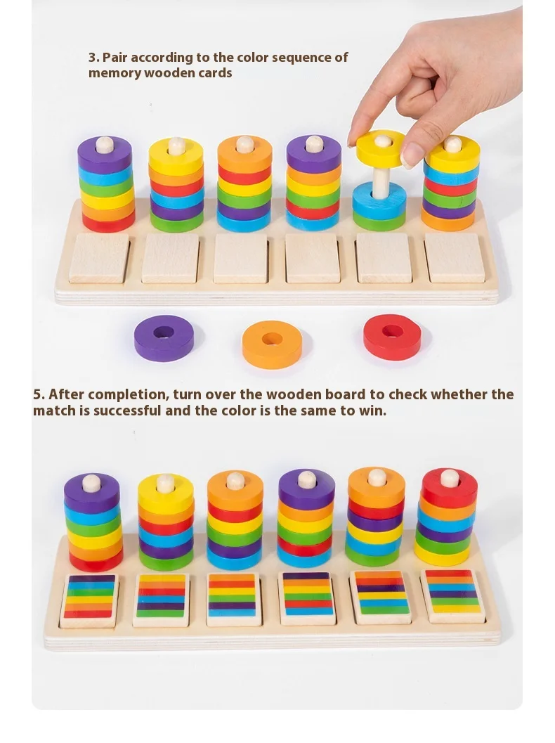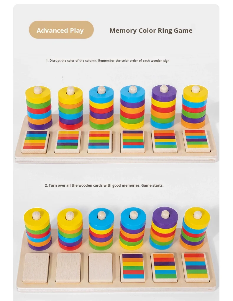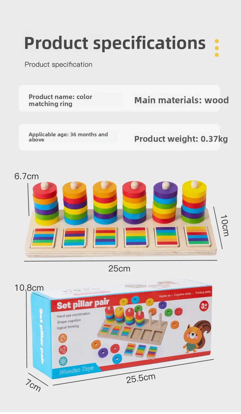 Montessori Educational Toys for Kindergarten Color Matching Rings Shape Boards Column Sets Early Childhood Building Blocks