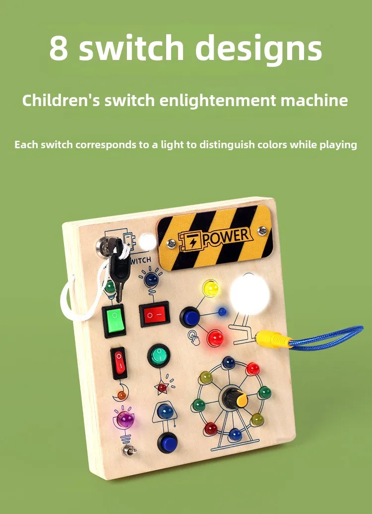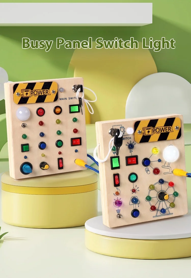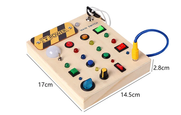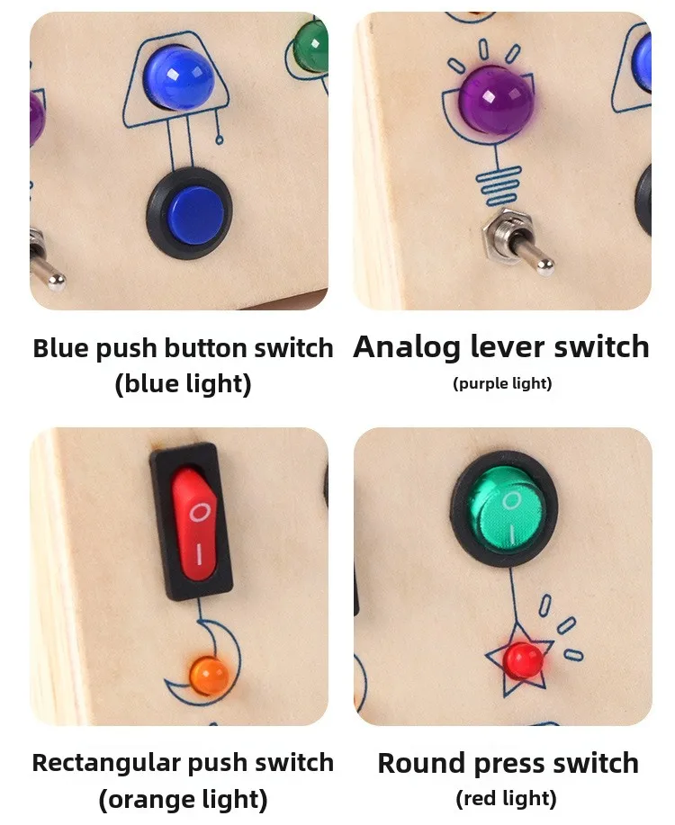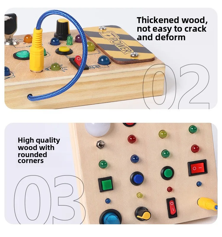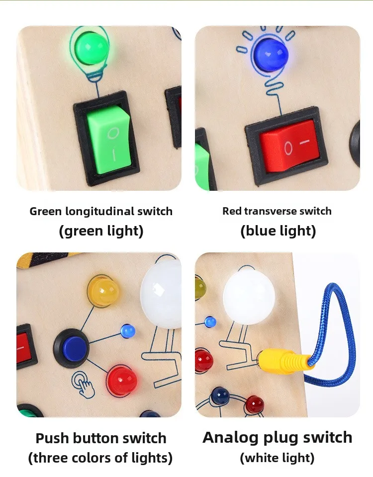 Montessori Educational Toys Wooden Busy Board with LED Switch Simulation Circuit Early Learning Tool for Kids