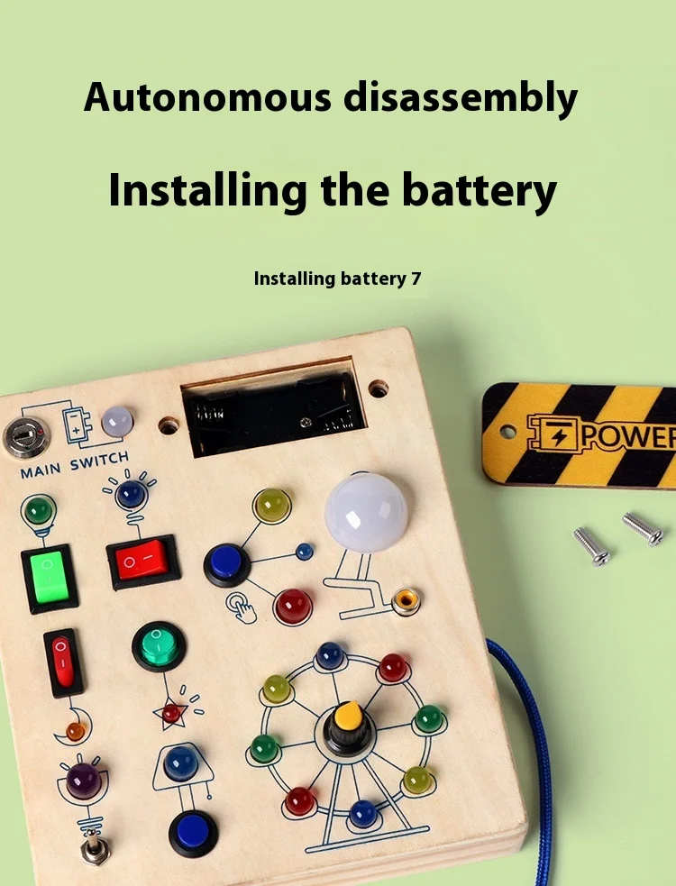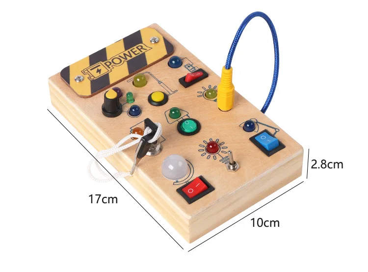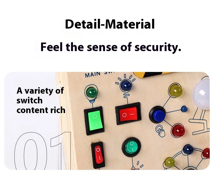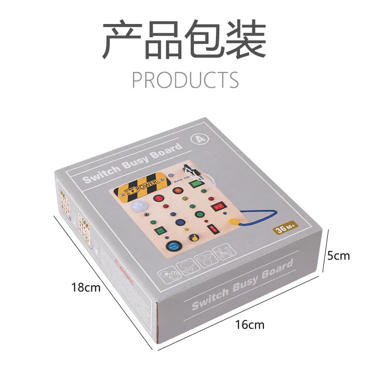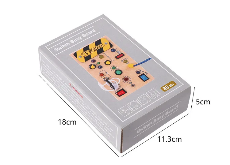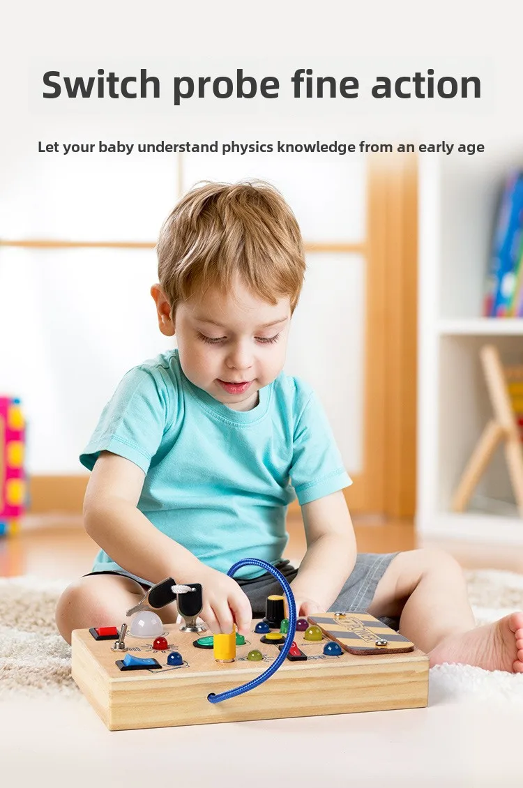 Montessori Educational Toys Wooden Busy Board with LED Switch Simulation Circuit Early Learning Tool for Kids