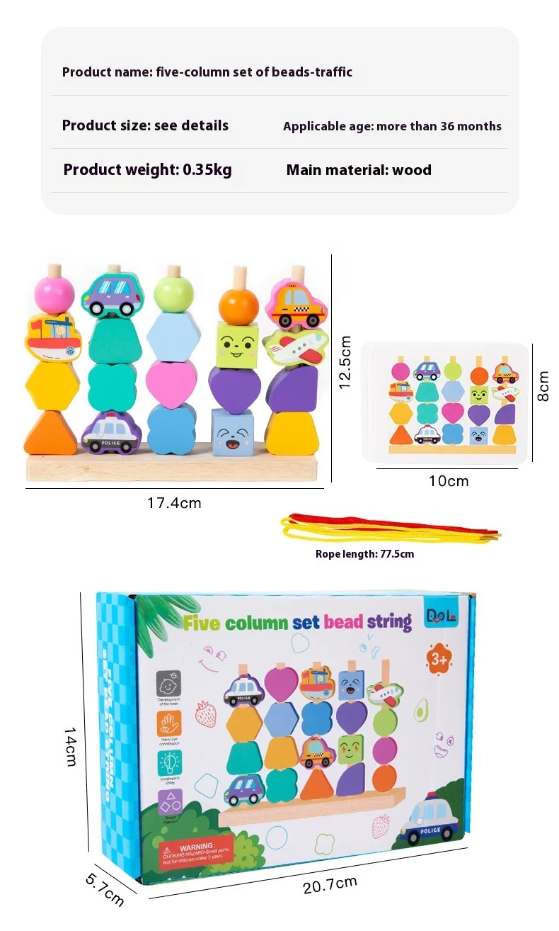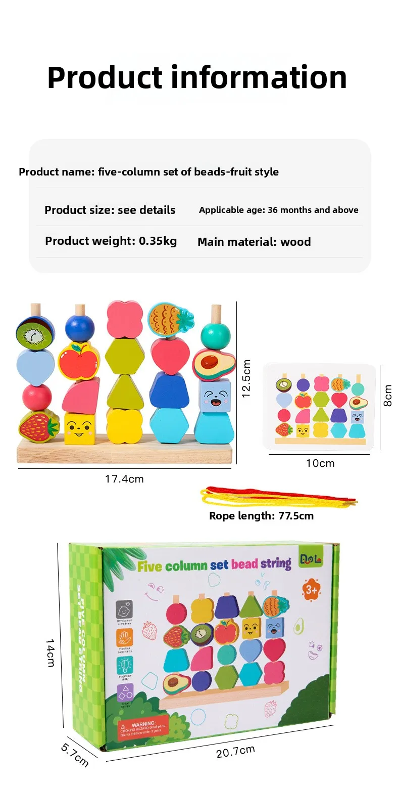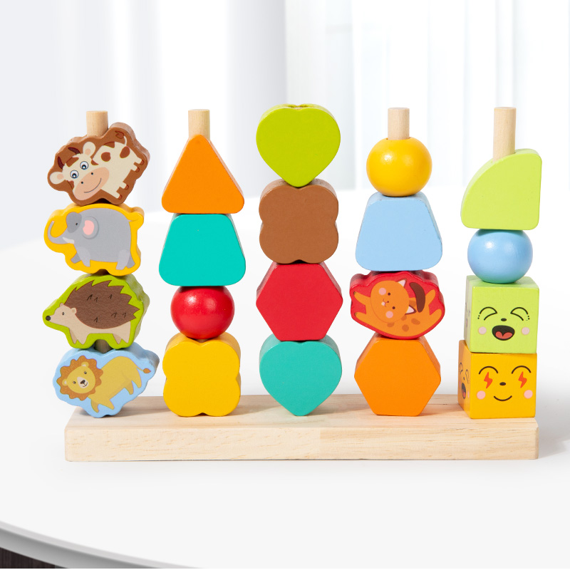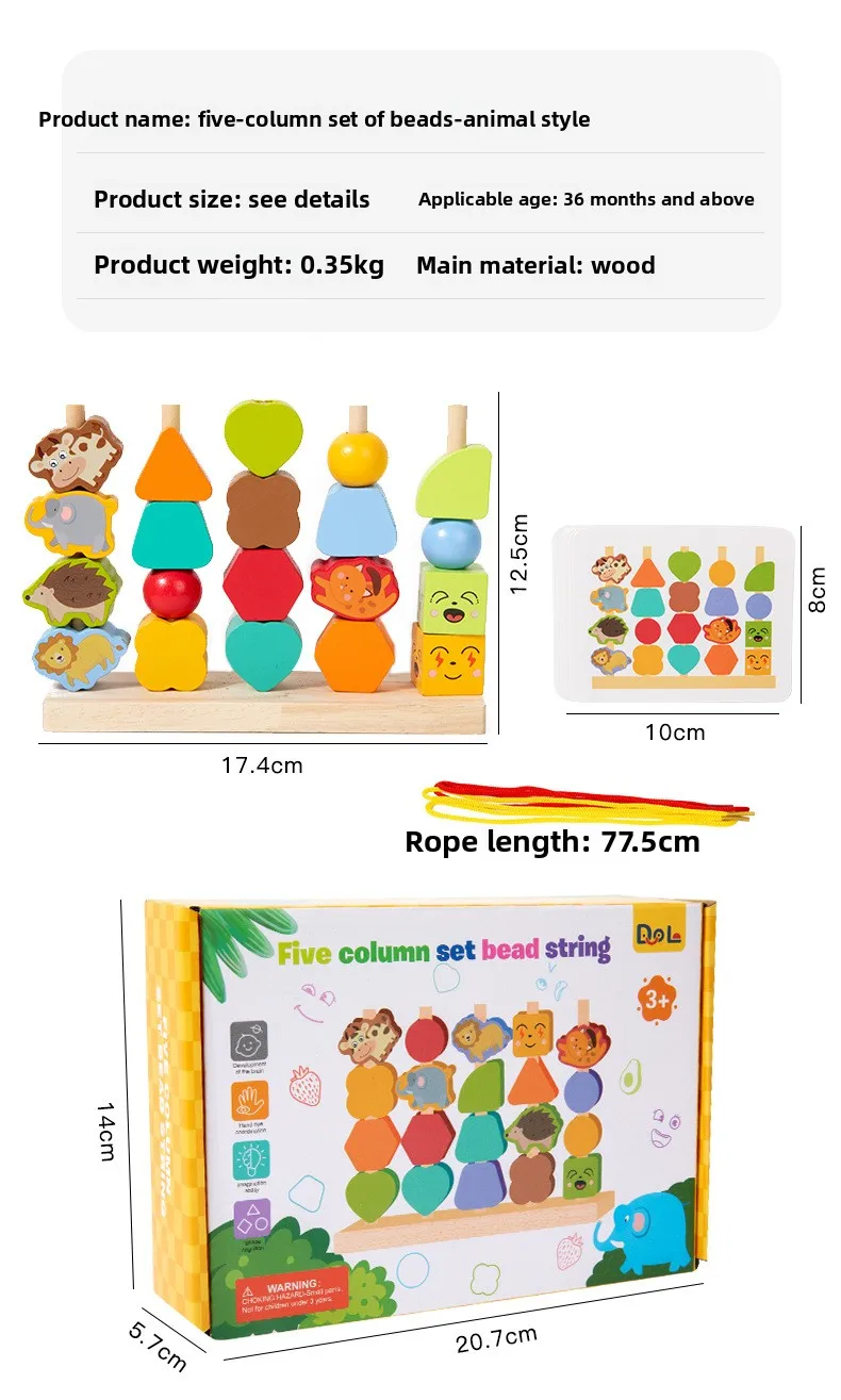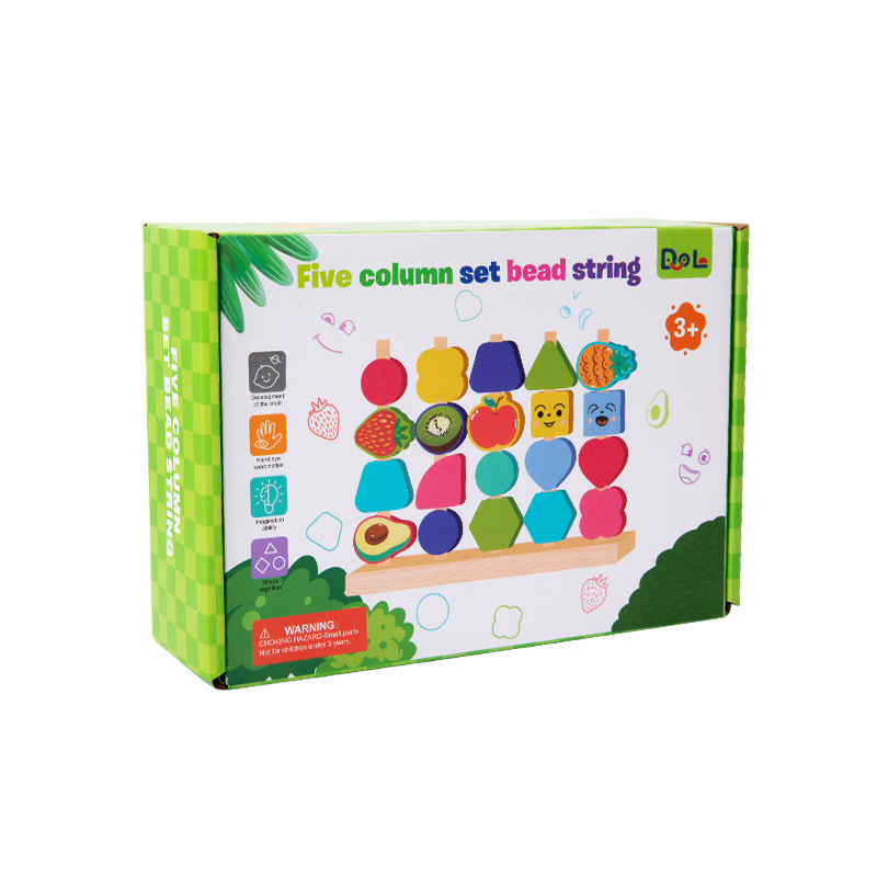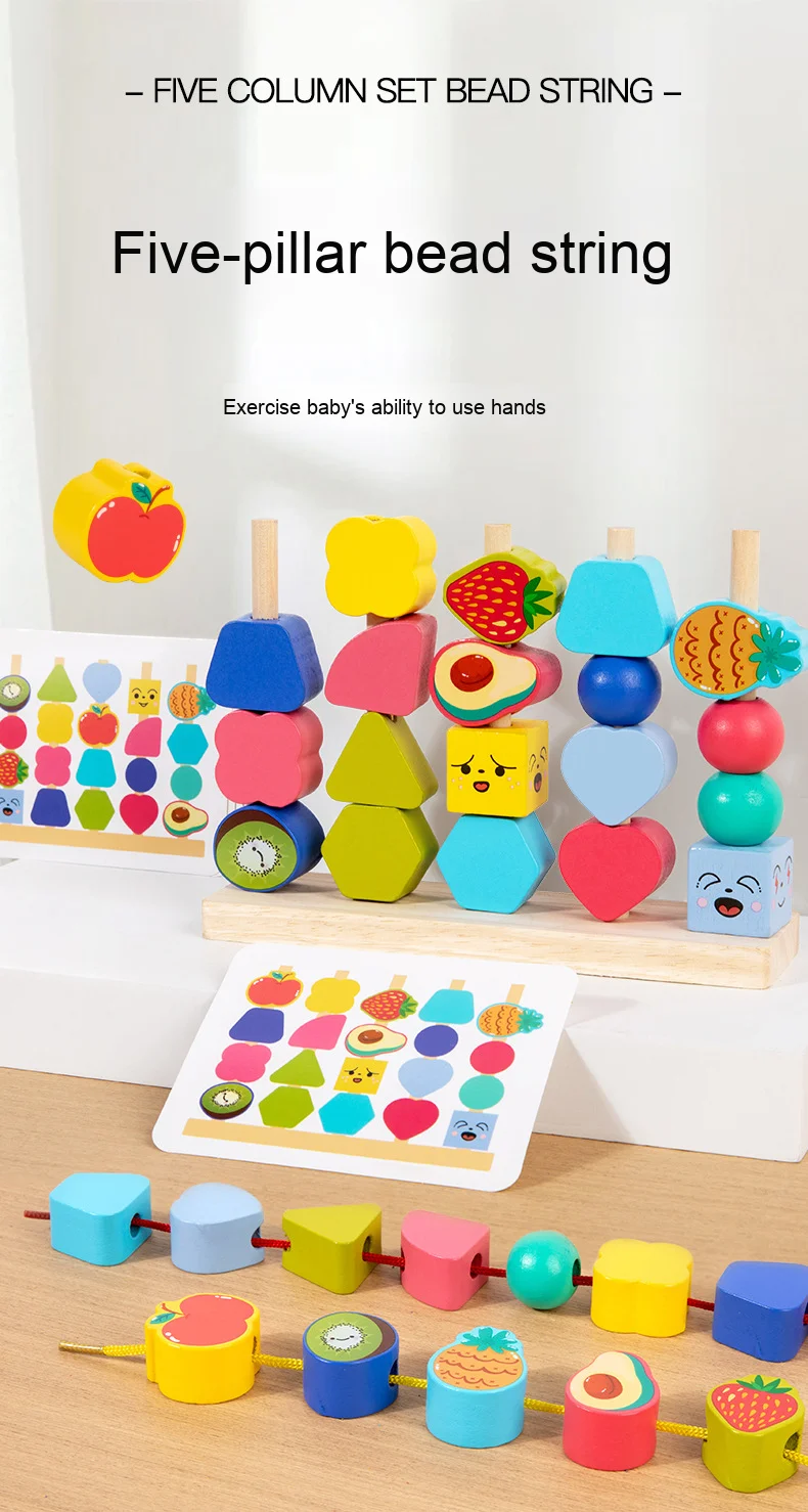 Montessori Four Sets Column Beads Children’s Early Education Fine Motor Skills Training Focus Wood Teaching Aids