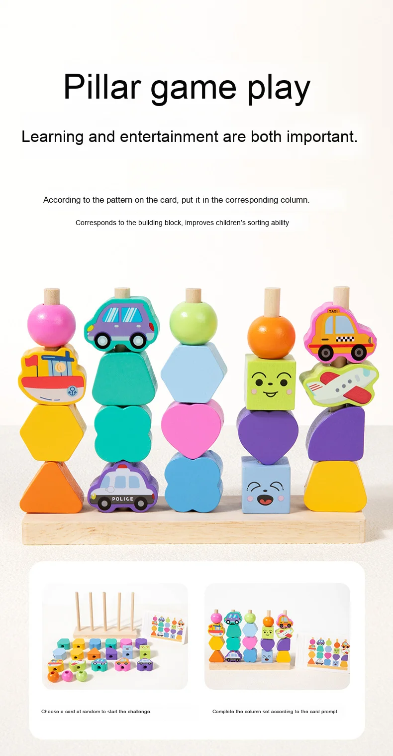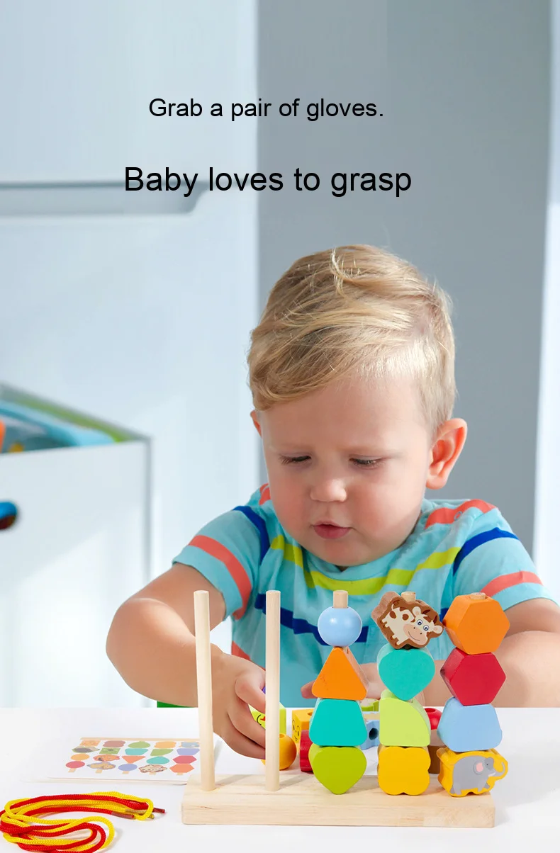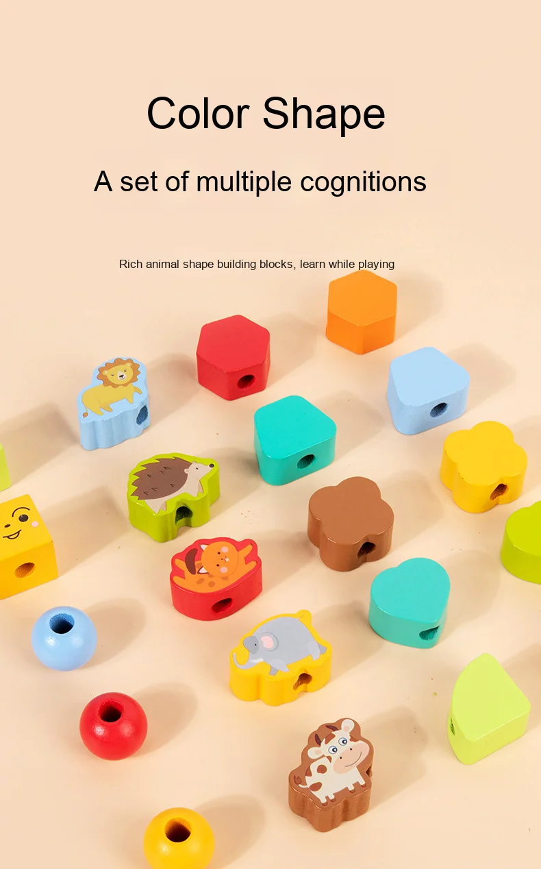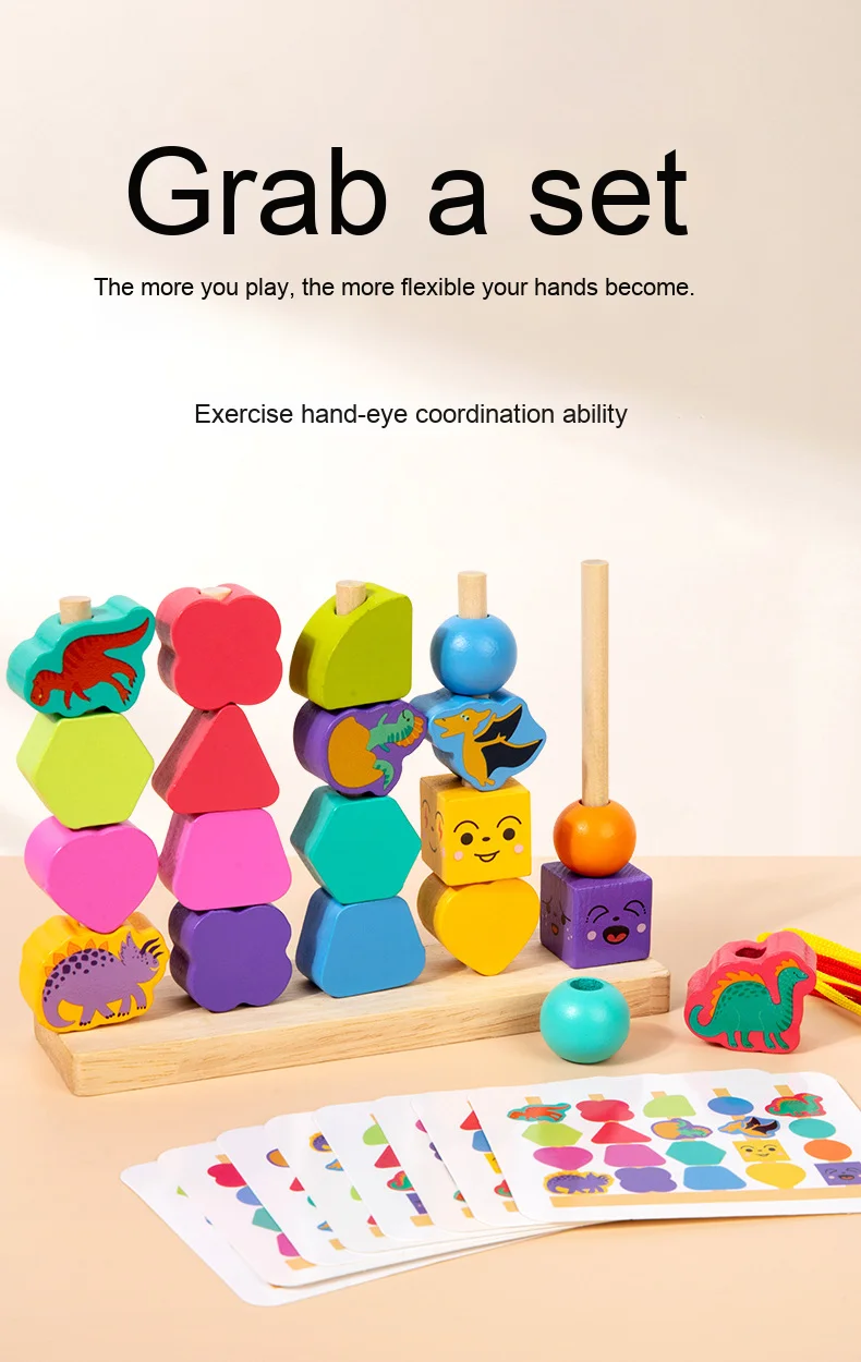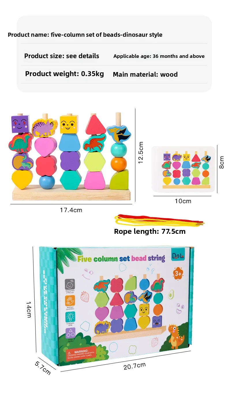 Montessori Four Sets Column Beads Children’s Early Education Fine Motor Skills Training Focus Wood Teaching Aids