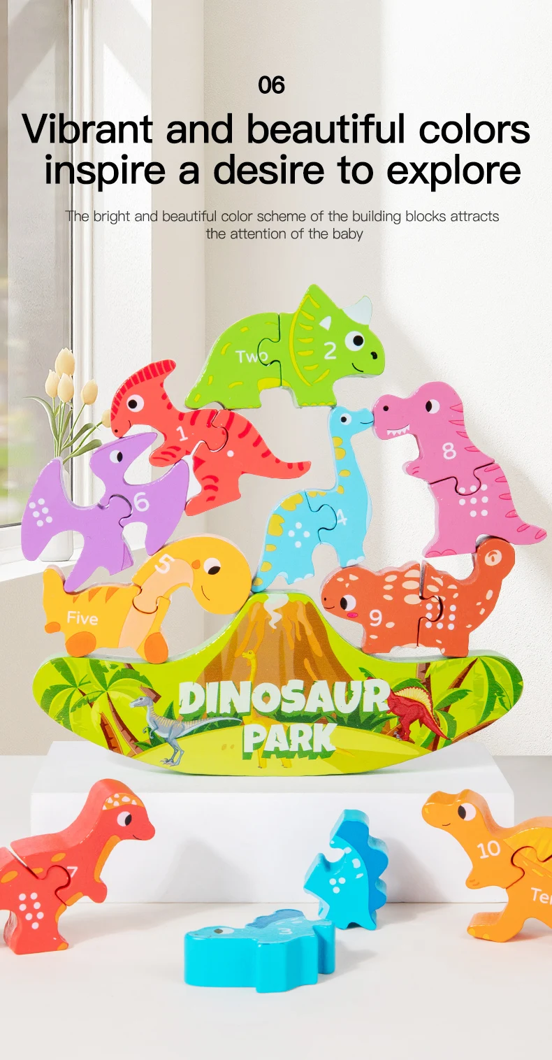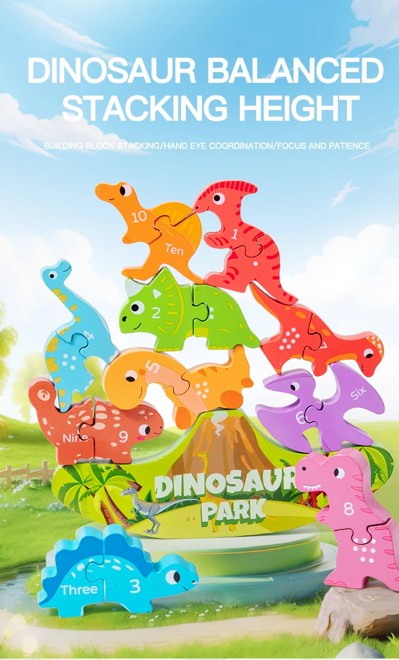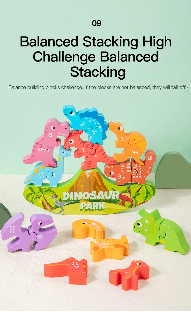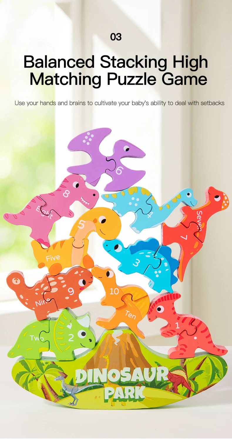Montessori Inspired Balance Stacking Toy Letter Matching Learning Wooden Dinosaur Toy for Kids