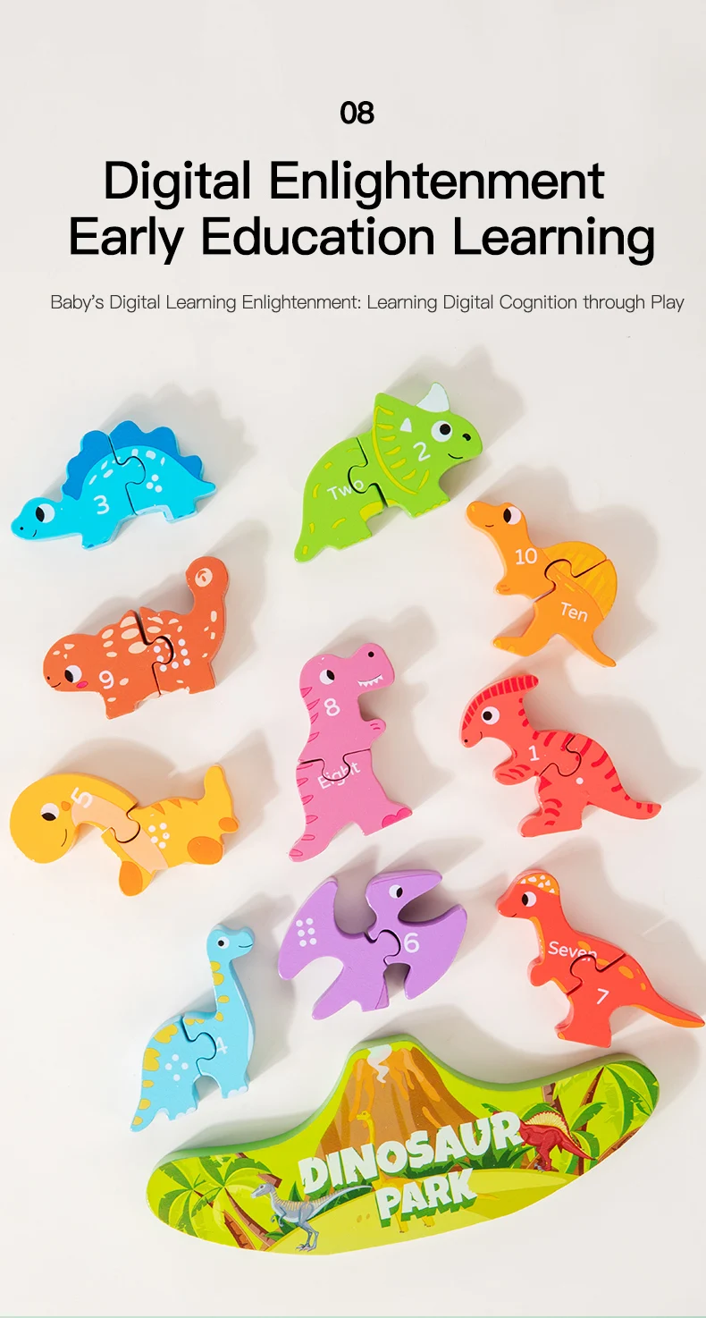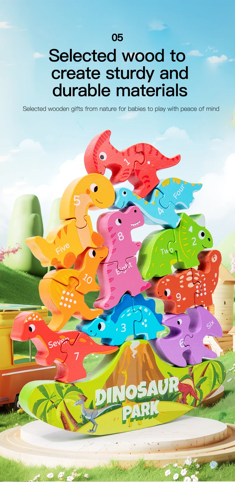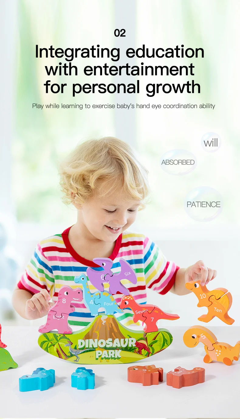 Montessori Inspired Balance Stacking Toy Letter Matching Learning Wooden Dinosaur Toy for Kids
