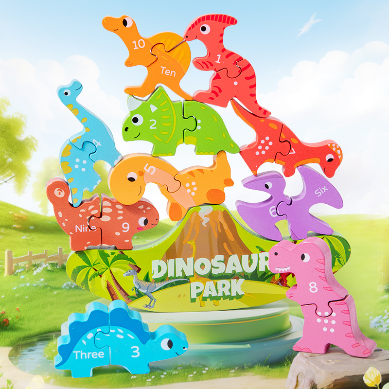 Montessori Inspired Balance Stacking Toy Letter Matching Learning Wooden Dinosaur Toy for Kids