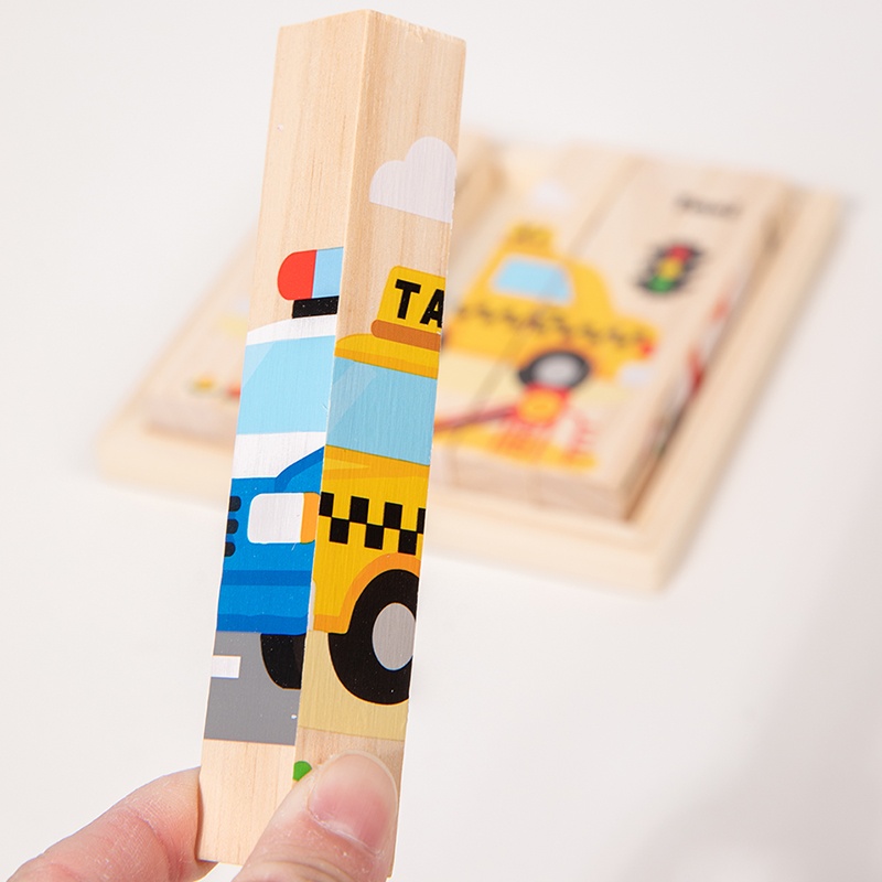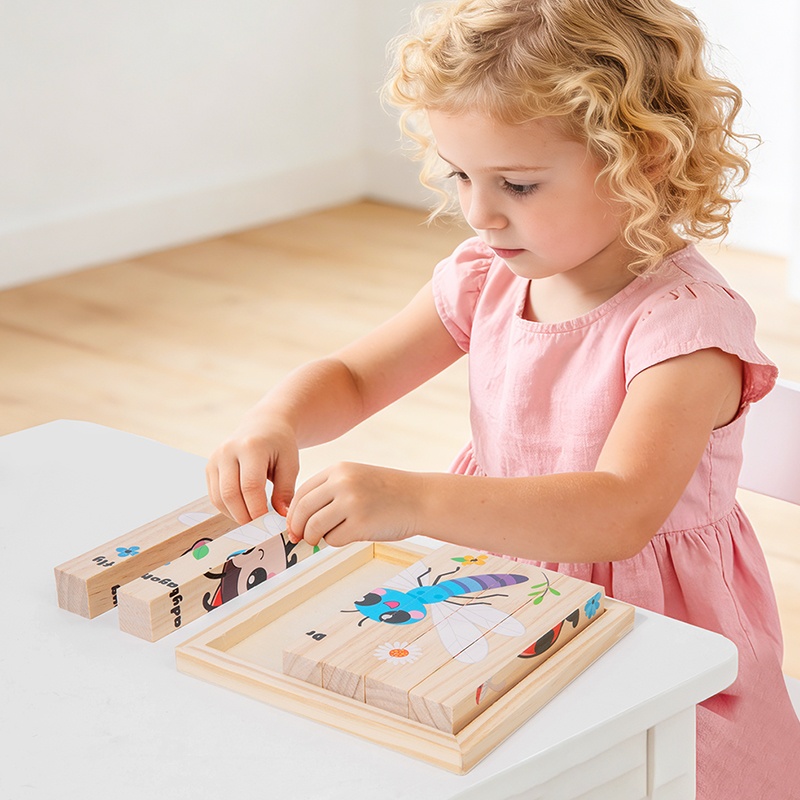 Montessori Kids 3D Four-sided Animal Space Ocean Transportation Insect Career Sport Theme Chunky Wooden Block Puzzle Toys