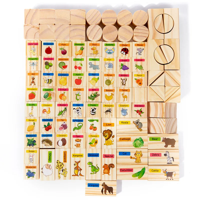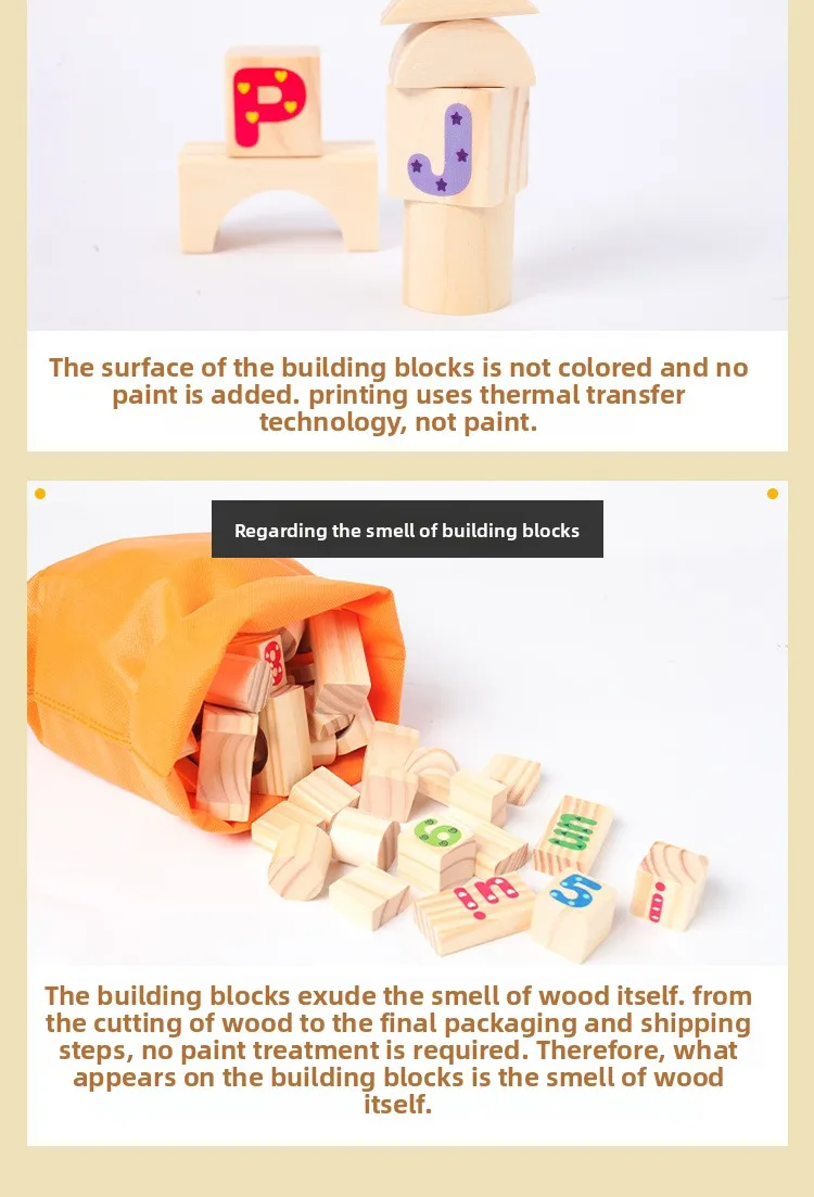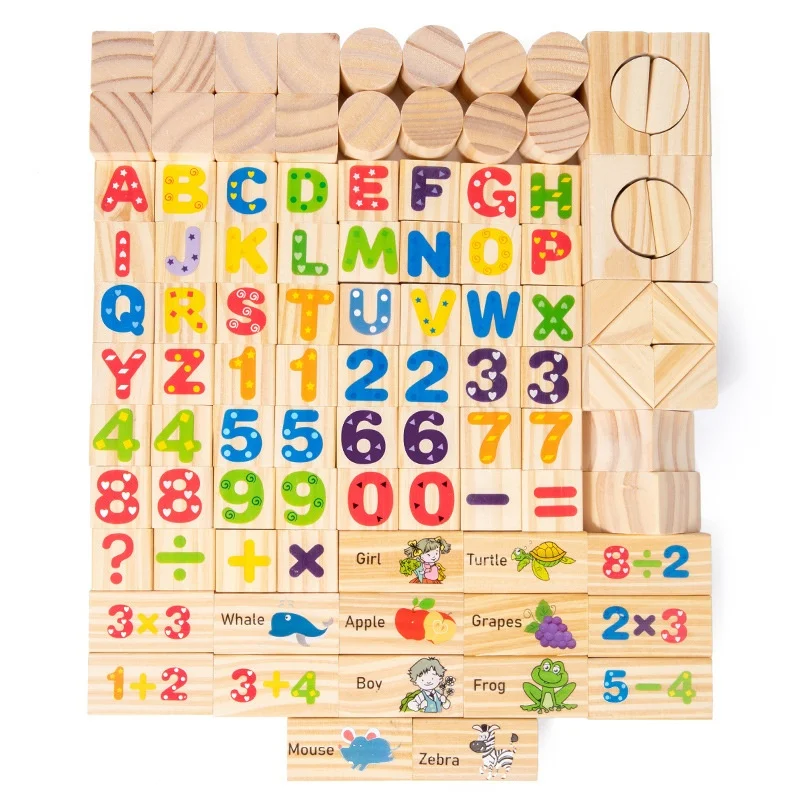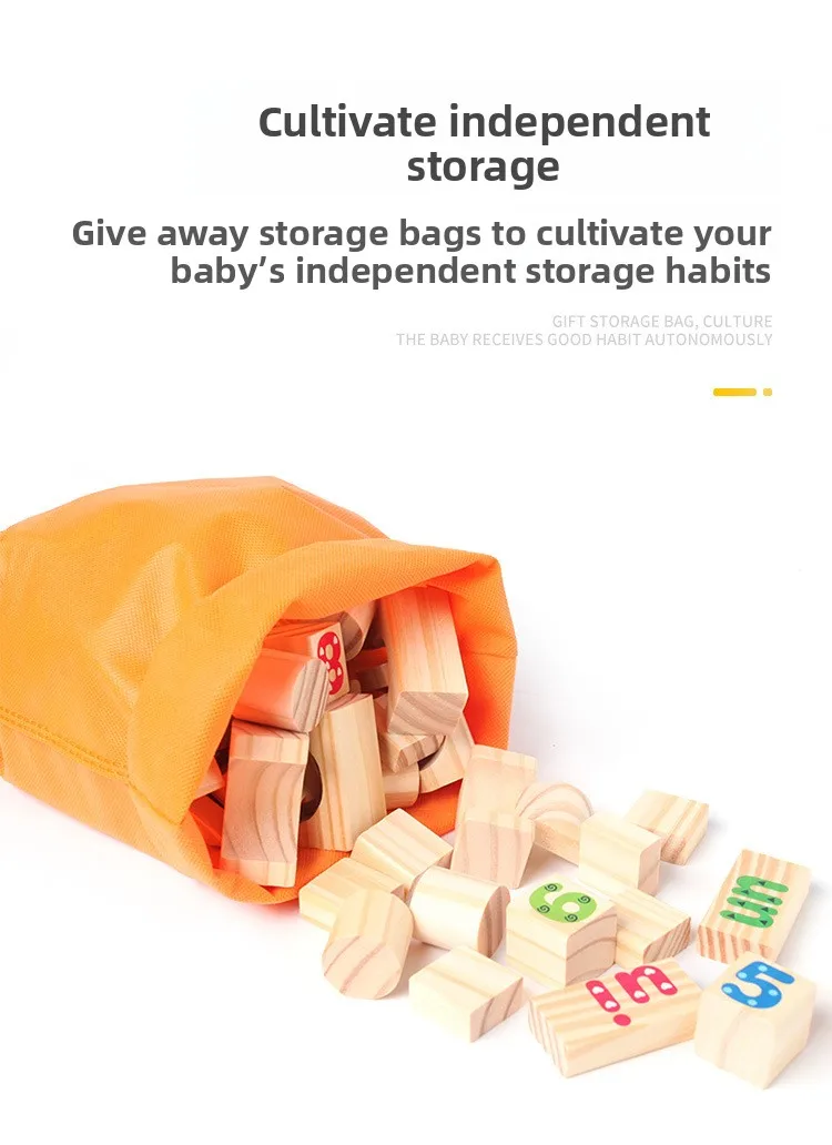 Montessori Toys for Early Childhood Education, Wood Colored Wooden Blocks for Building Cognitive Development Numbers and Letters