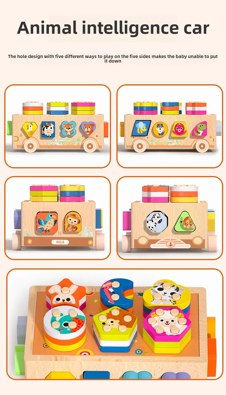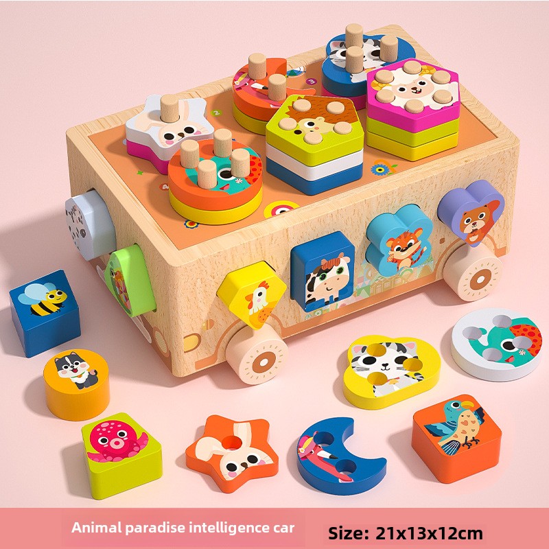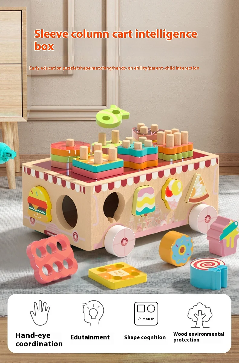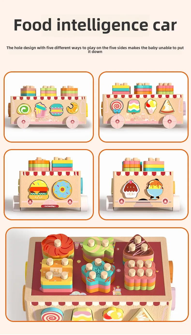 Montessori Toys Wooden Blocks Shape Sorter Animal and Ice Cream Dessert Smart Car Stacking Educational Learning Toys