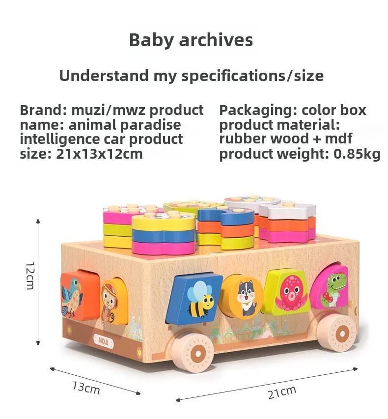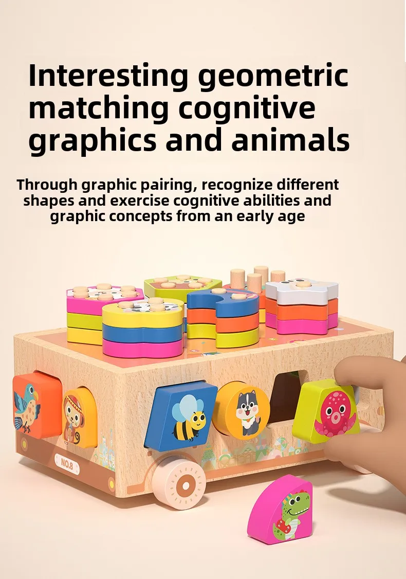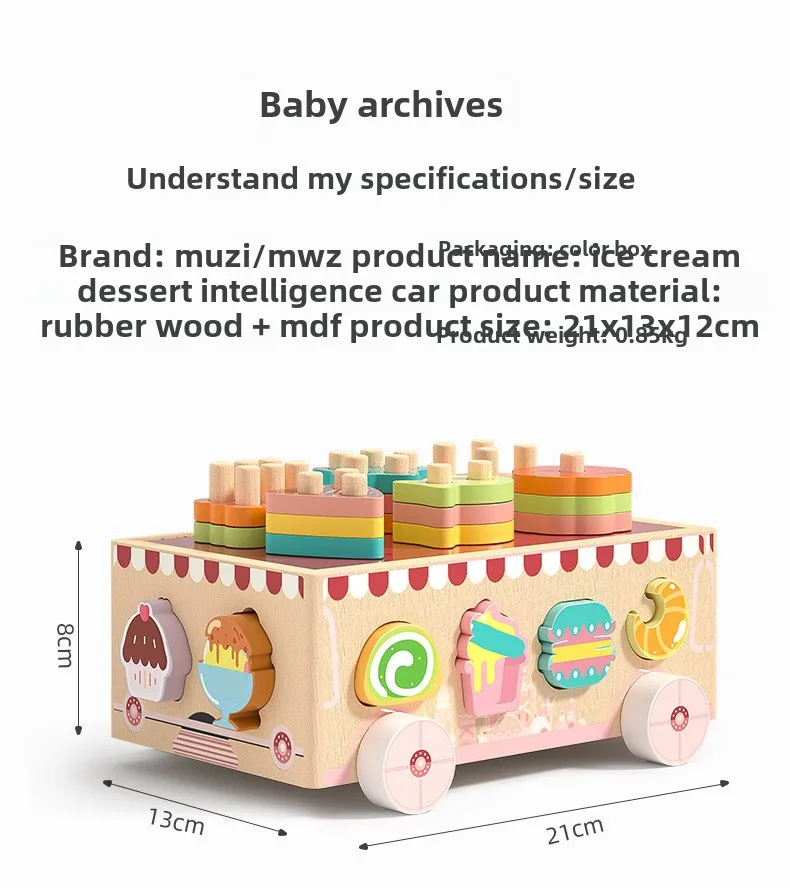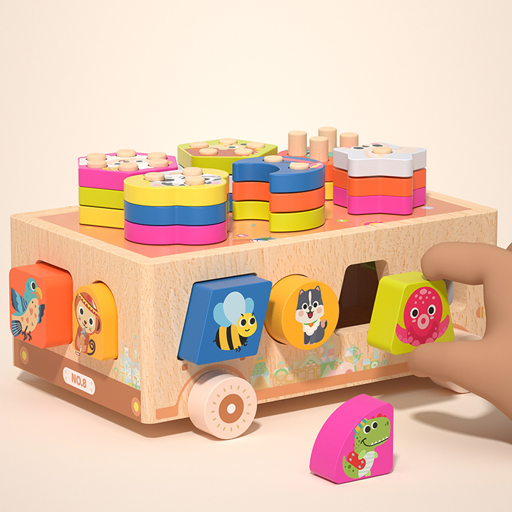 Montessori Toys Wooden Blocks Shape Sorter Animal and Ice Cream Dessert Smart Car Stacking Educational Learning Toys