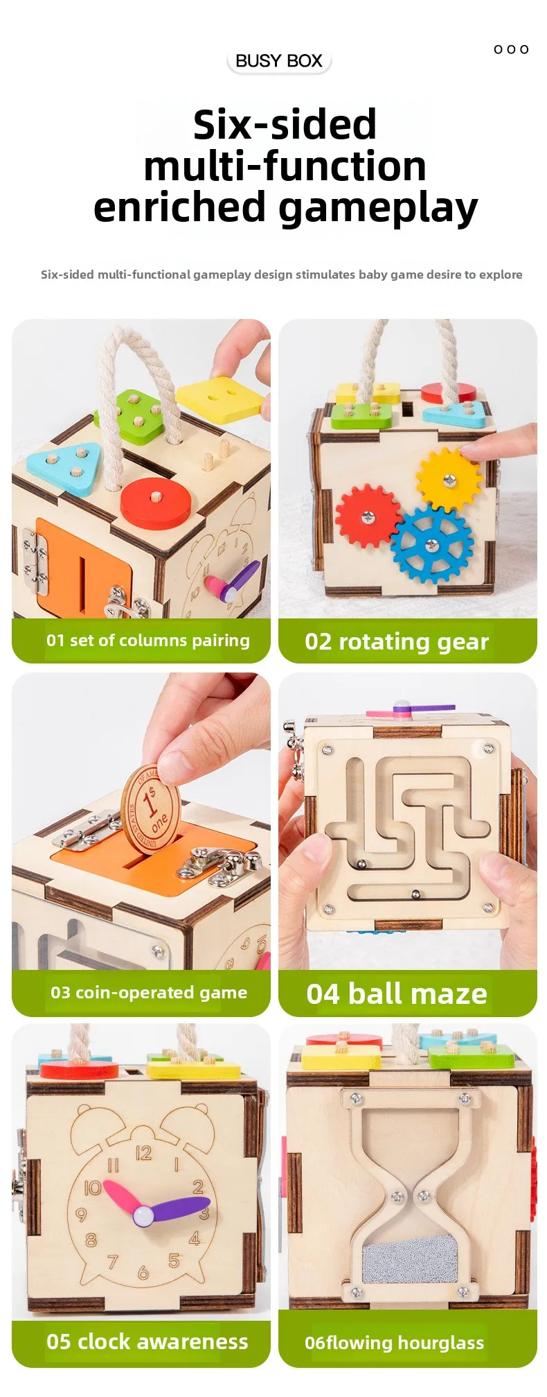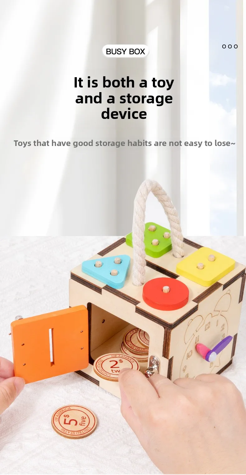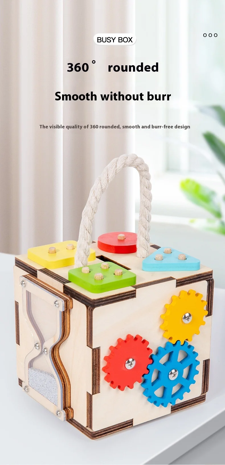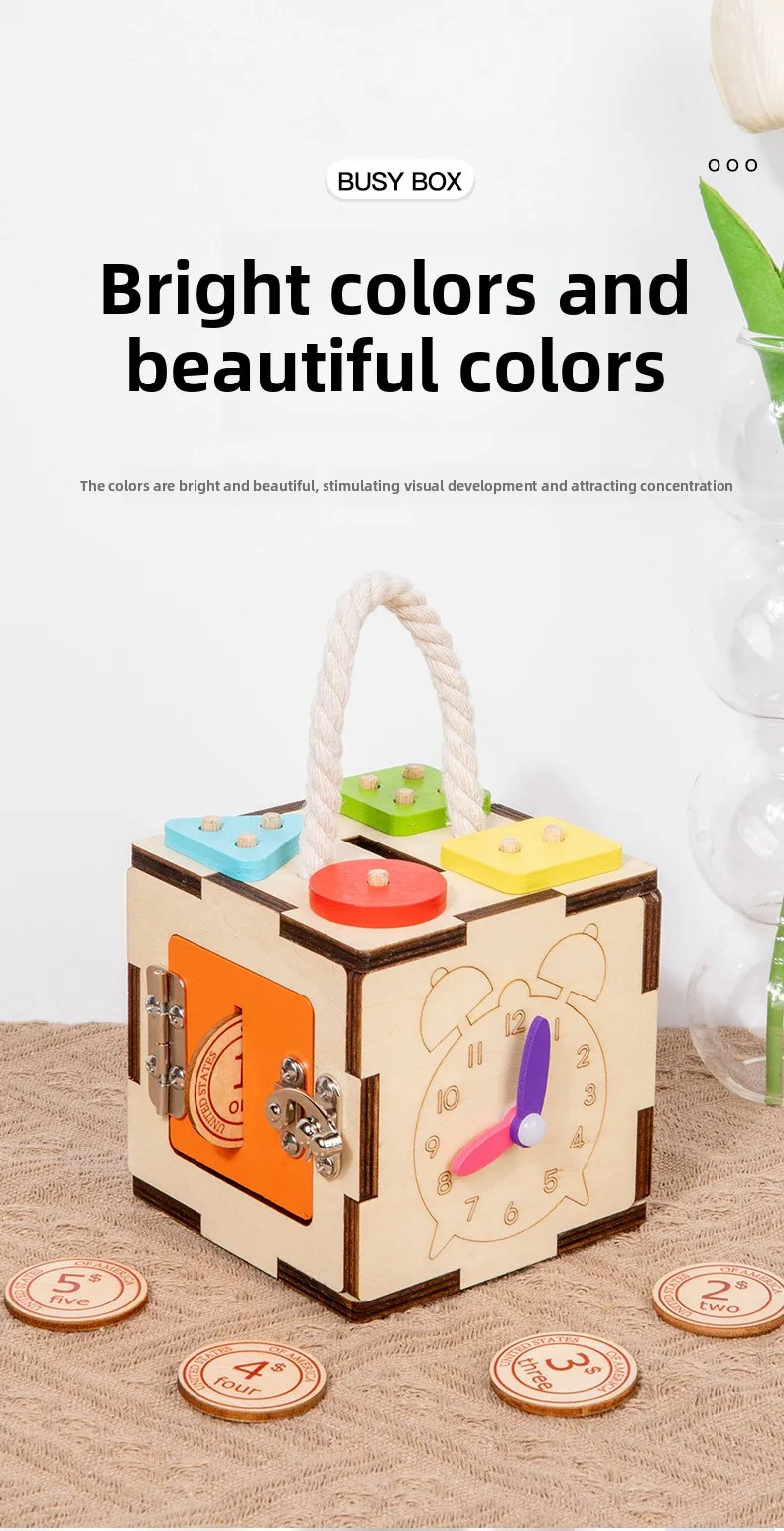 Montessori Wooden Busy Box Multi-Functional Early Education Set for Toddlers Color Matching Column Coin Gear Intelligence Toy