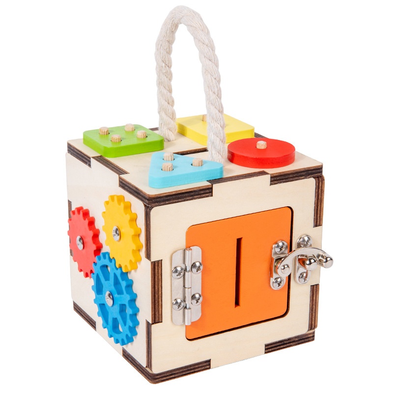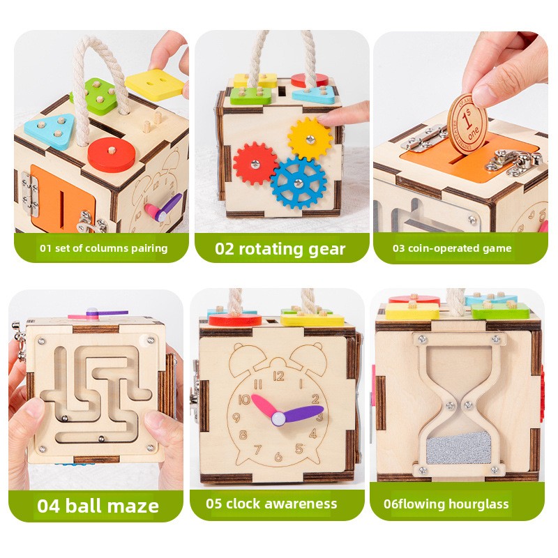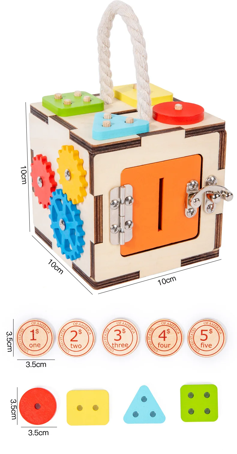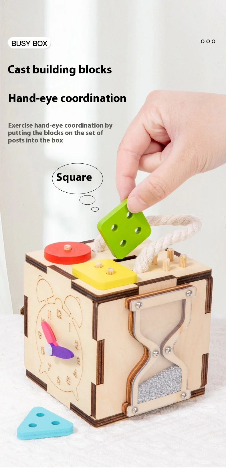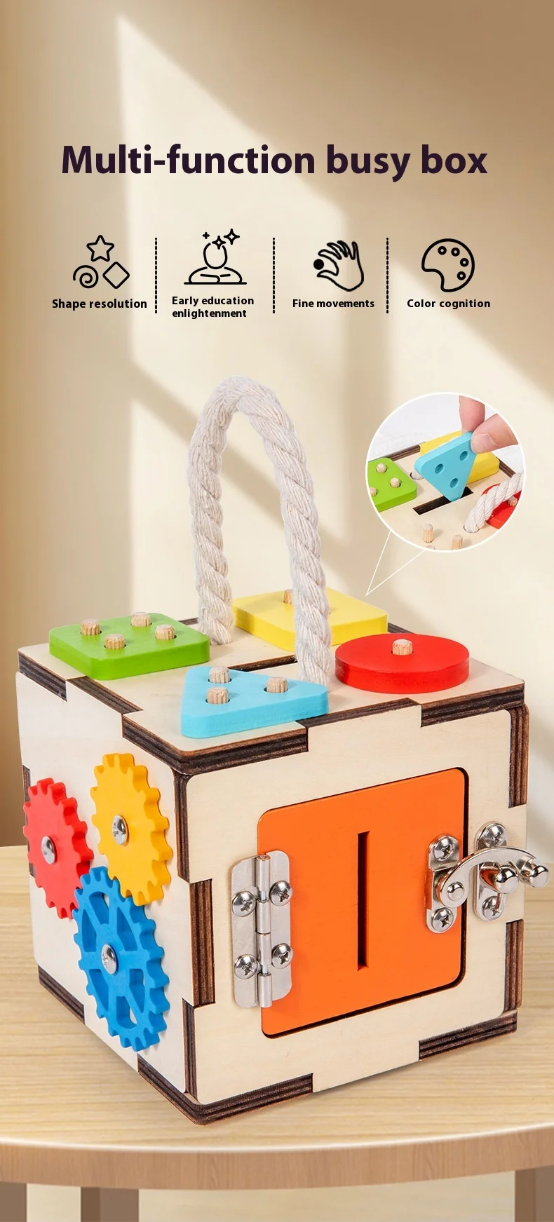 Montessori Wooden Busy Box Multi-Functional Early Education Set for Toddlers Color Matching Column Coin Gear Intelligence Toy