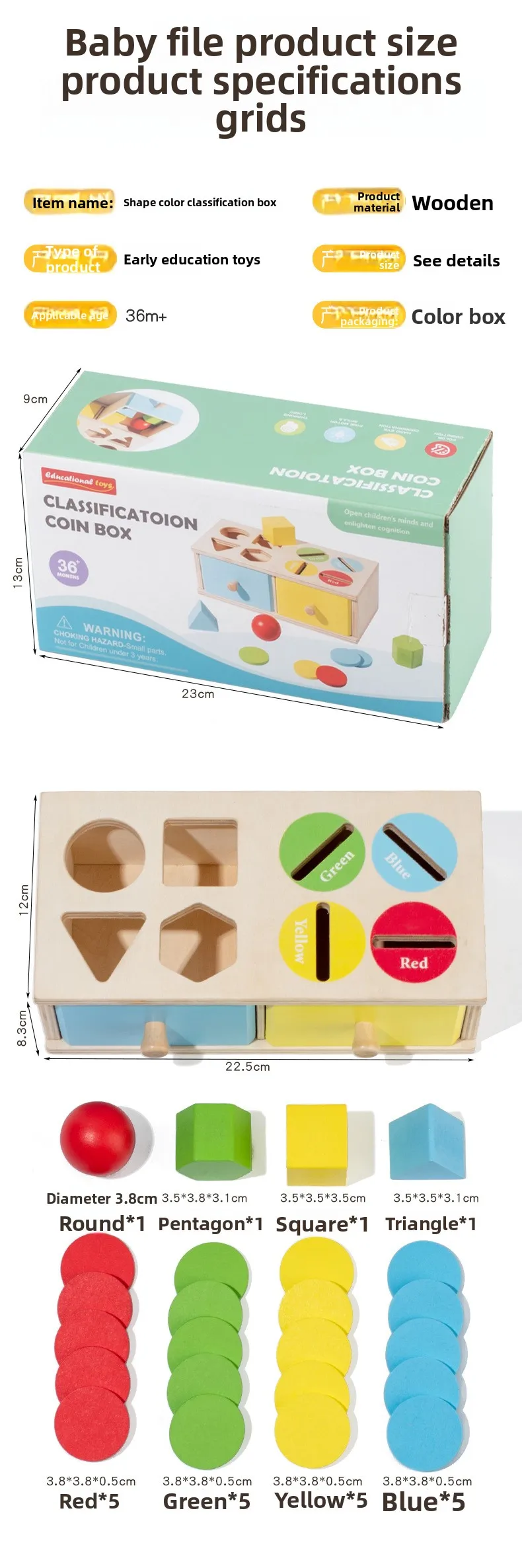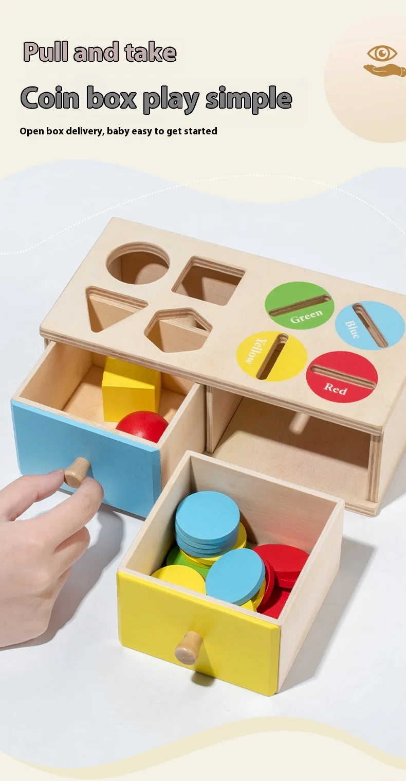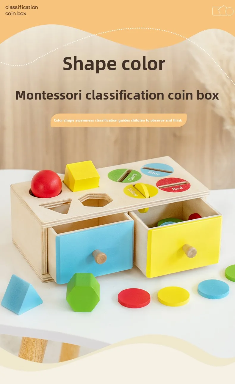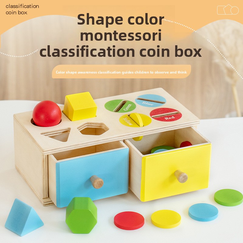 Montessori Wooden Coin Box for Children’s Early Education Geometric Shape Classification & Cognitive Color Matching Toy