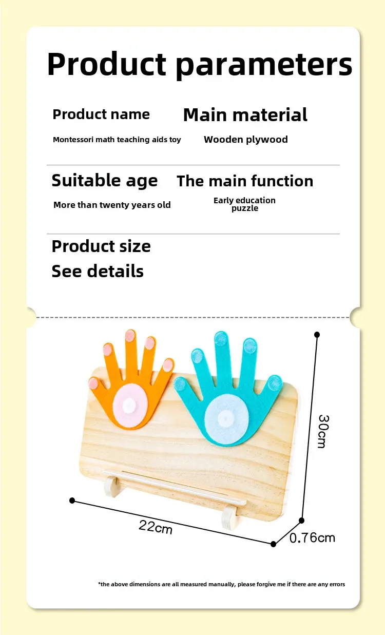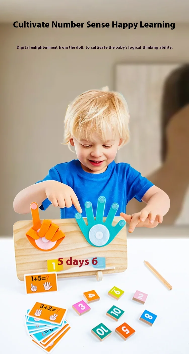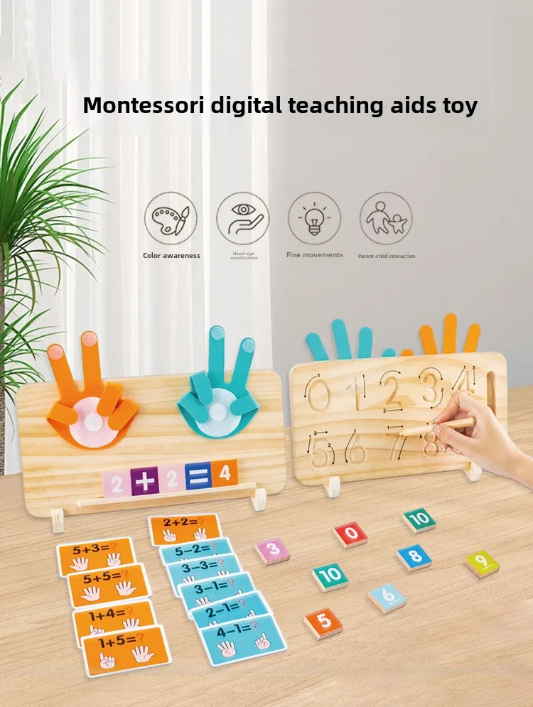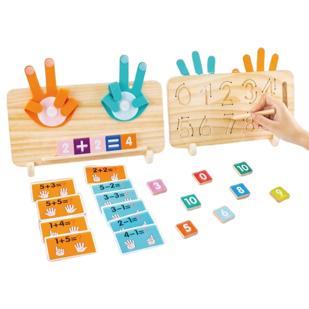 Montessori Wooden Math Teaching Aids Finger Counting& Number Tracing Math Double-Sided Wood Board Educational Toy for Kids