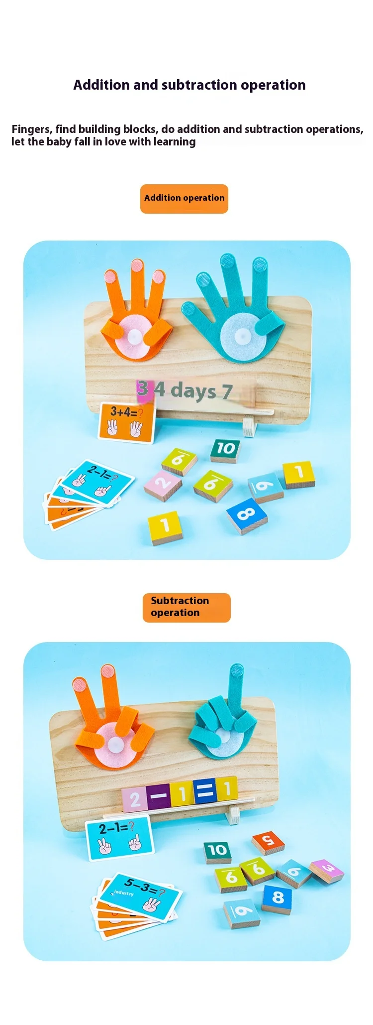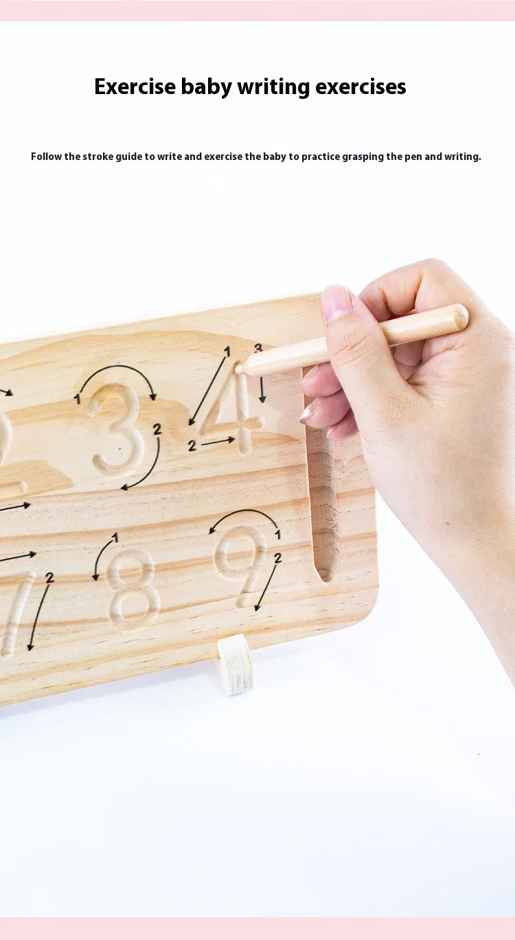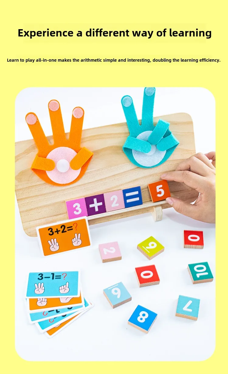 Montessori Wooden Math Teaching Aids Finger Counting& Number Tracing Math Double-Sided Wood Board Educational Toy for Kids