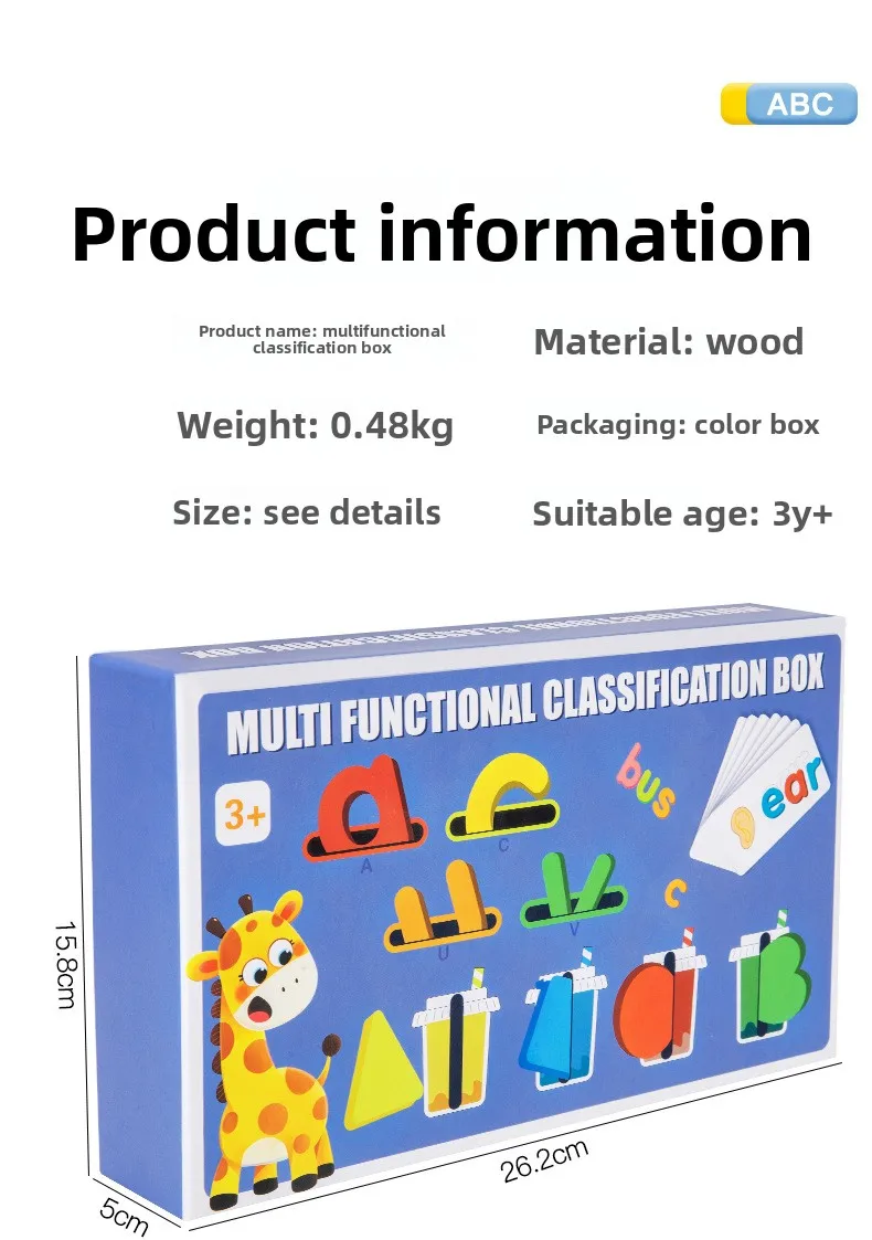 Multi-Functional Sorting Box for Early Learning Kindergarten Children’s Wood Number Recognition Matching Cards Educational Toy