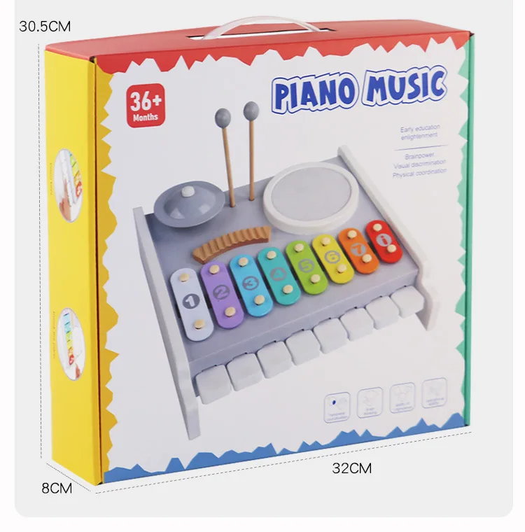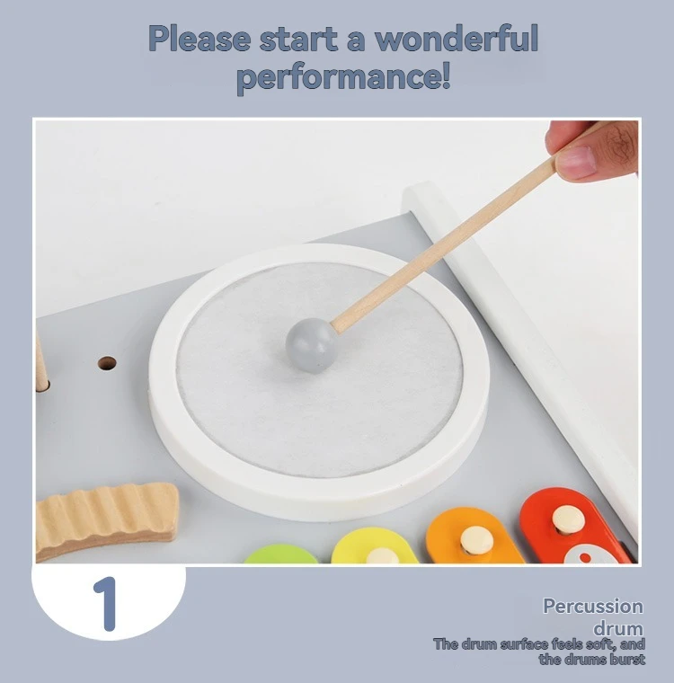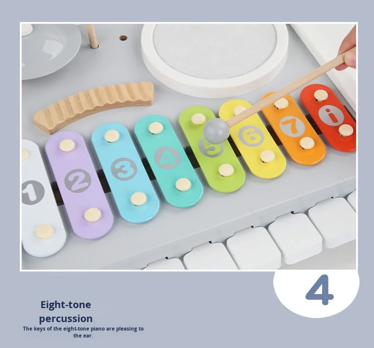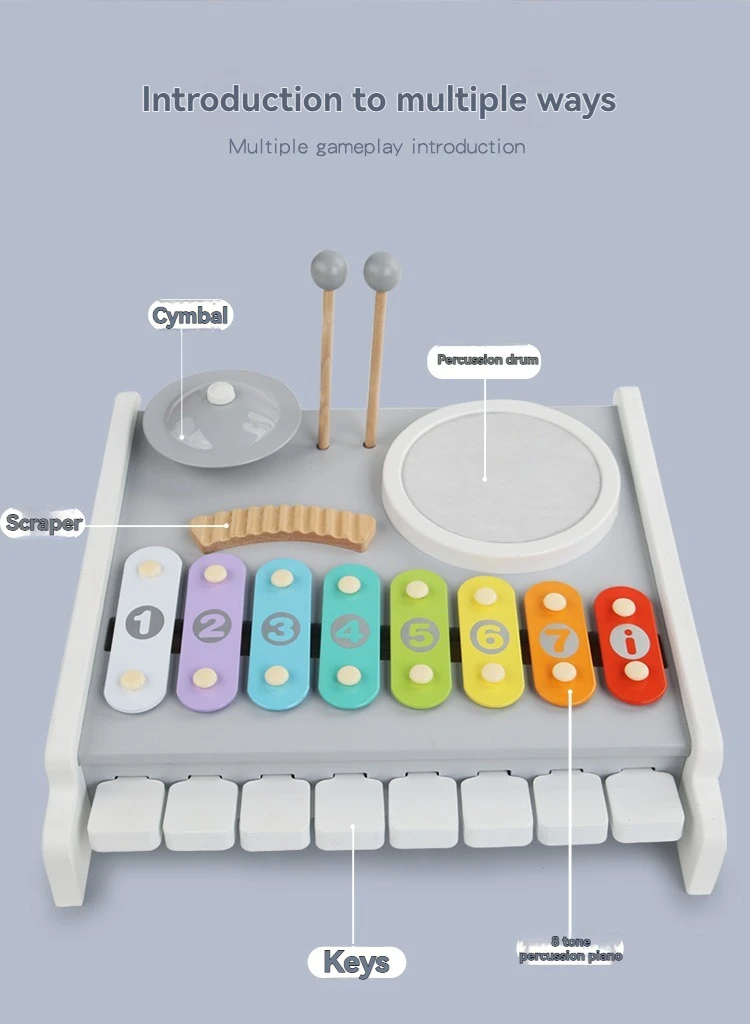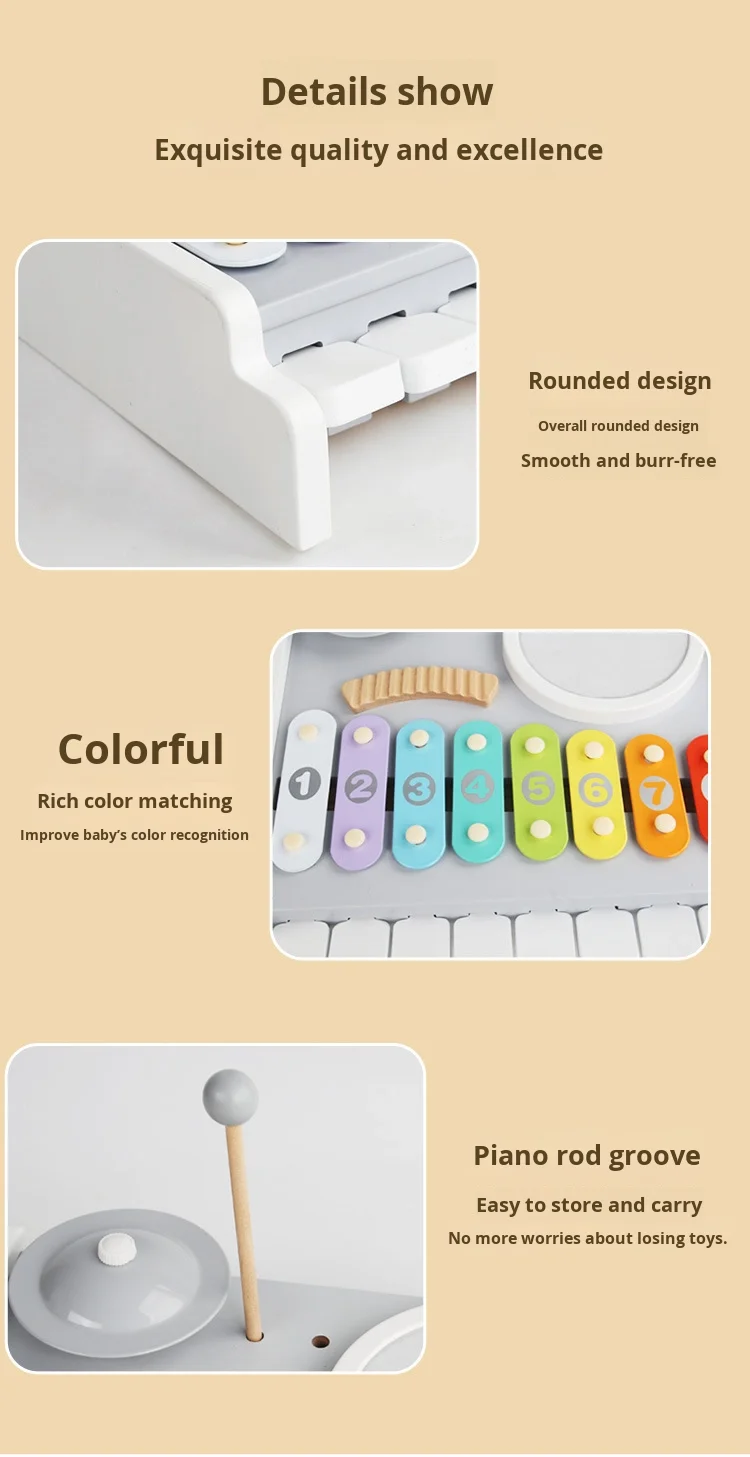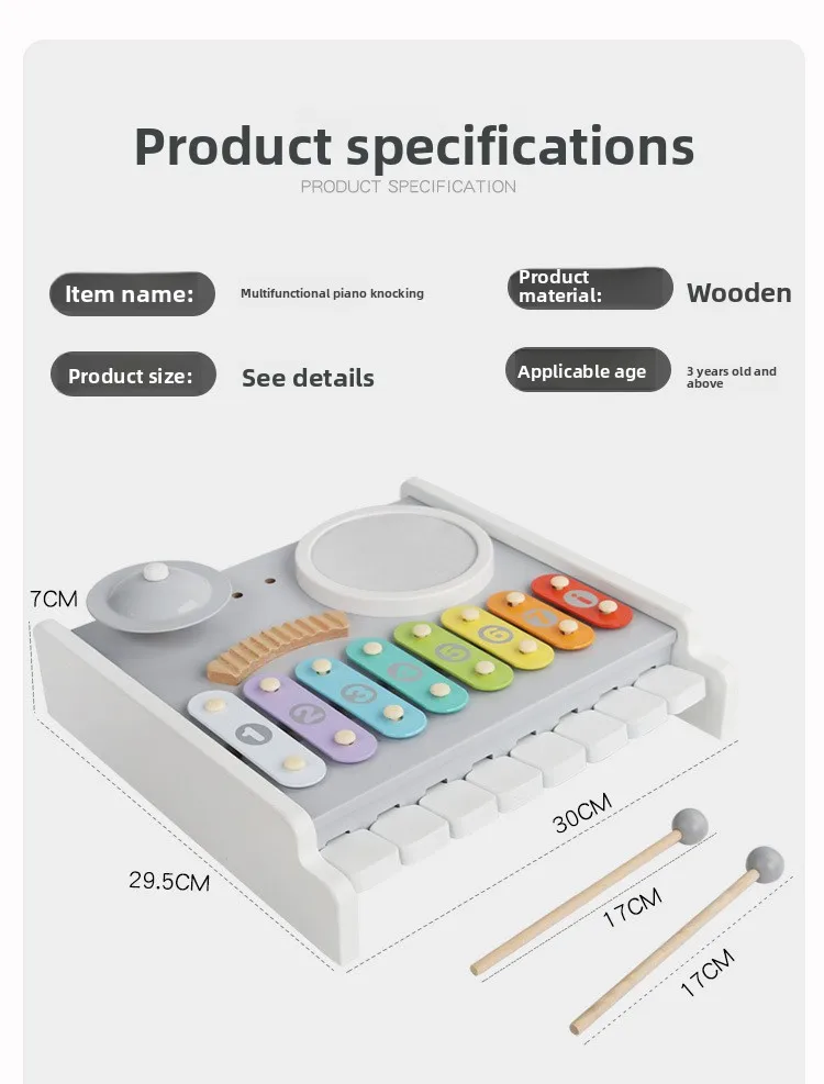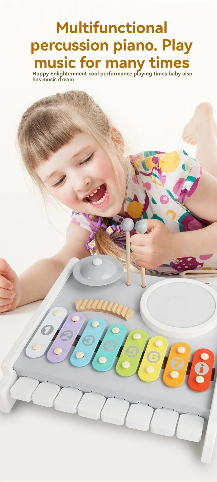 Multifunctional Children’s Musical Toy Table Wood Piano Drum Set for Hand-Eye Coordination Exercise Baby Knocking Clapping Toy